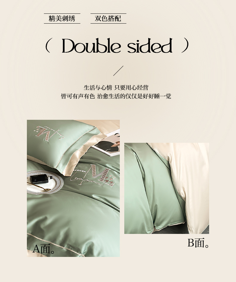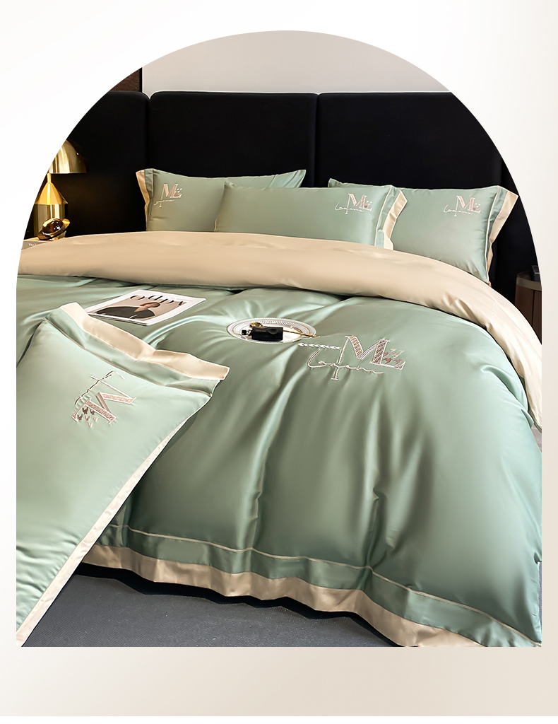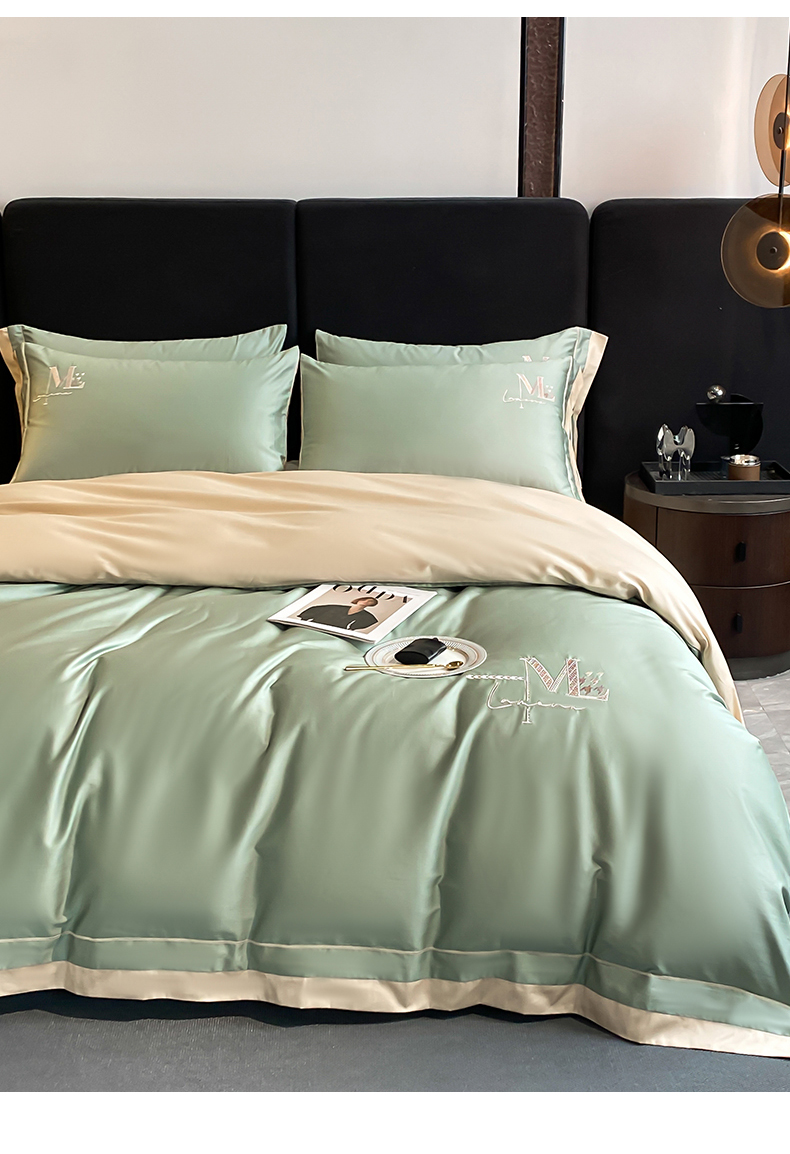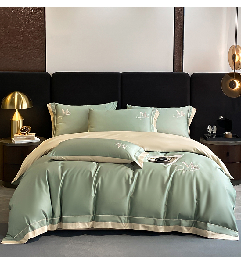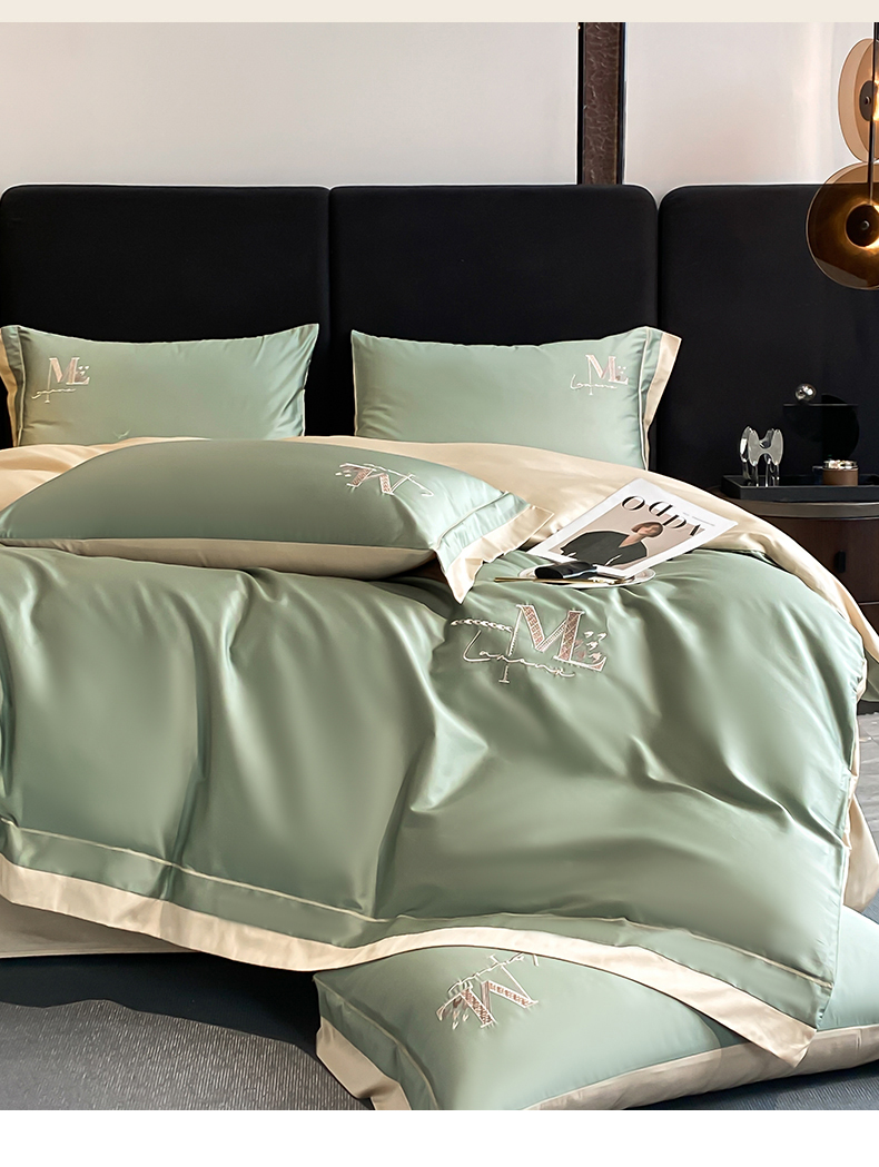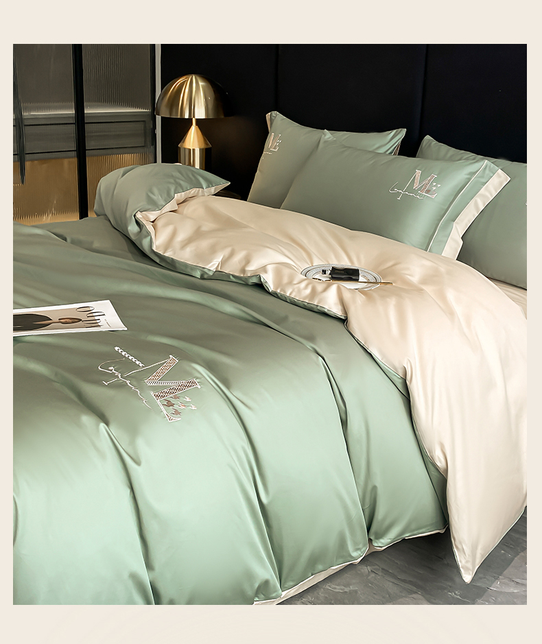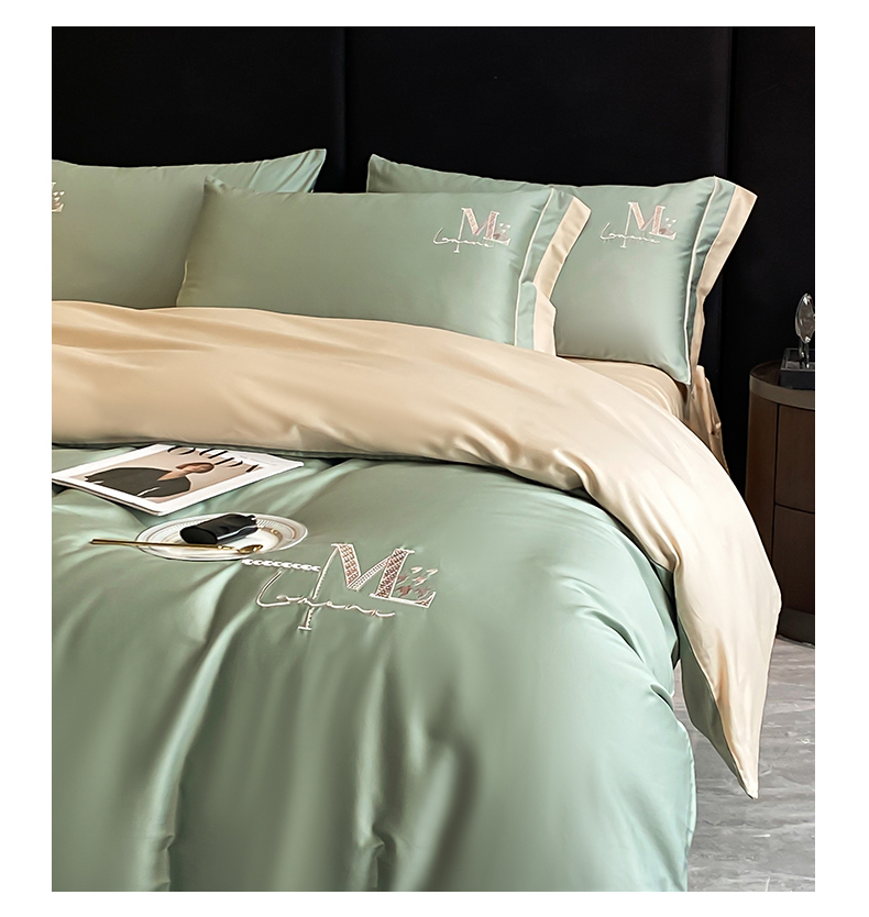 商品名称:拼社家纺 长绒棉全棉刺绣四件套-M系列 阿克曼绿