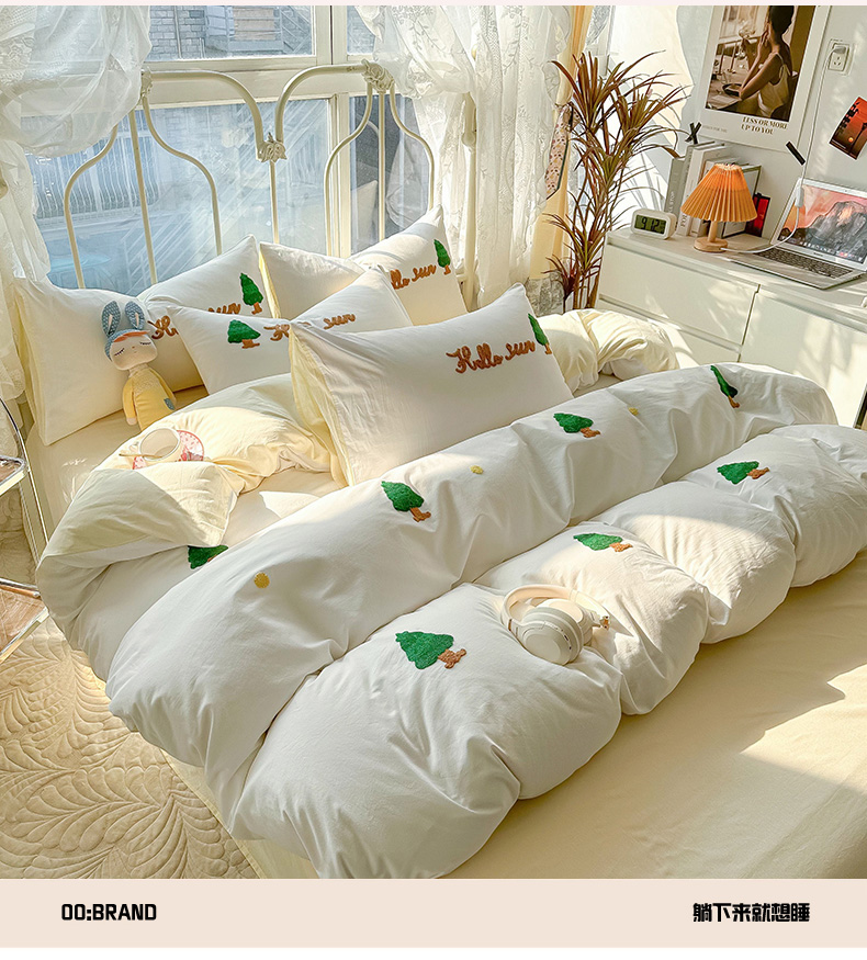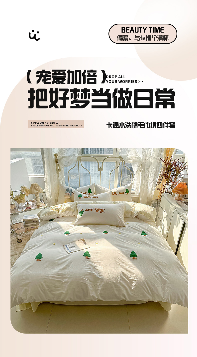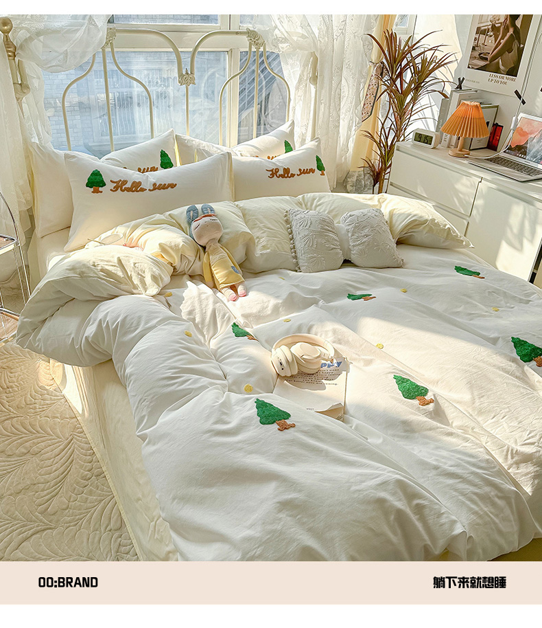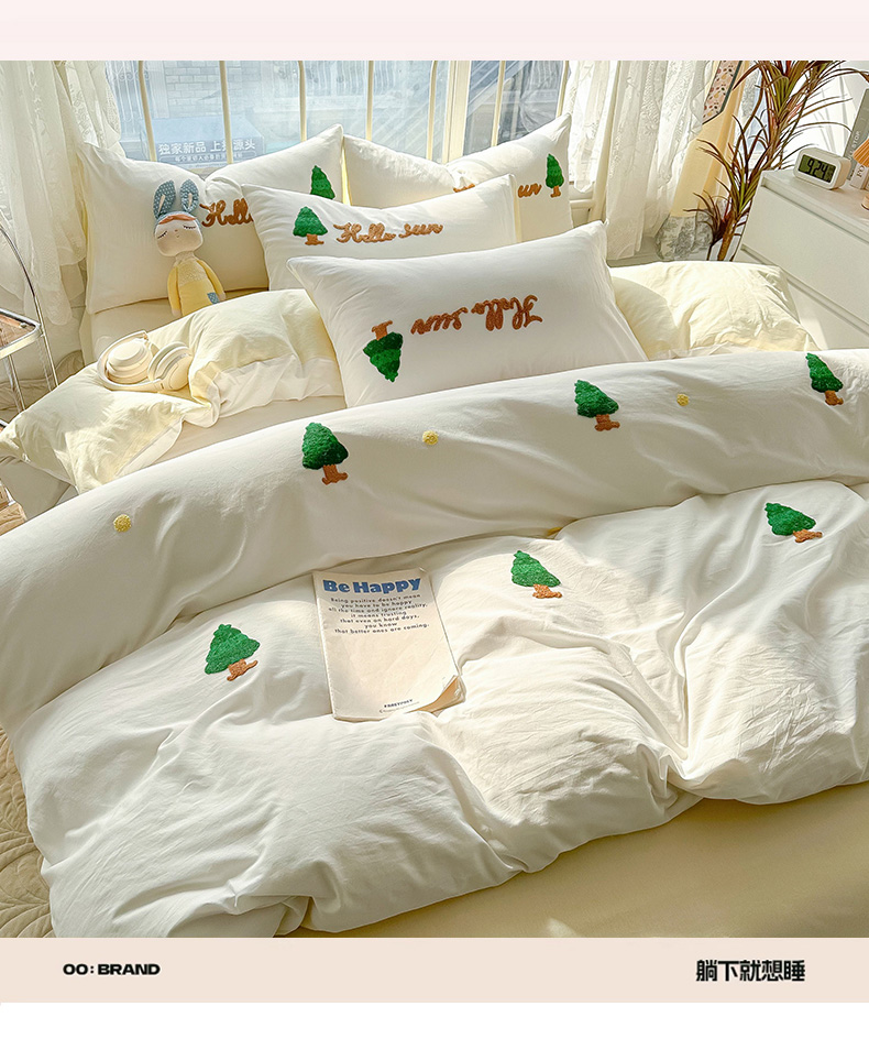 当前位置: 91家纺网 > 商品网购 > 床品套件 > 四件套 > 水洗棉四件套 > 眠帛家居 2024新款水洗棉奶油小清新毛巾绣四件套早春系列 圣诞树奶油黄