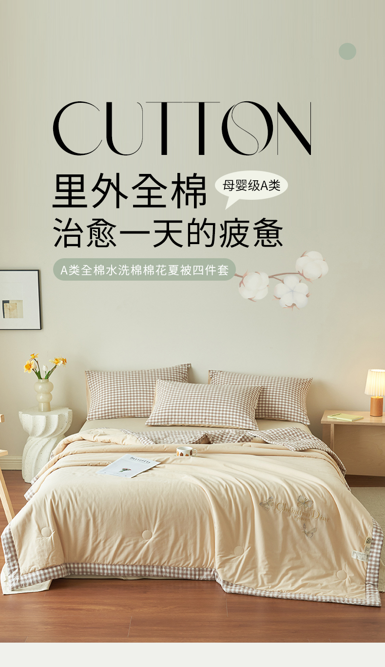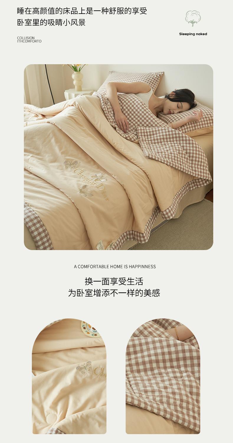 当前位置: 91家纺网 > 商品网购 > 床品套件 > 四件套 > 夏被四件套 > 简如 2025新款A类全棉水洗棉棉花夏被四件套-蝶舞 蝶舞-米驼