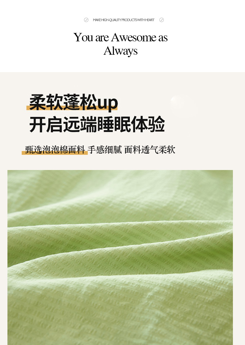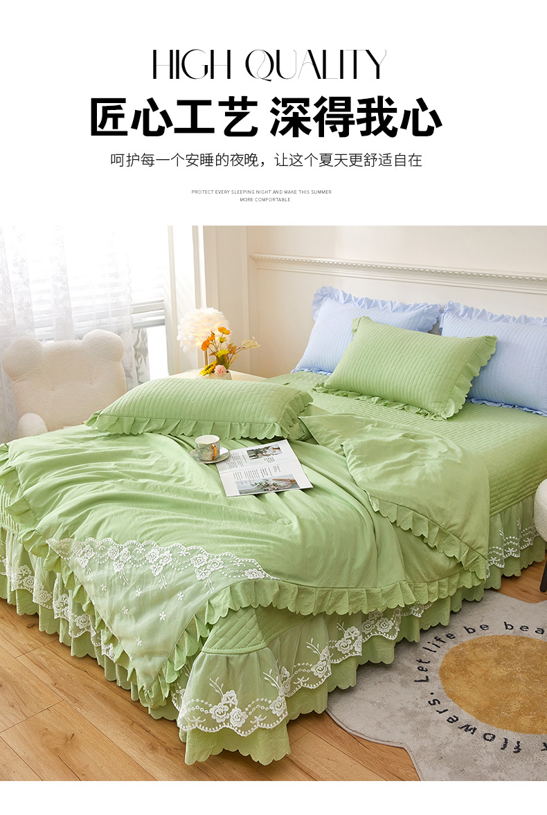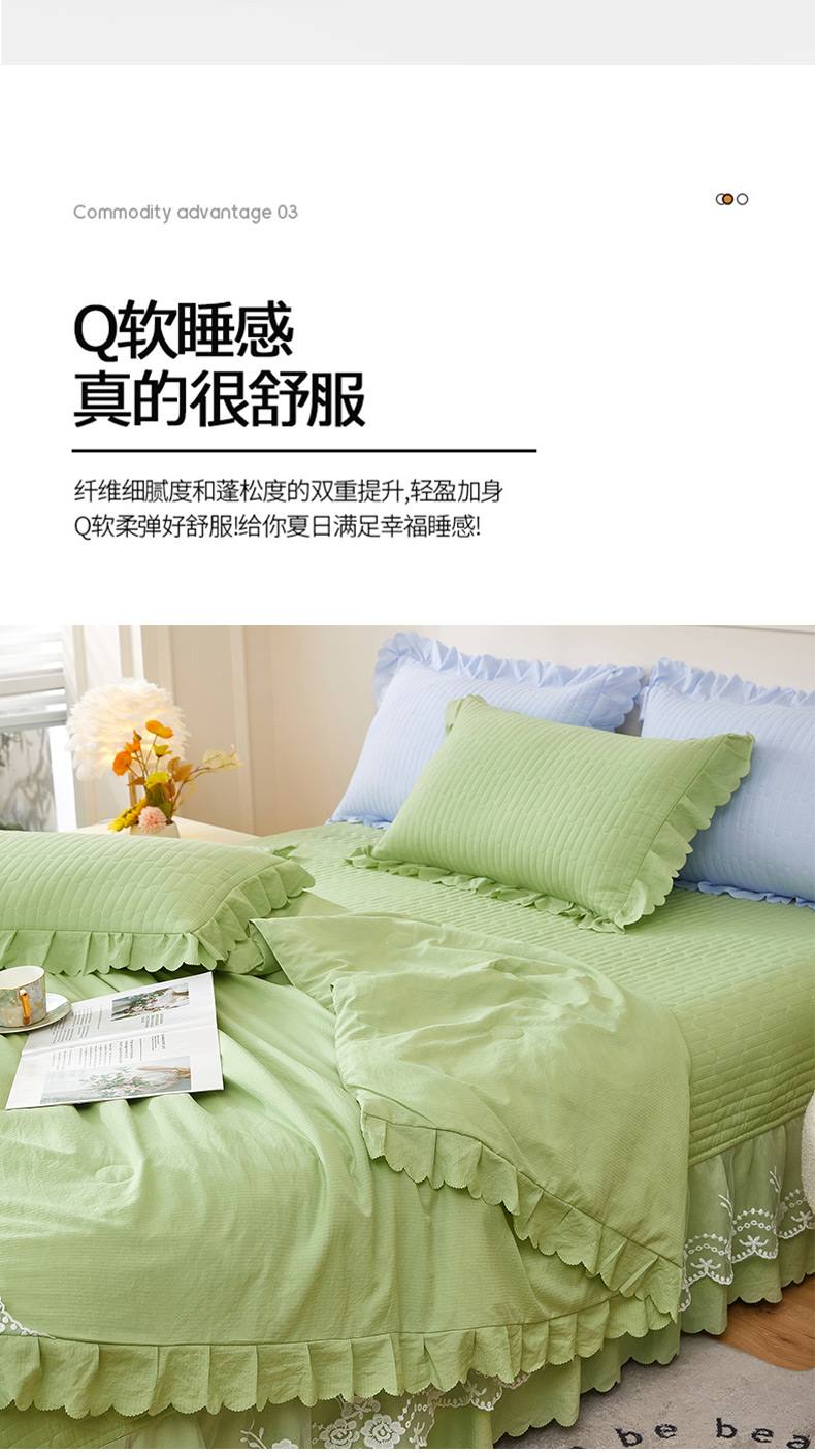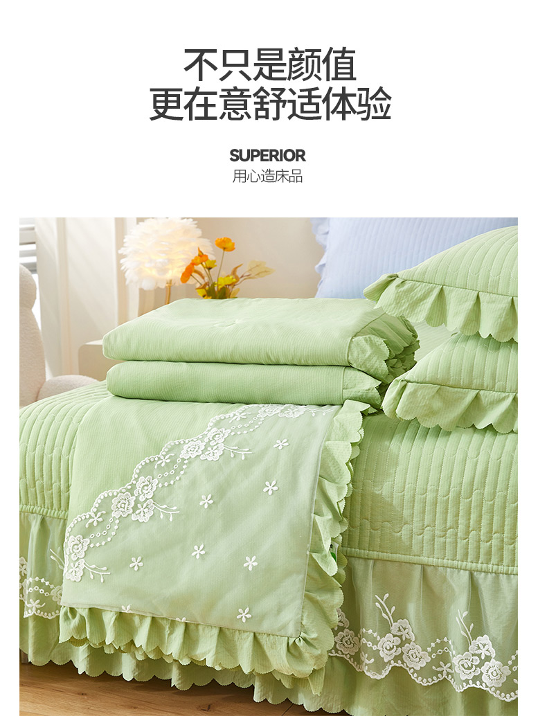 商品名称:绣女坊 2024新款泡泡棉床盖四件套 优雅绿