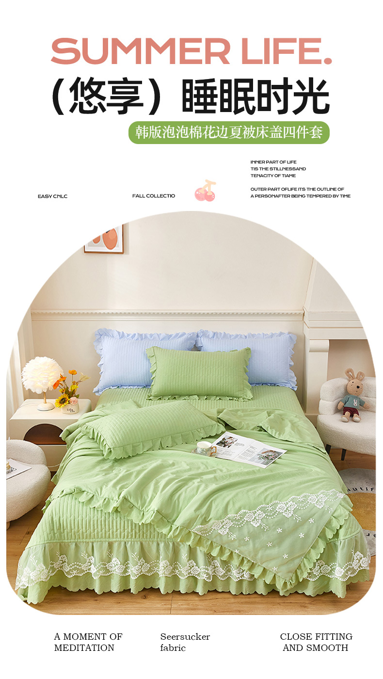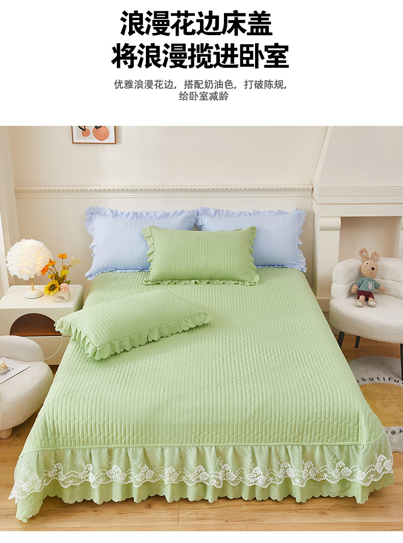 绣女坊 2024新款泡泡棉床盖四件套 优雅绿