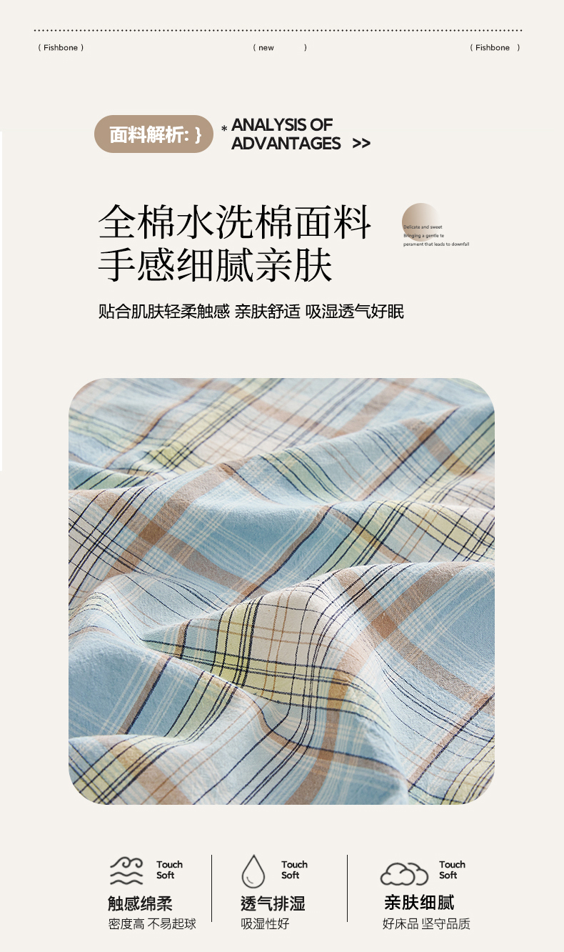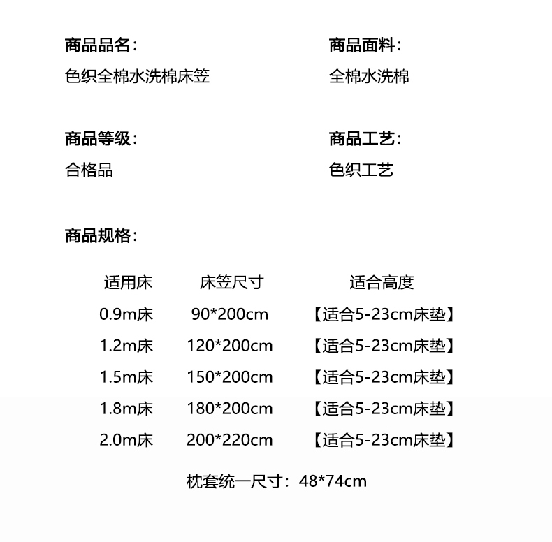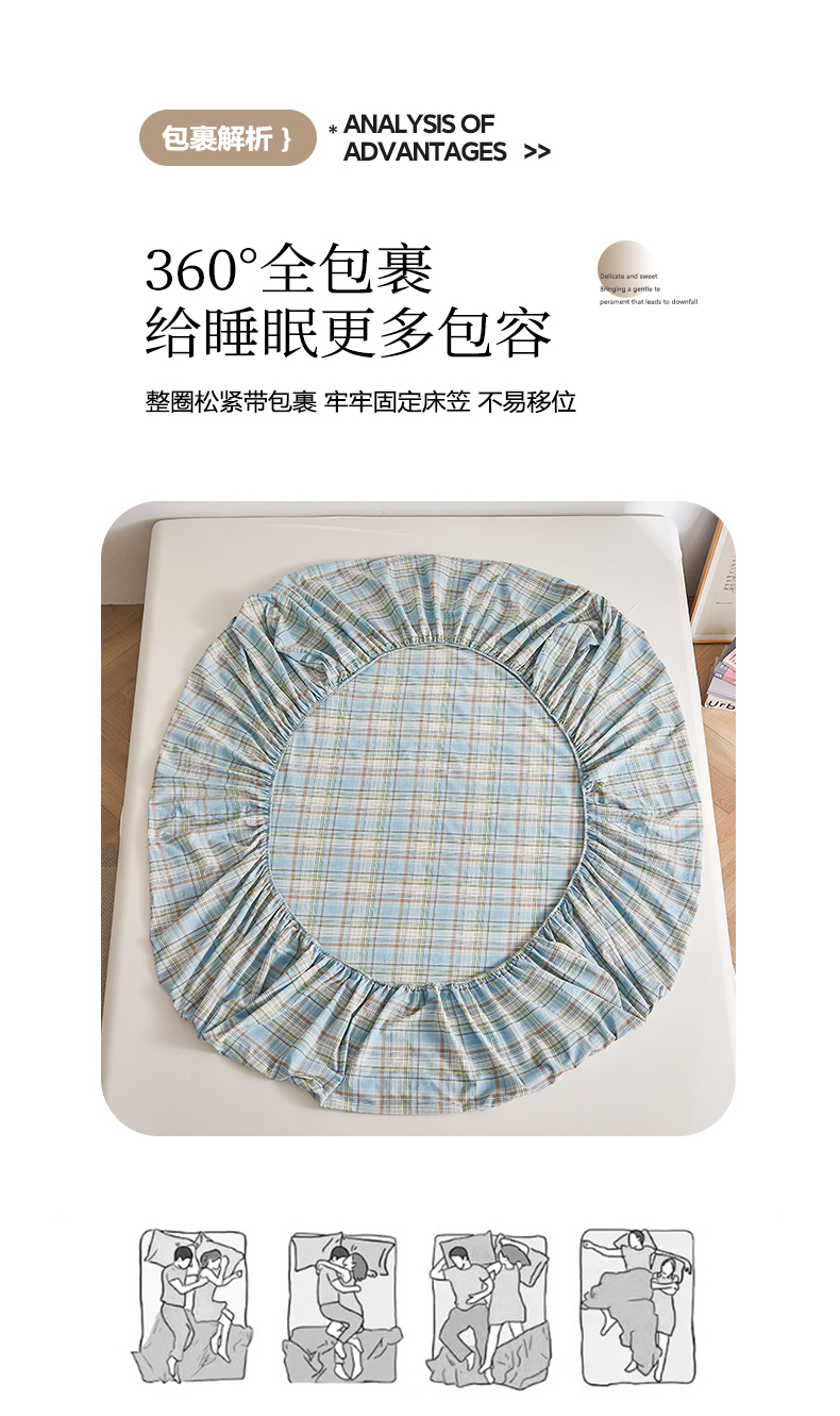 商品名称:(总)雅萱家纺 2024新款A类色织全棉水洗棉单床笠