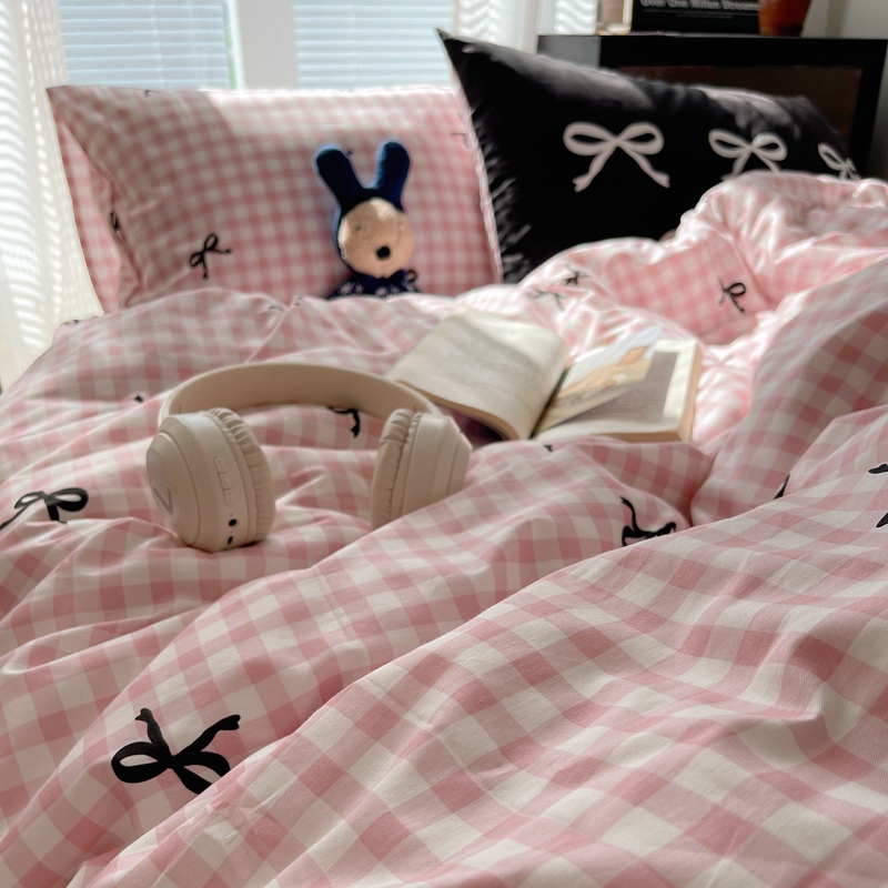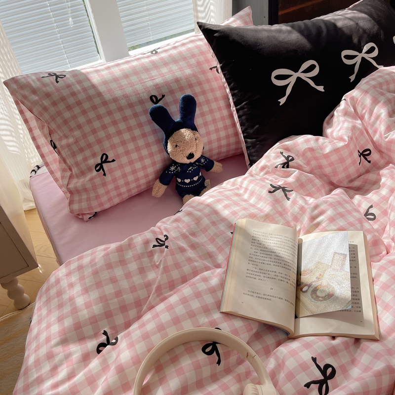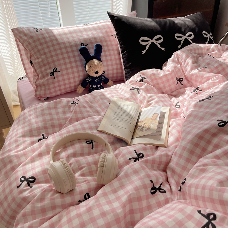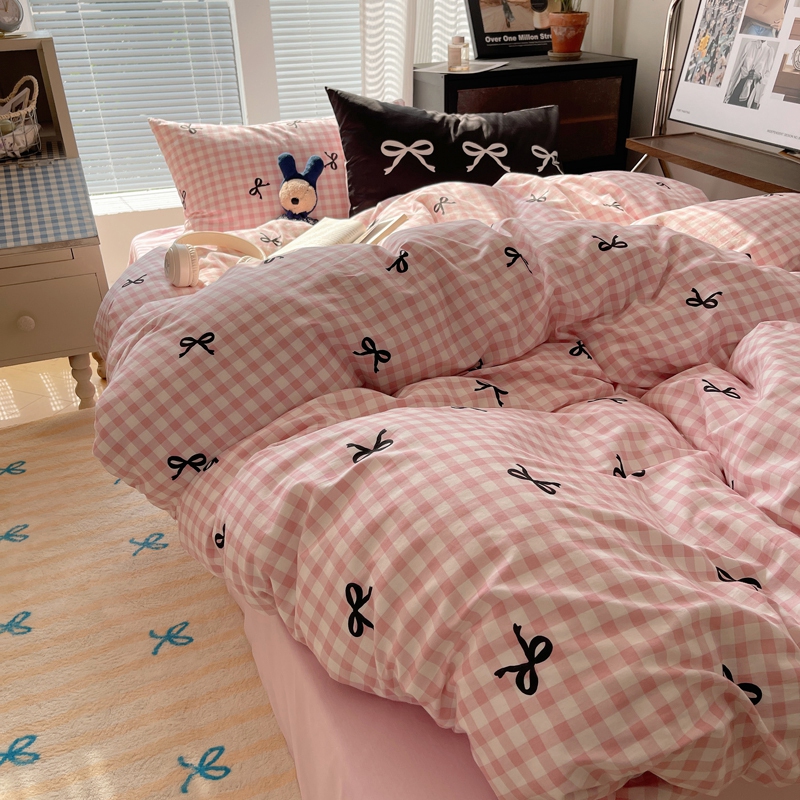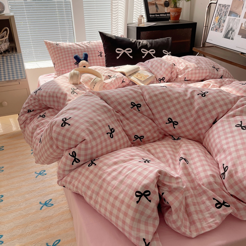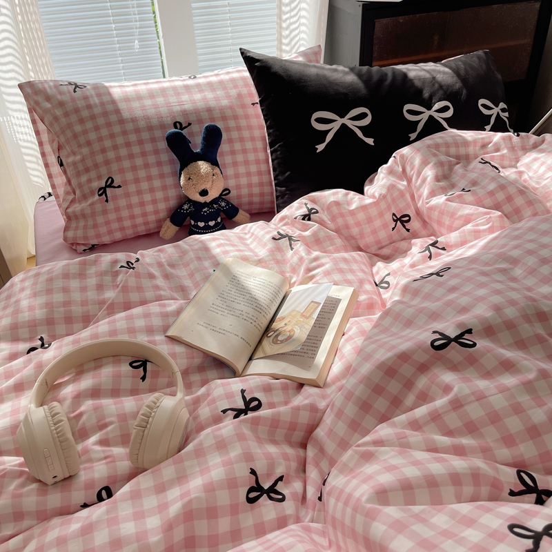桃喜 2024新款Ins风全棉混搭系列四件套 蝴蝶结粉