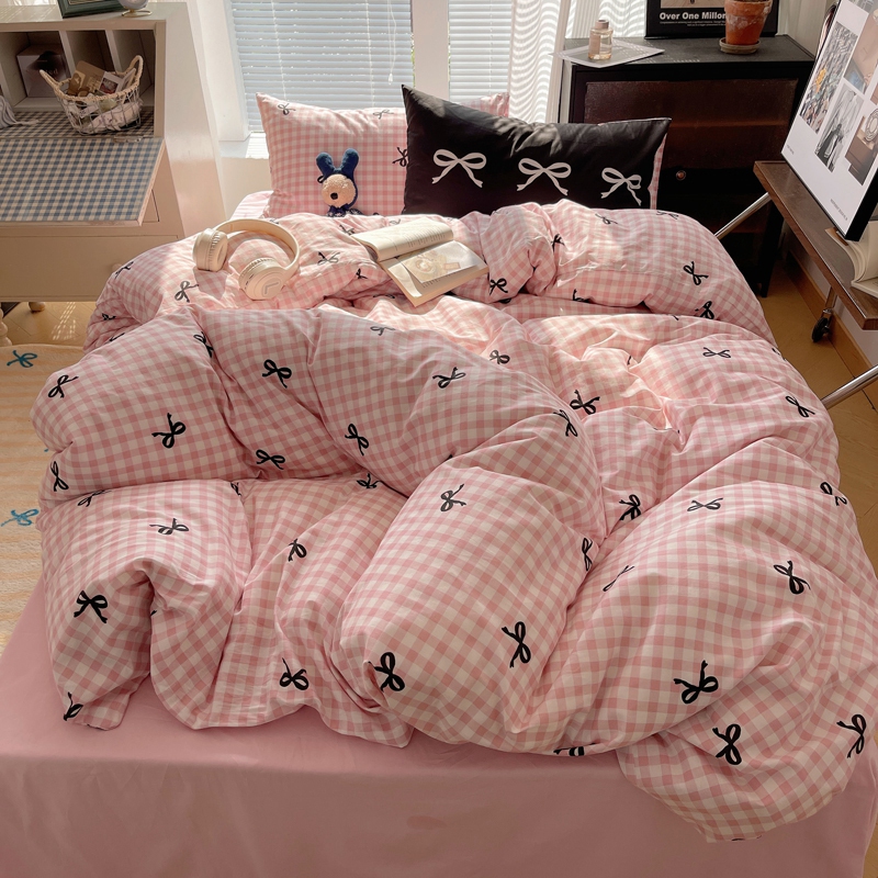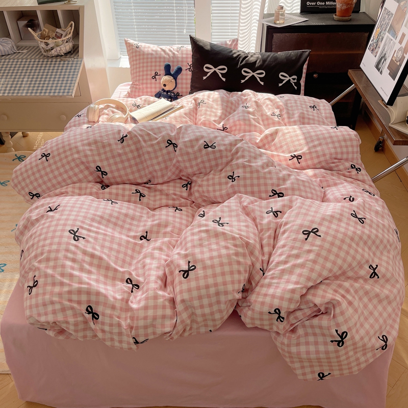 商品名称:桃喜 2024新款Ins风全棉混搭系列四件套 蝴蝶结粉