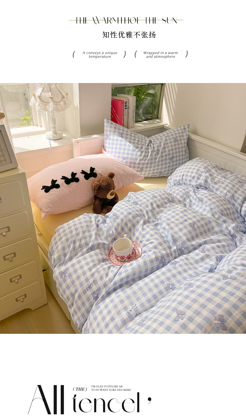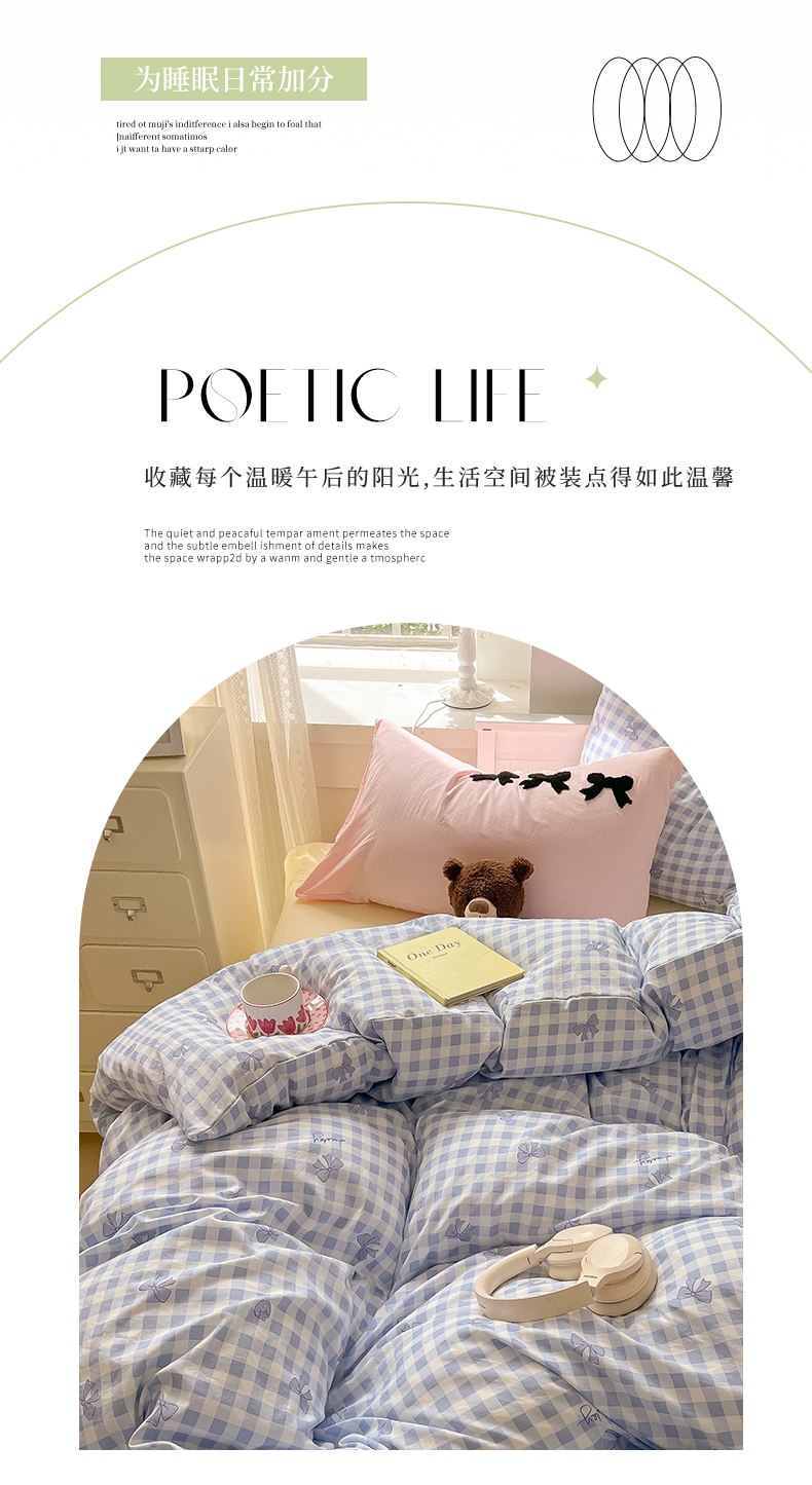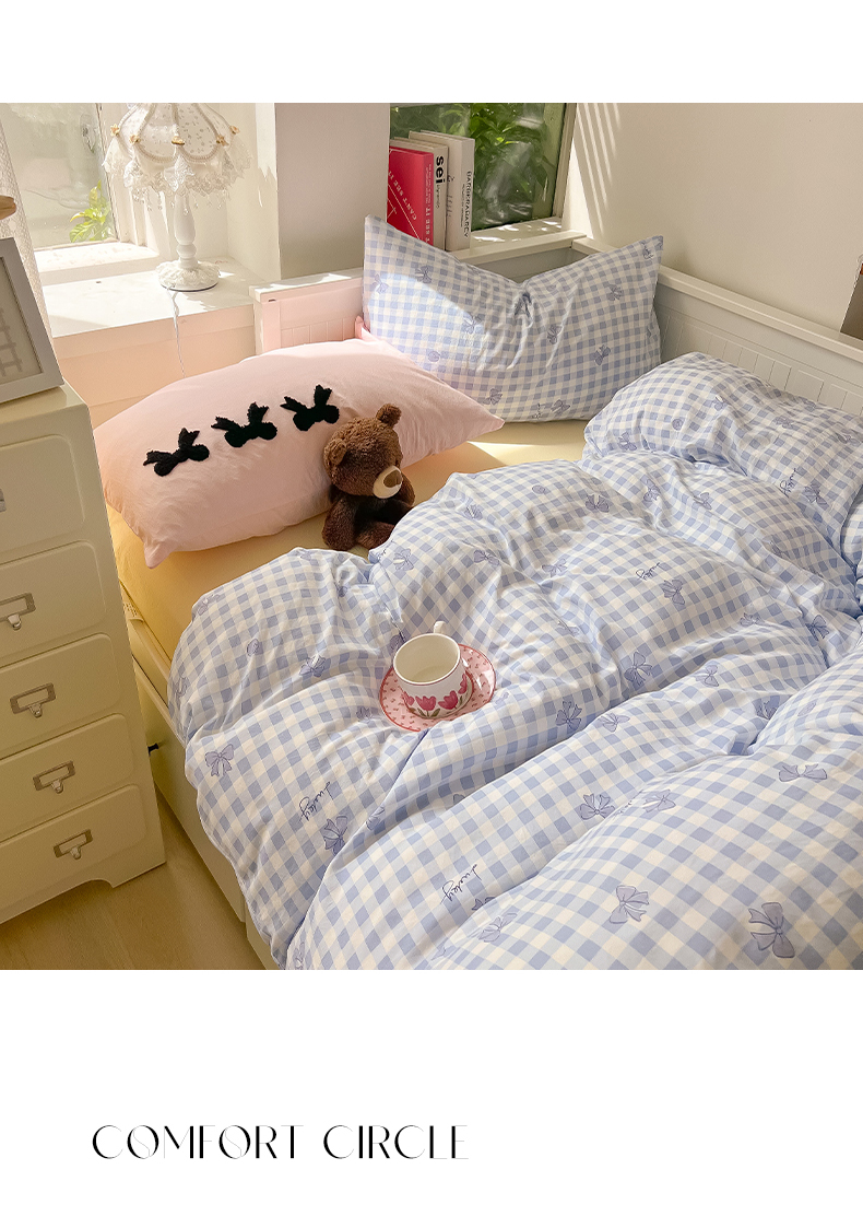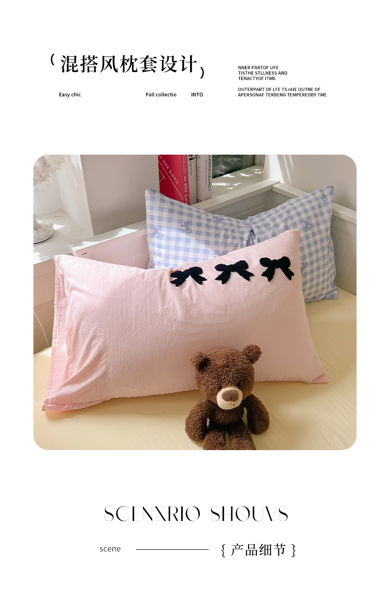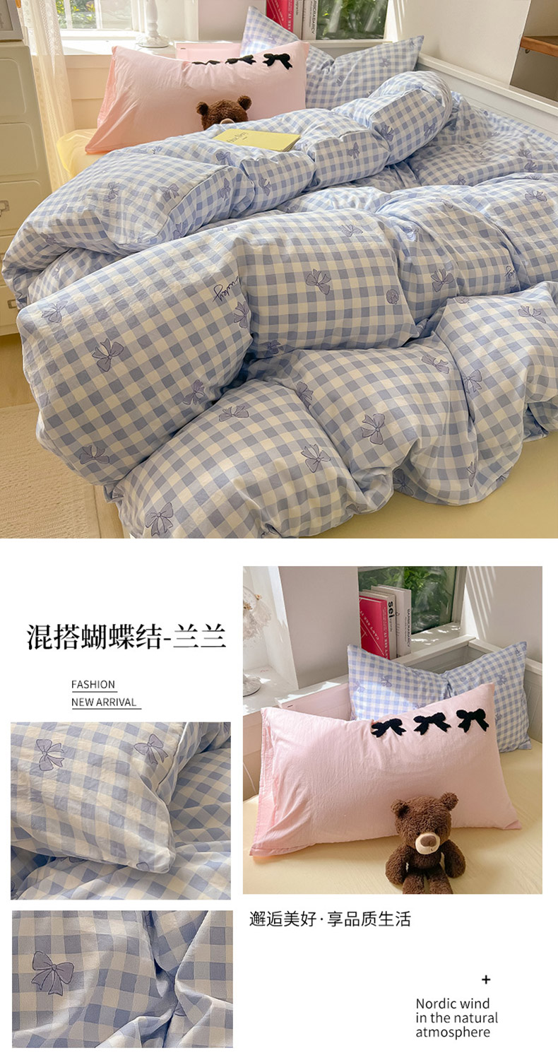 当前位置: 91家纺网 > 商品网购 > 床品套件 > 四件套 > 全棉普通四件套 > 韩都家居 2024新款ins风超柔水洗云朵棉混搭蝴蝶结四件套 混搭蝴蝶结-兰兰