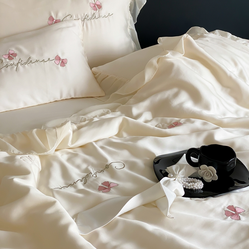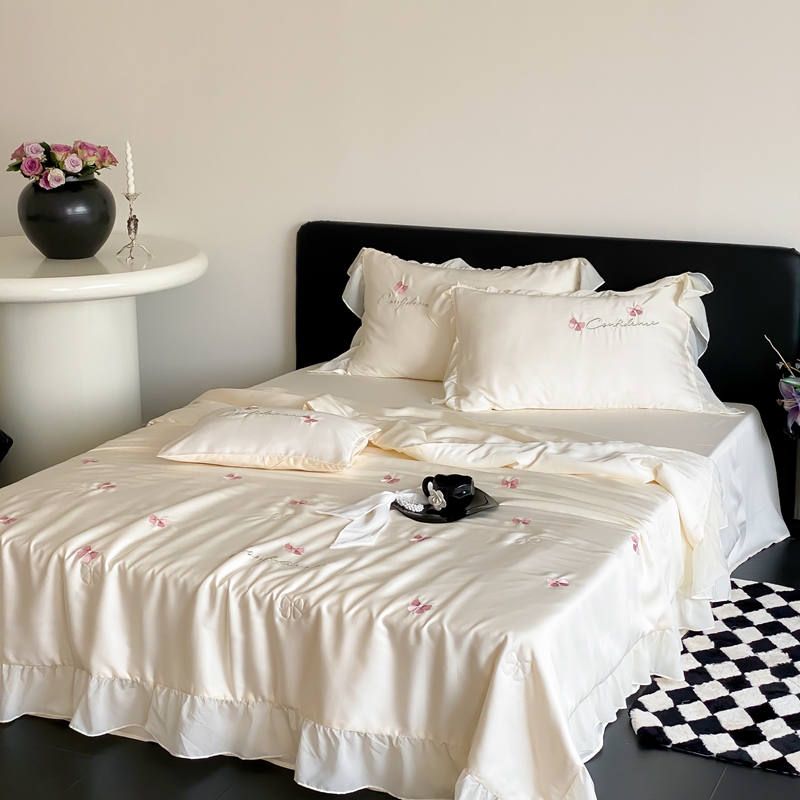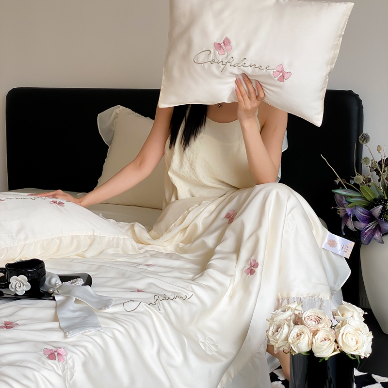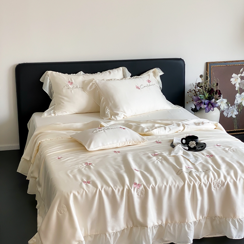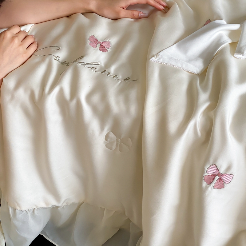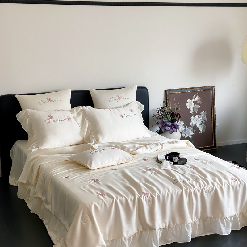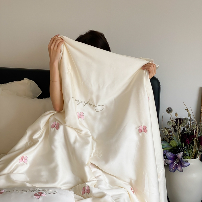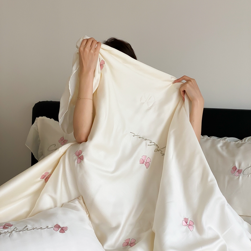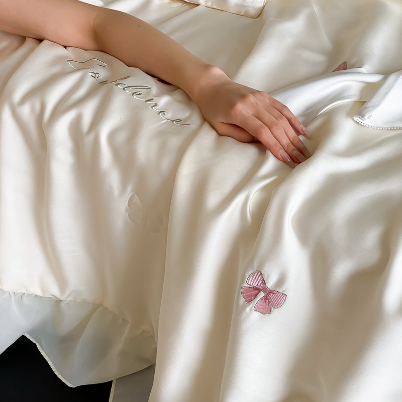 商品名称:曼布缇 2025新款100S兰精天丝蚕丝棉夏被四件套-艾丽莎 艾丽莎-白桃