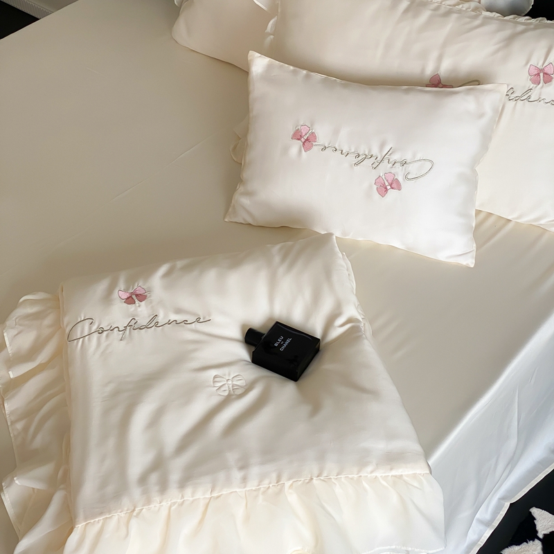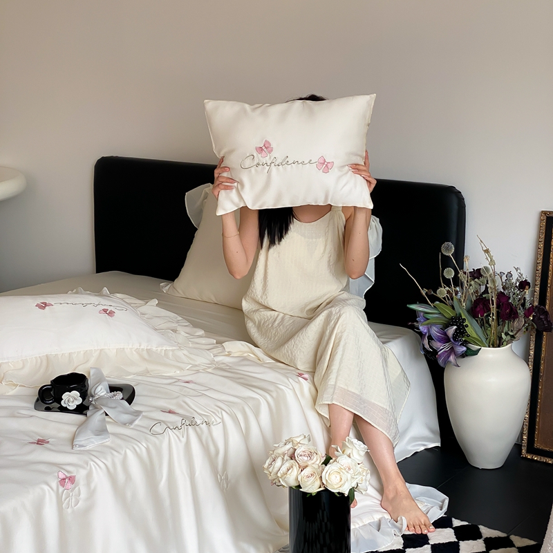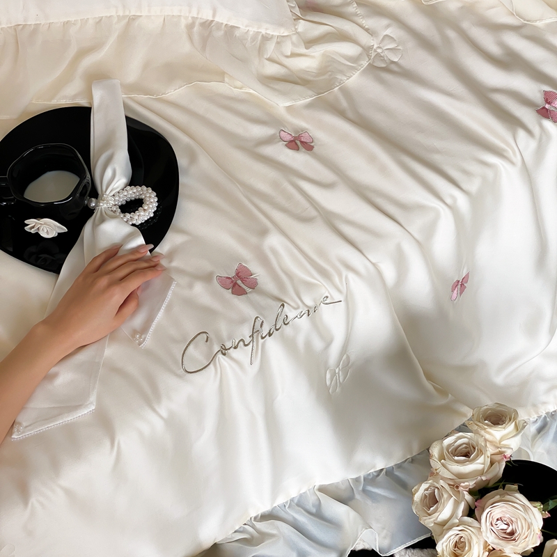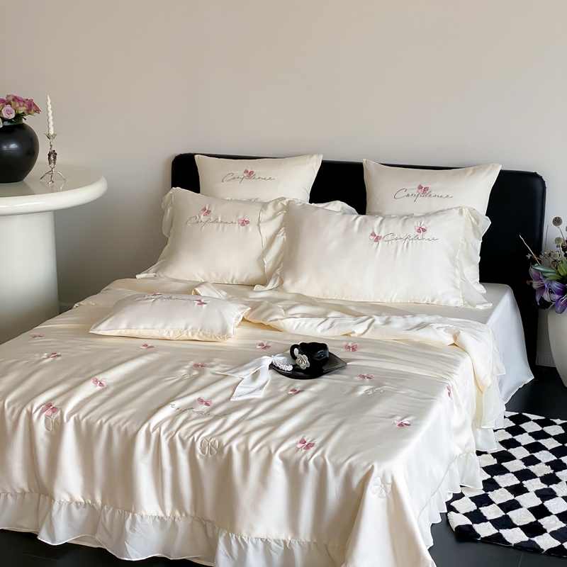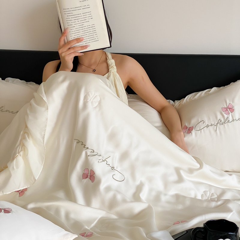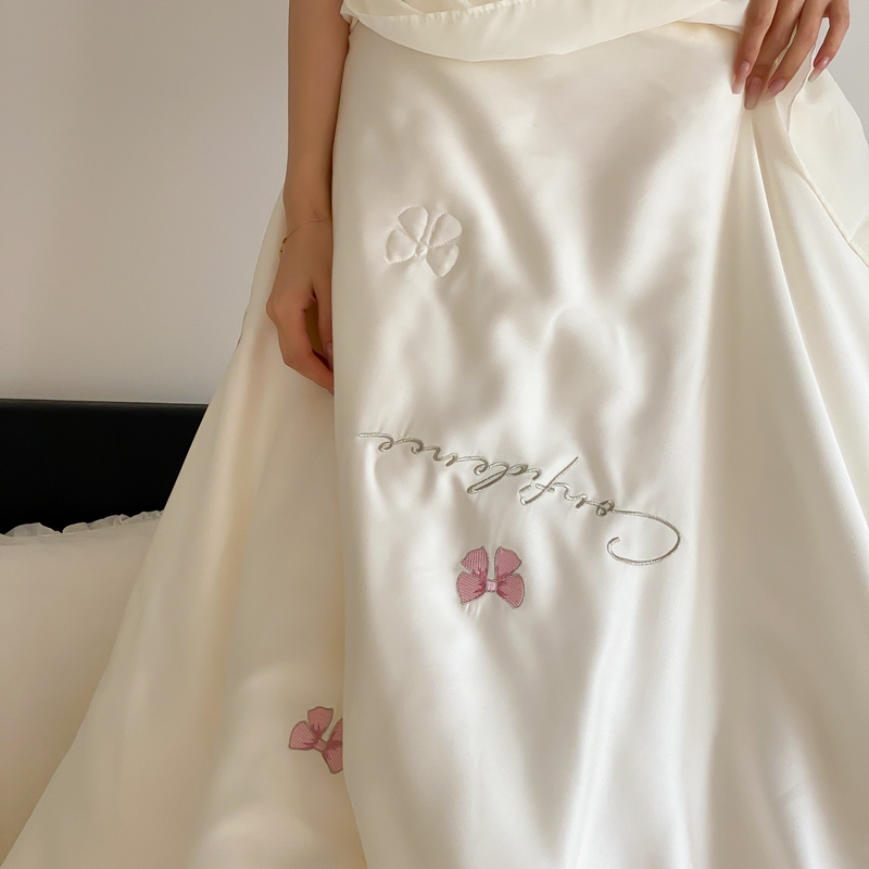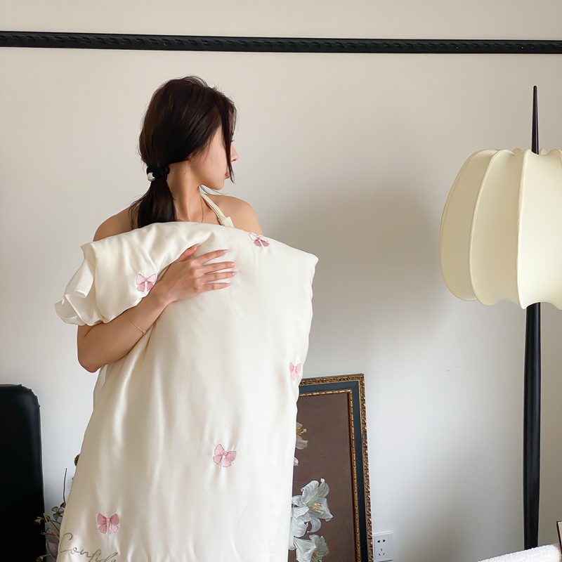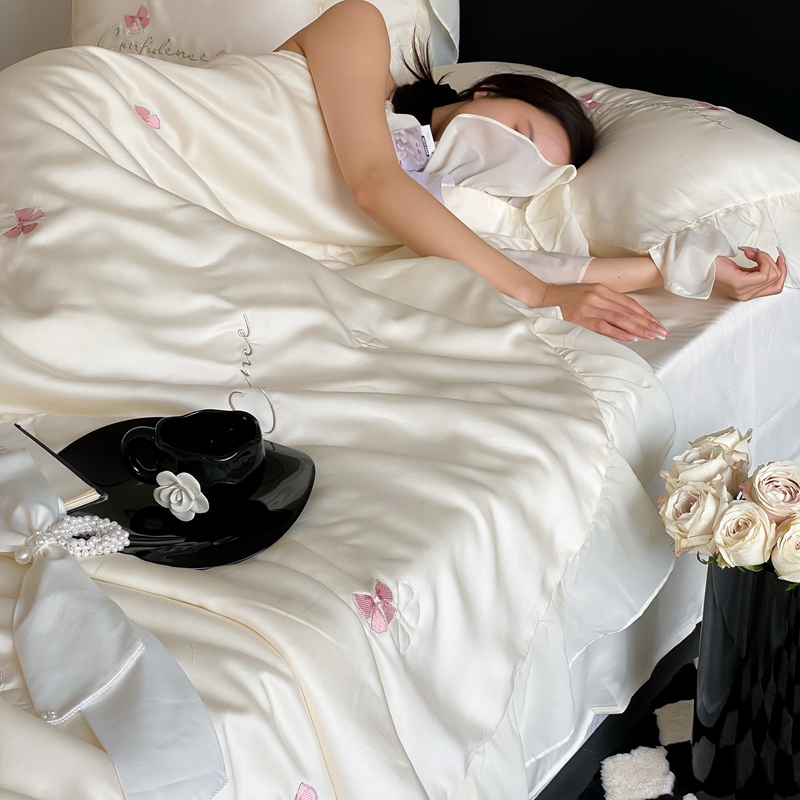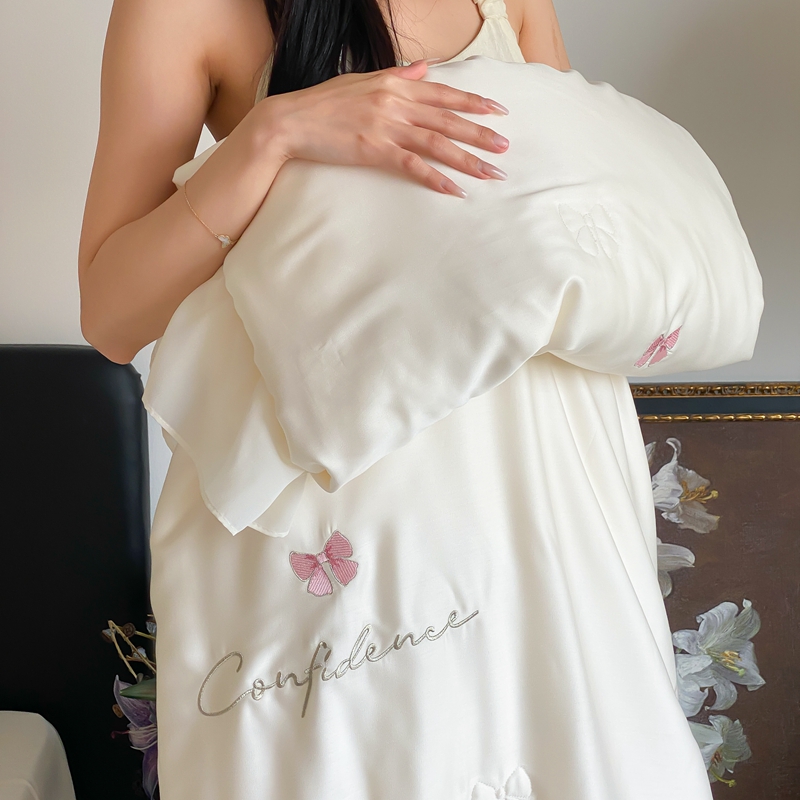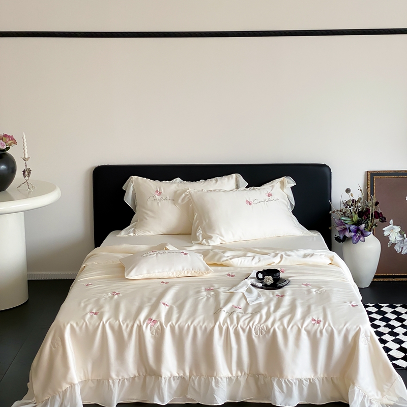 商品名称:曼布缇 2025新款100S兰精天丝蚕丝棉夏被四件套-艾丽莎 艾丽莎-白桃
