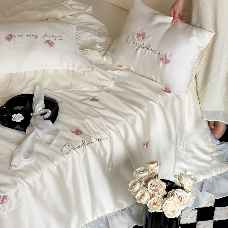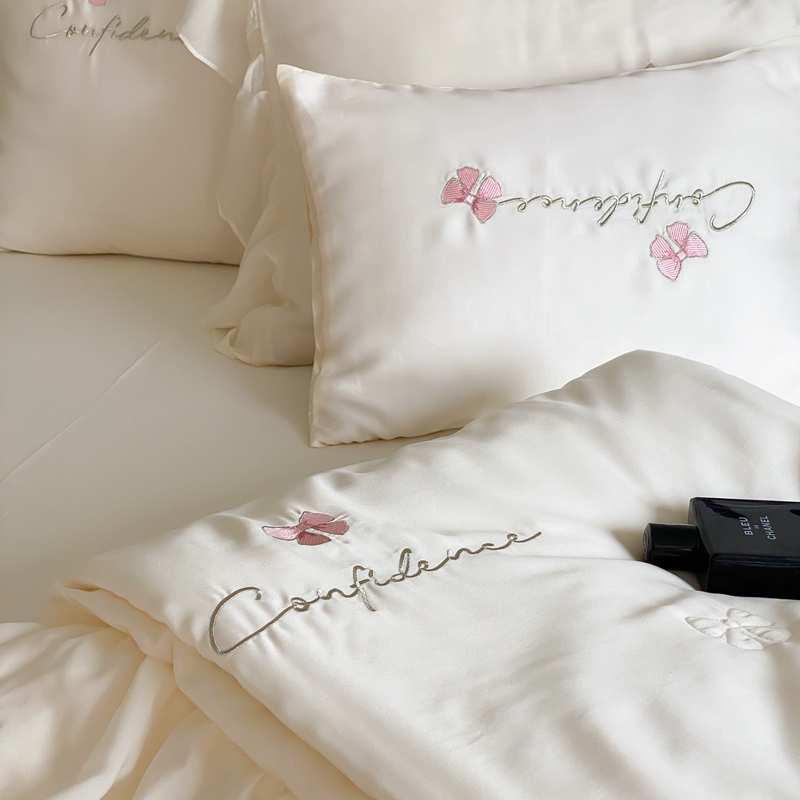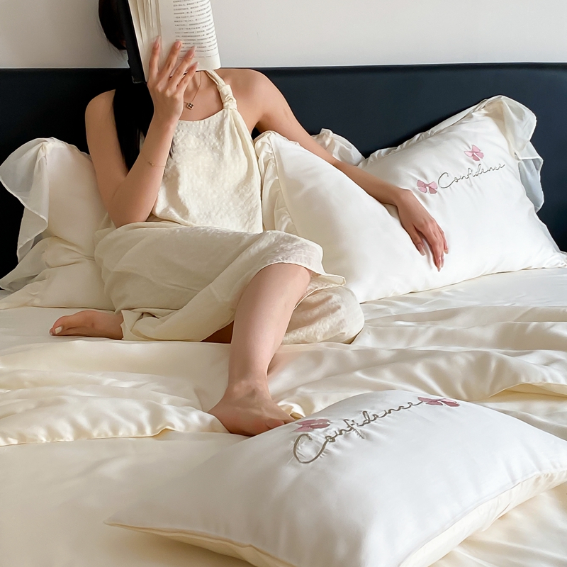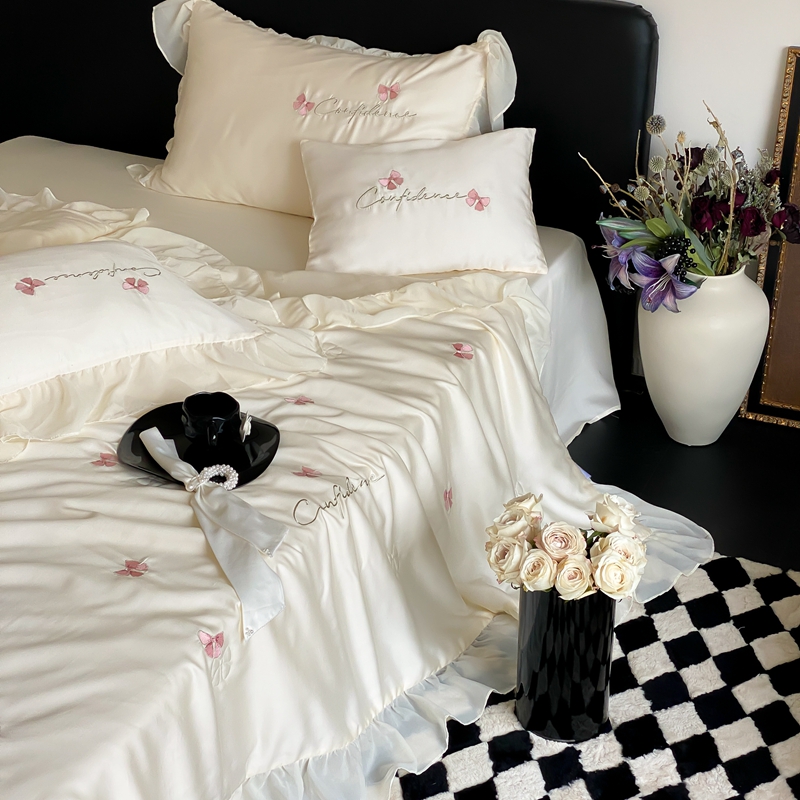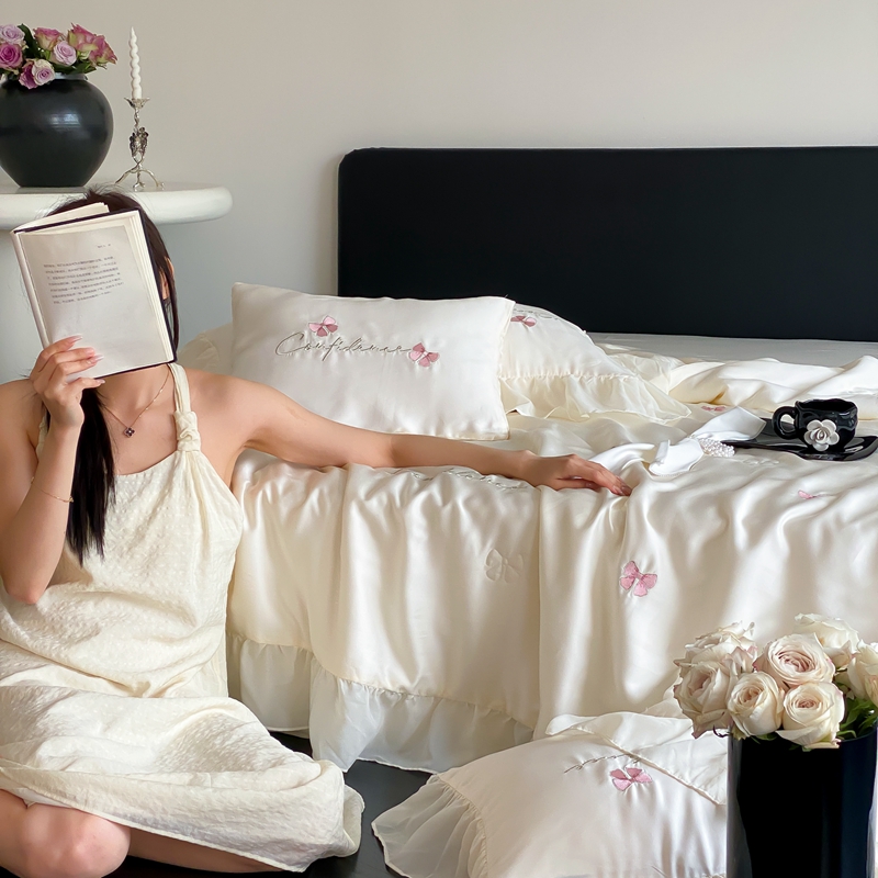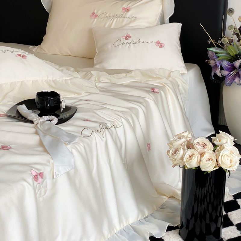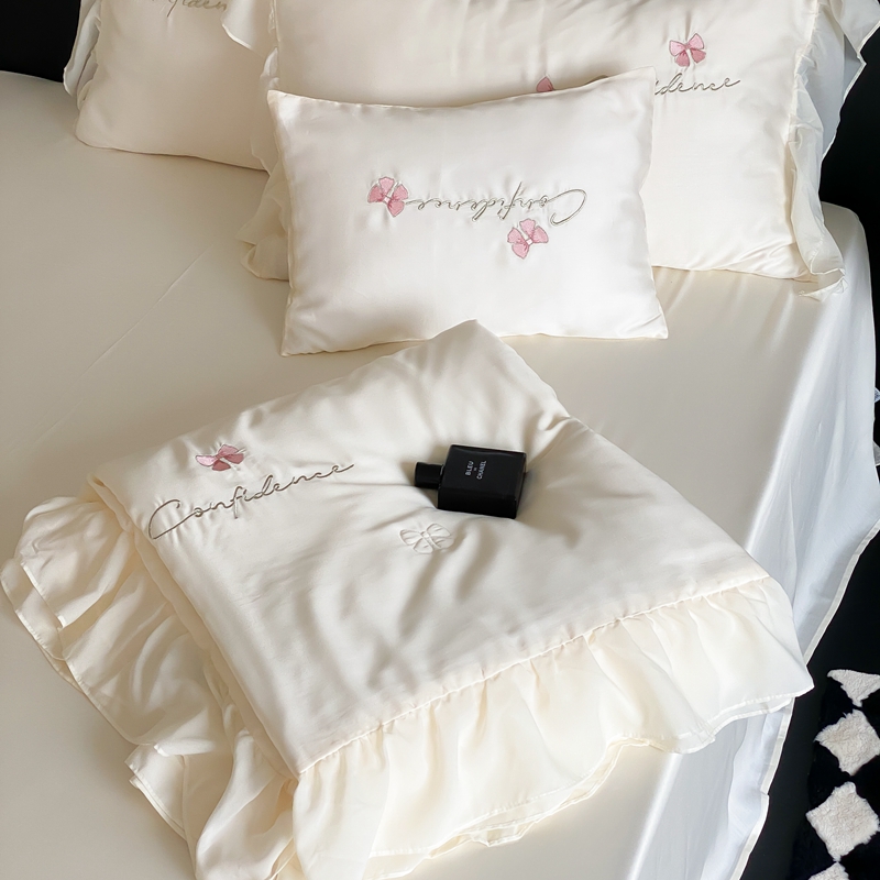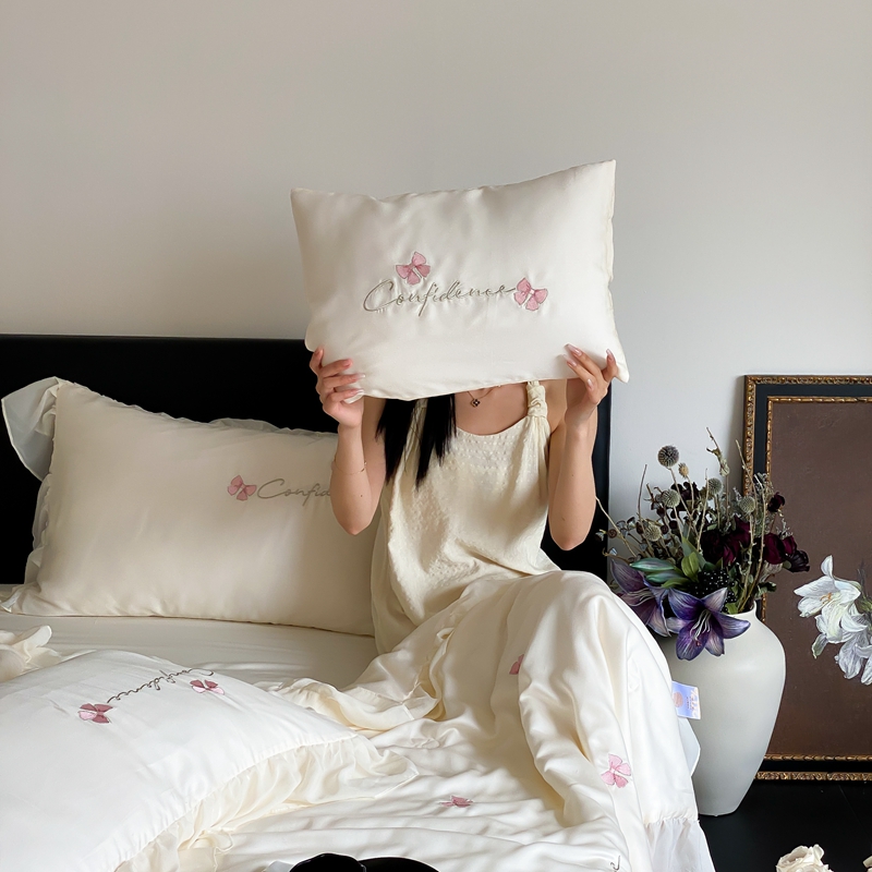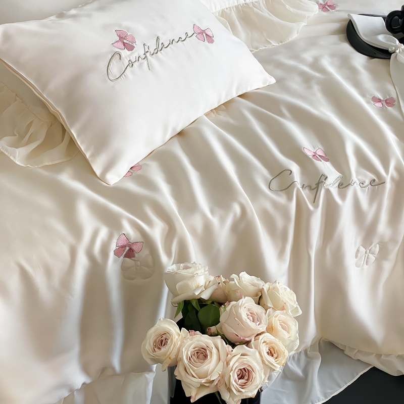 商品名称:曼布缇 2025新款100S兰精天丝蚕丝棉夏被四件套-艾丽莎 艾丽莎-白桃
