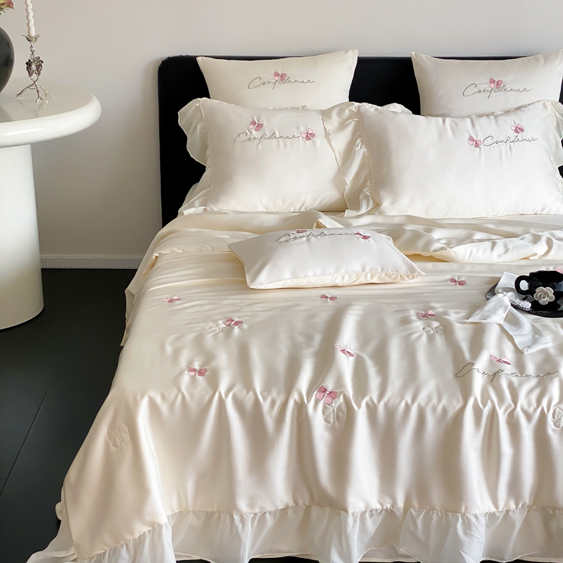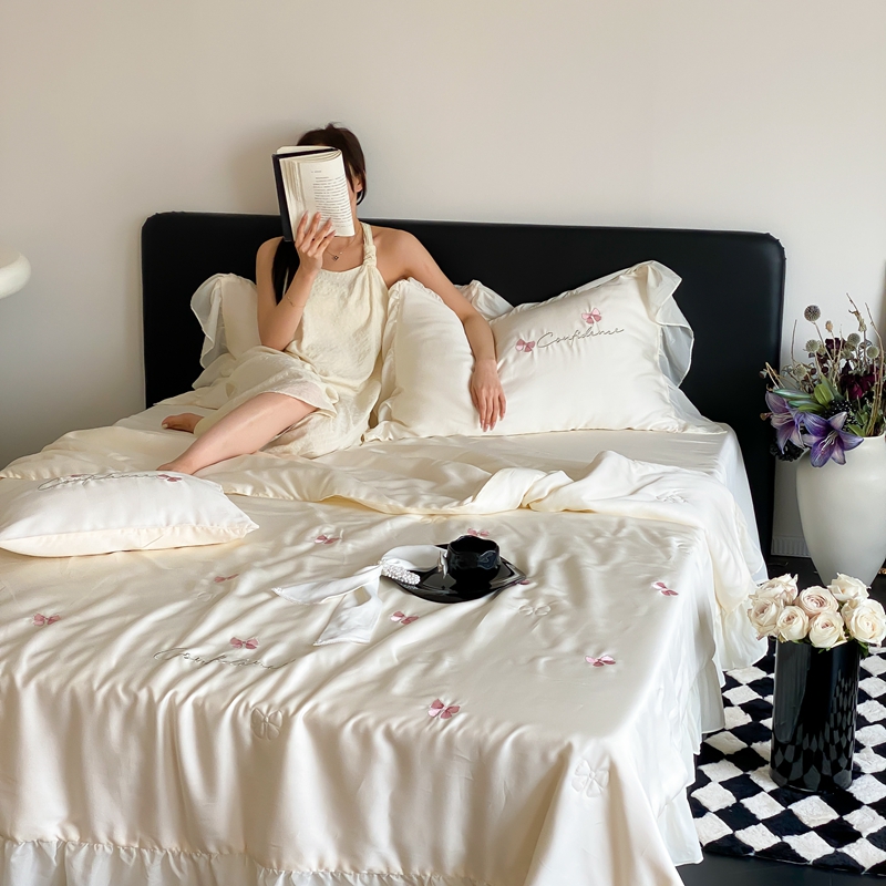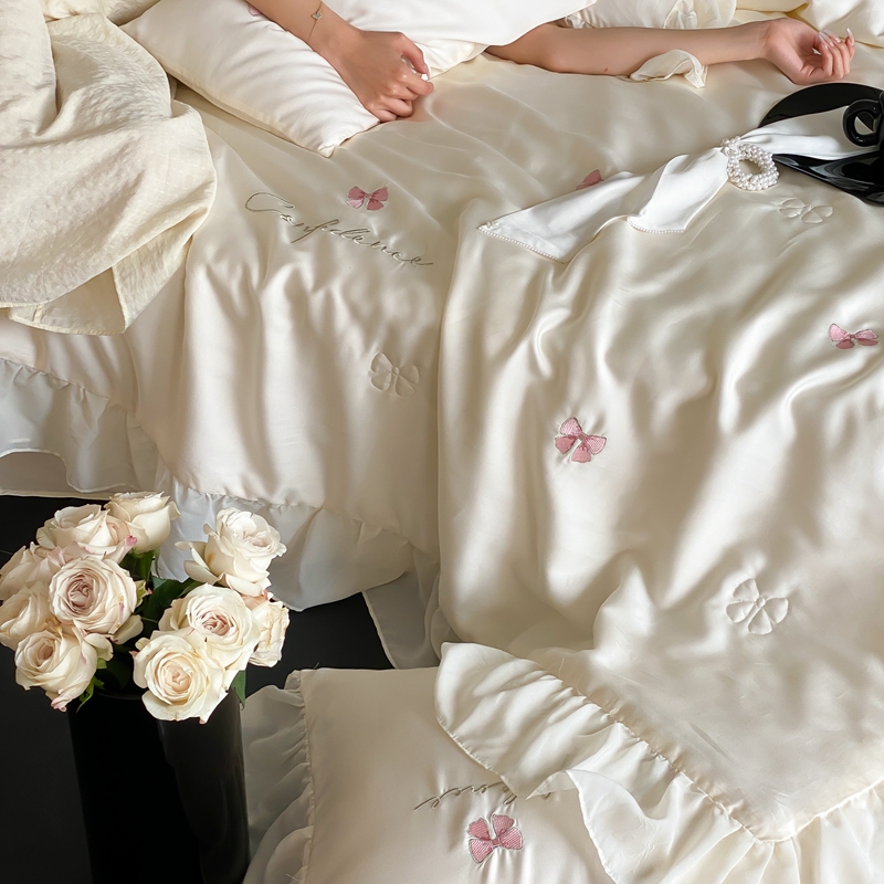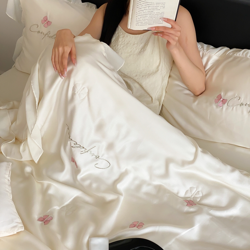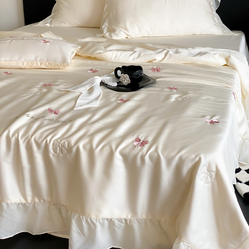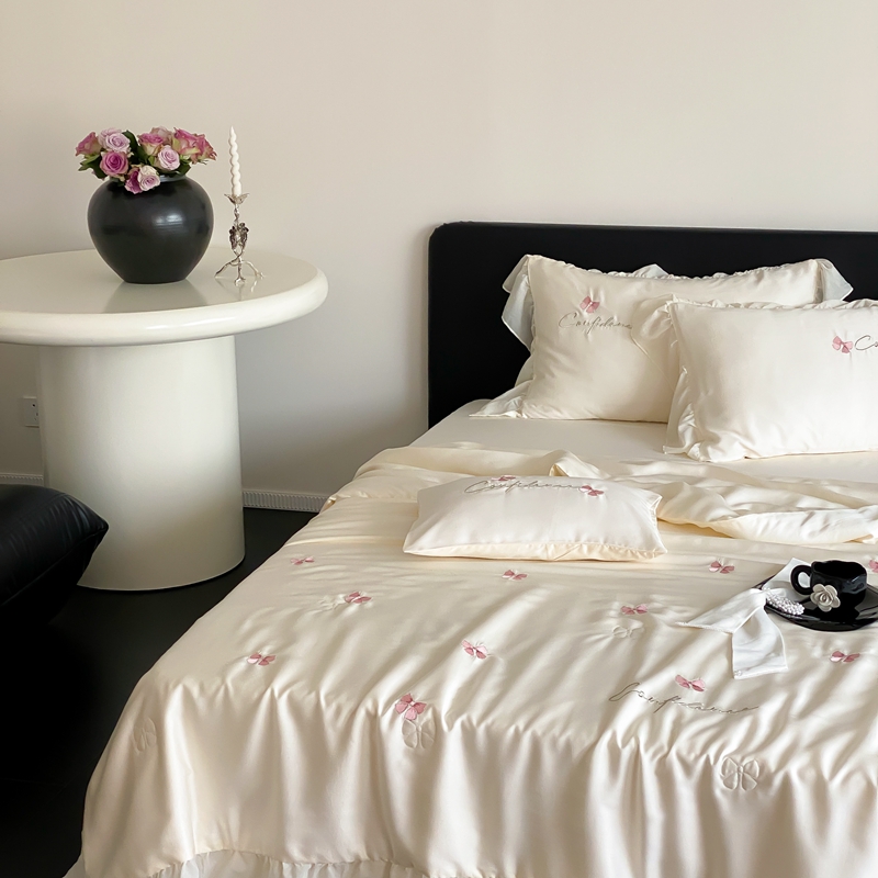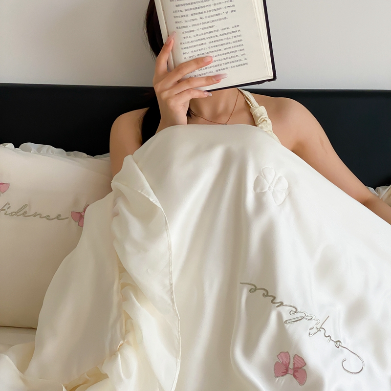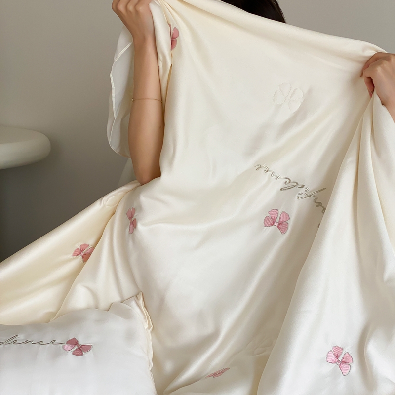 曼布缇 2025新款100S兰精天丝蚕丝棉夏被四件套-艾丽莎 艾丽莎-白桃