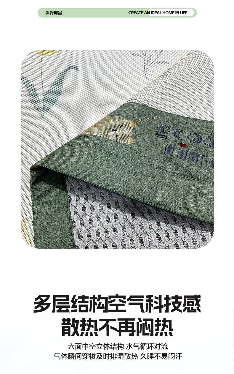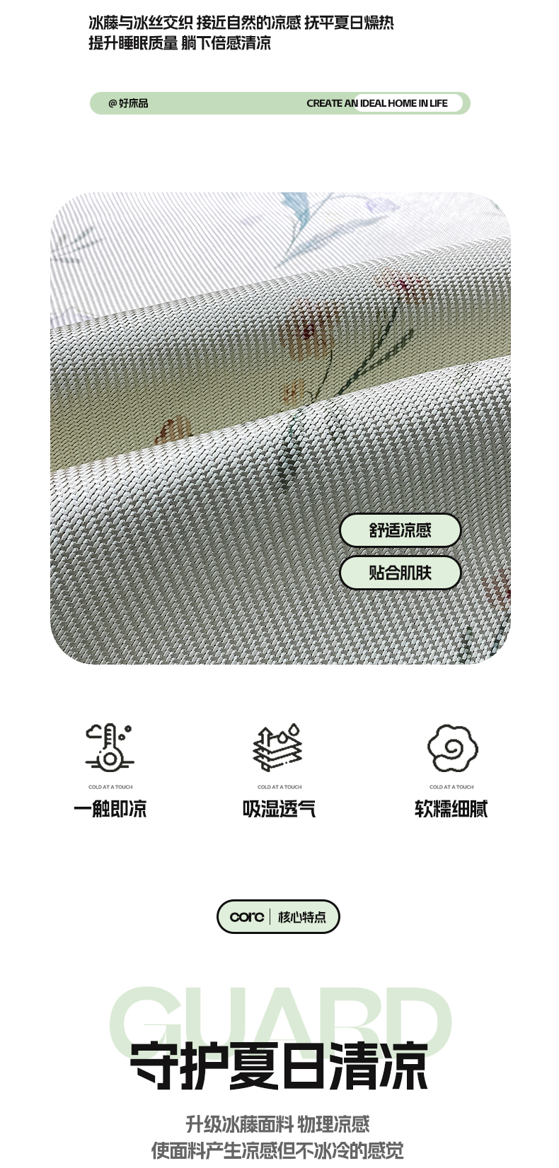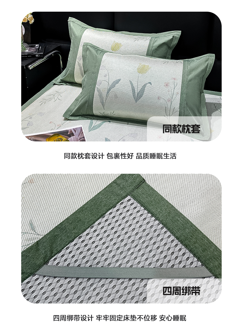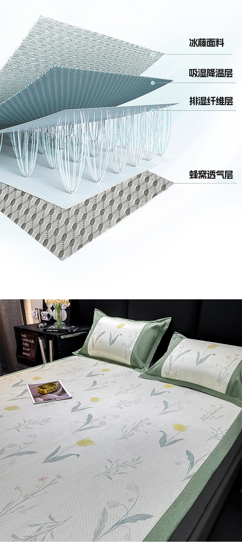 商品名称:宜家坊 2024新款A类抗菌数码印花冰藤凉席 床席款-花语
