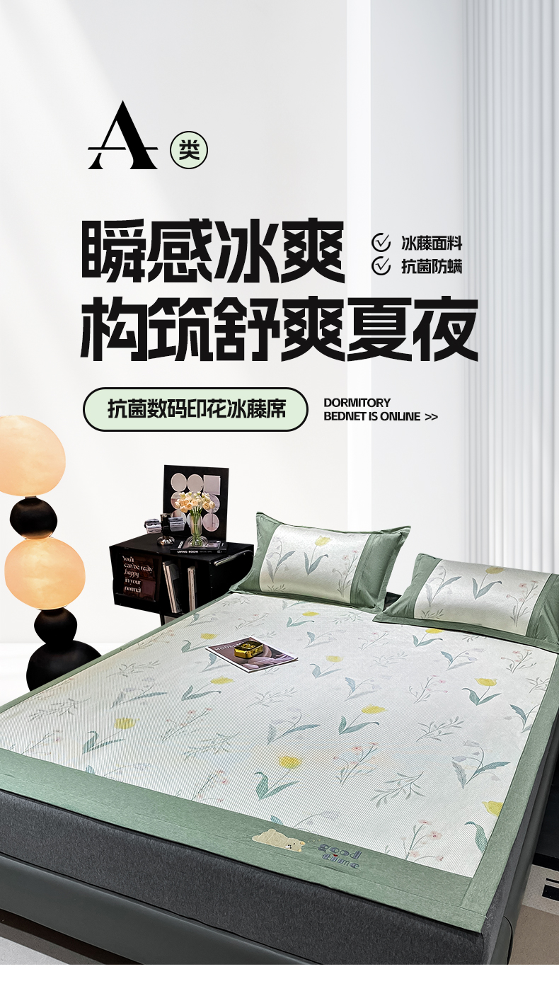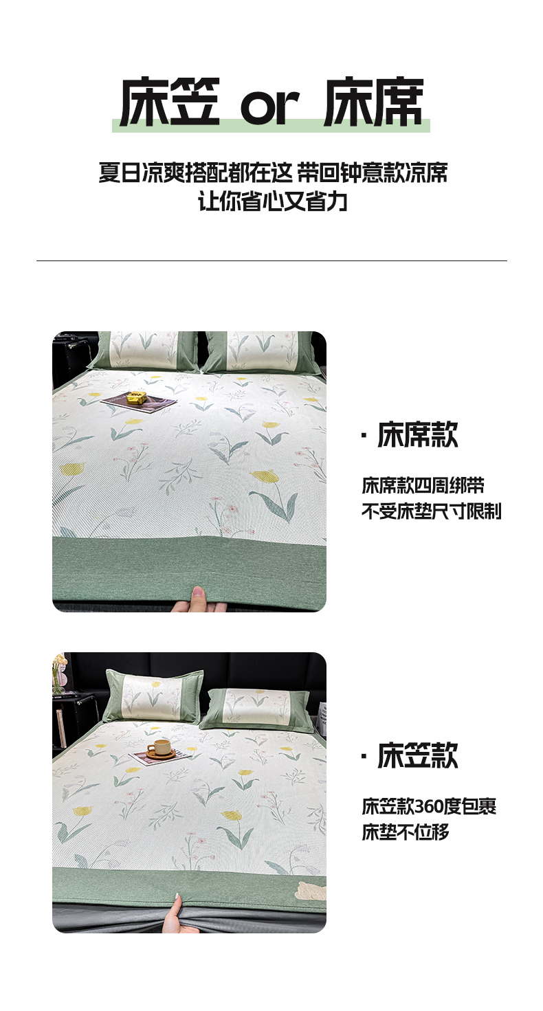 宜家坊 2024新款A类抗菌数码印花冰藤凉席 床席款-花语