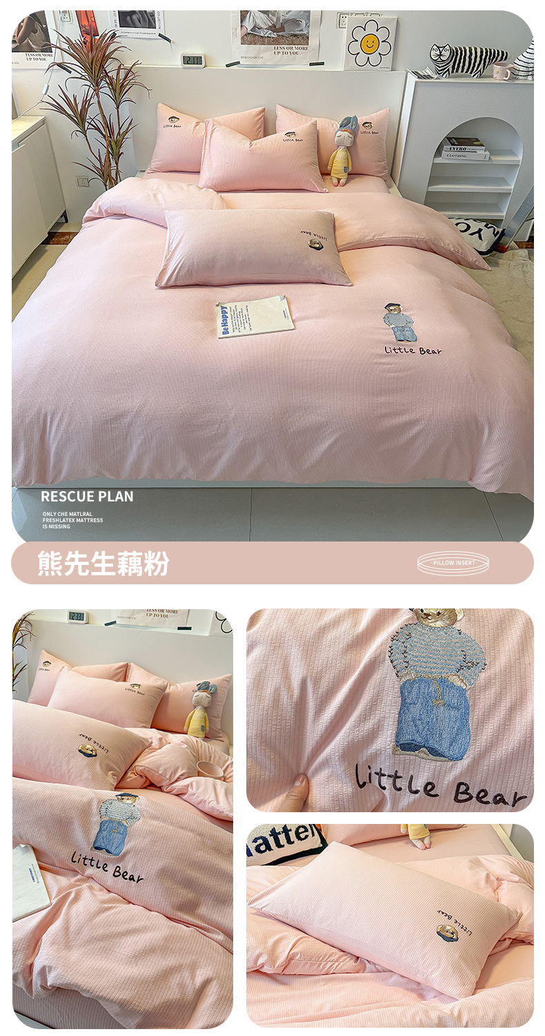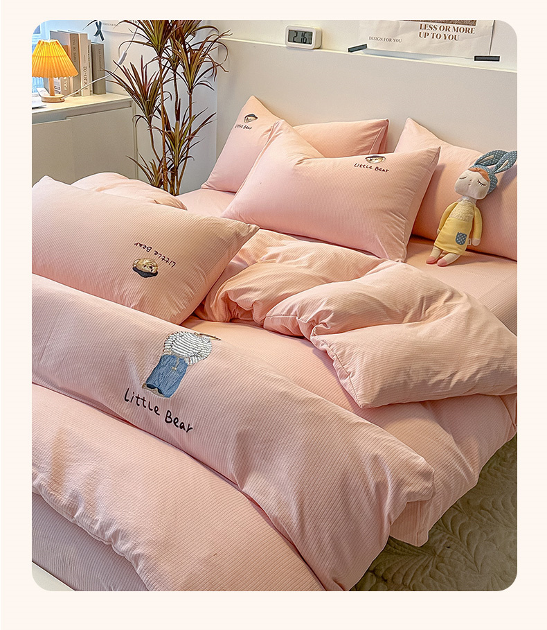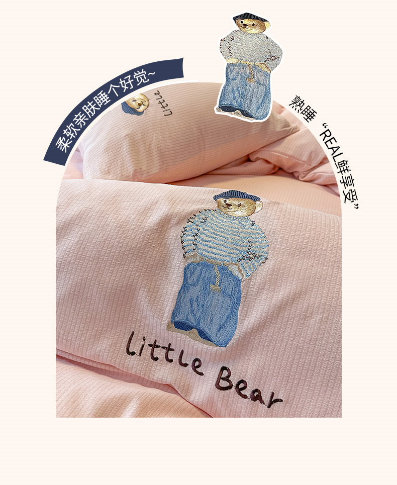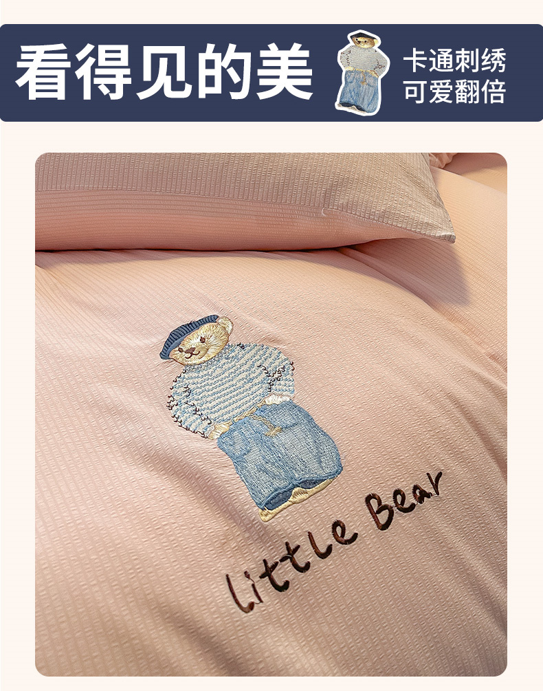 当前位置: 91家纺网 > 商品网购 > 床品套件 > 四件套 > 水洗棉四件套 > 眠帛家居 2024新款水洗棉提花刺绣四件套-熊先生 熊先生-藕粉
