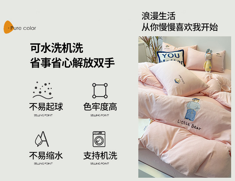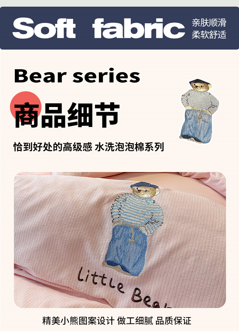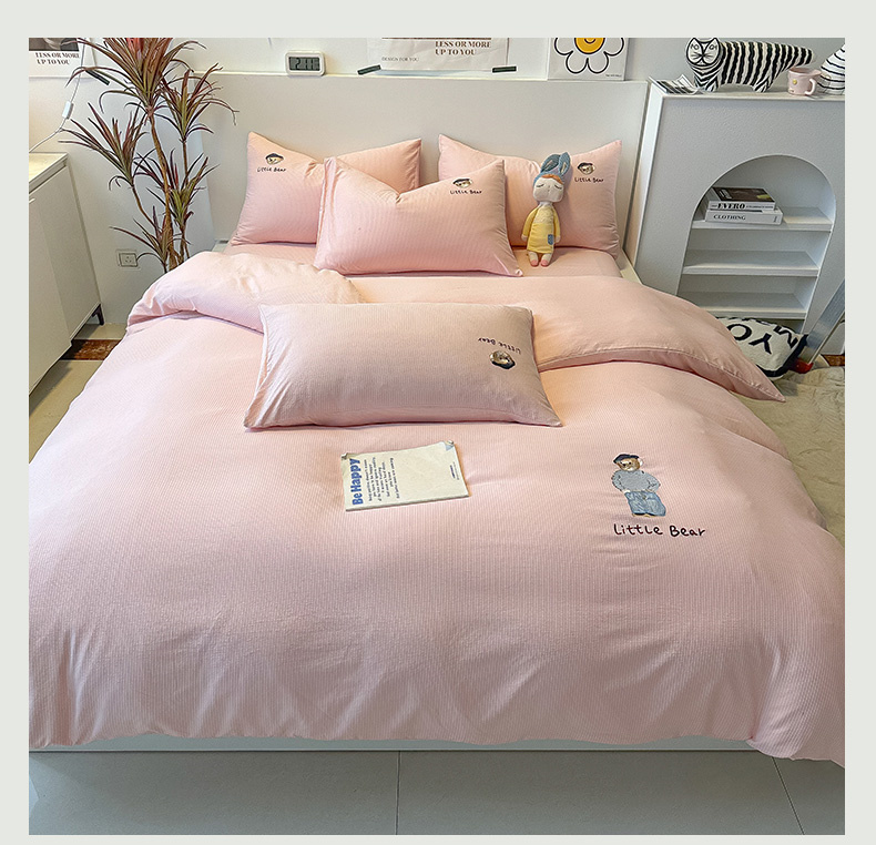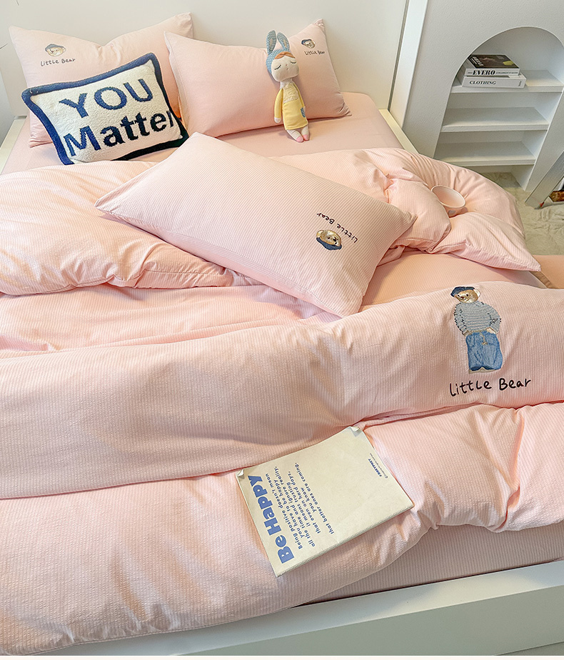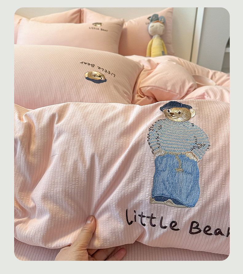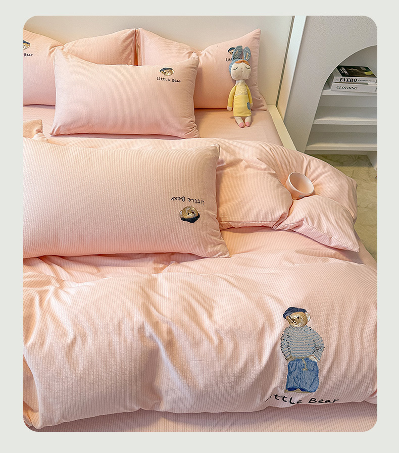 当前位置: 91家纺网 > 商品网购 > 床品套件 > 四件套 > 水洗棉四件套 > 眠帛家居 2024新款水洗棉提花刺绣四件套-熊先生 熊先生-藕粉