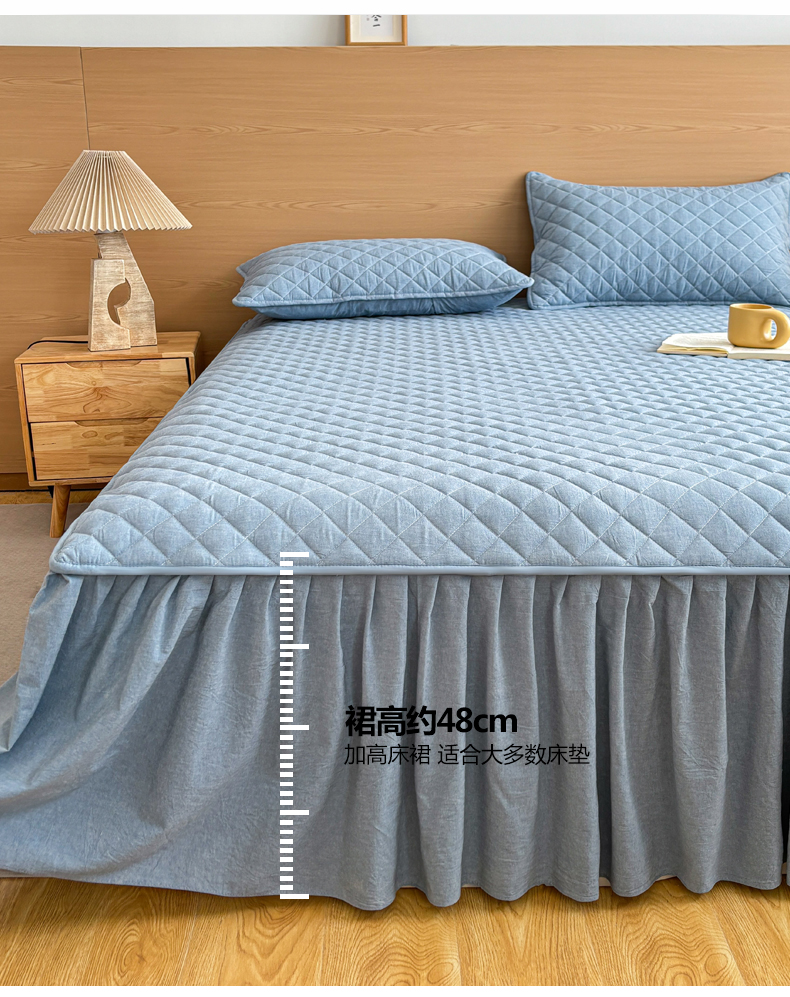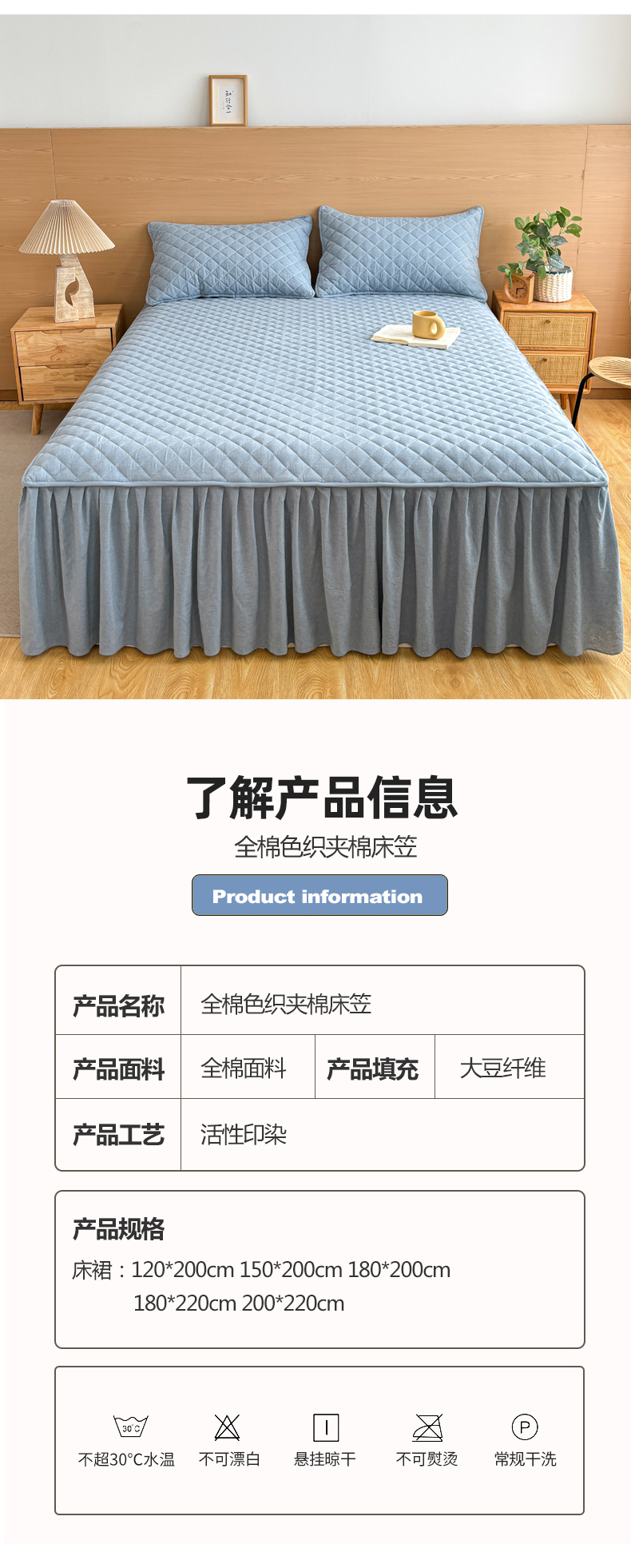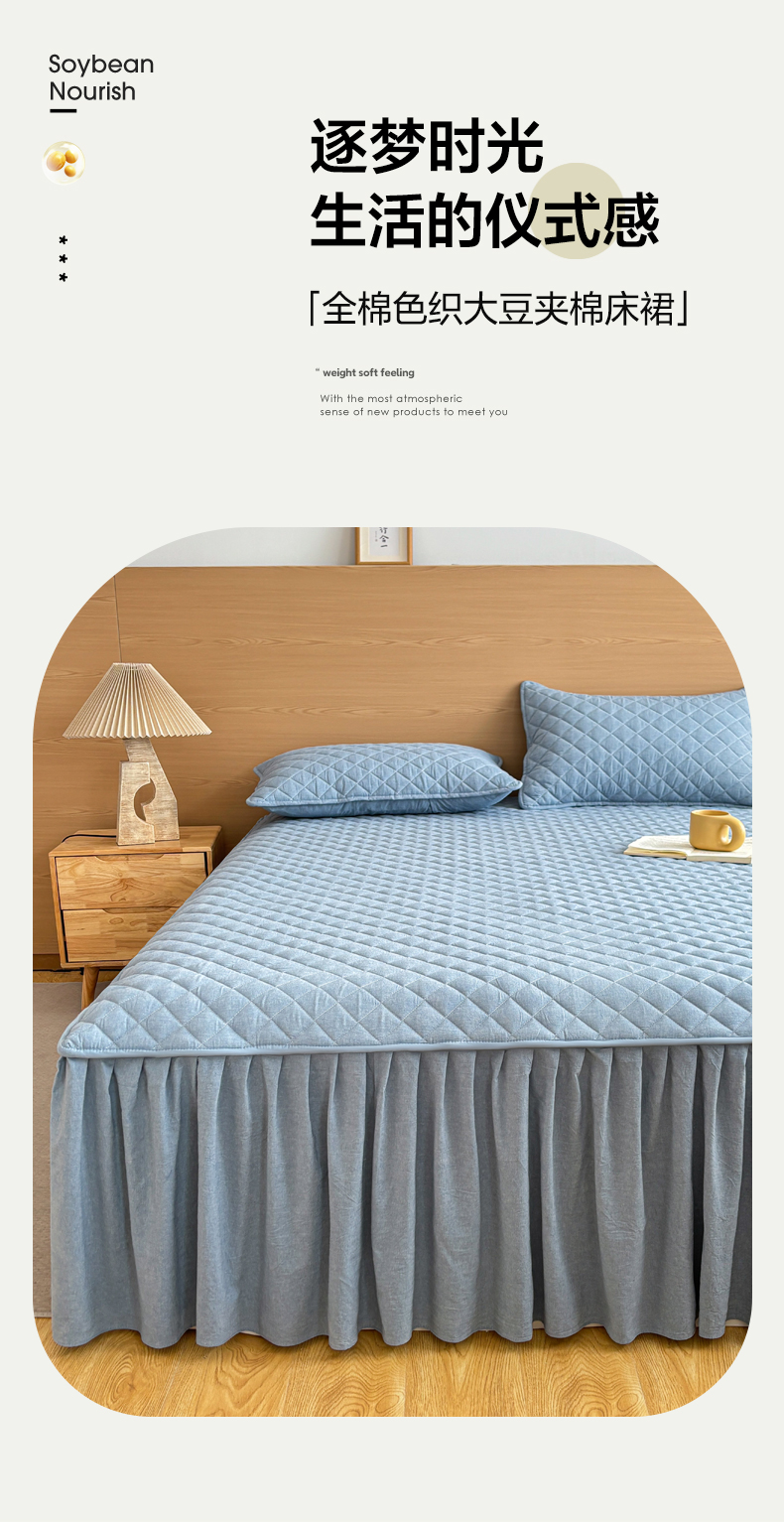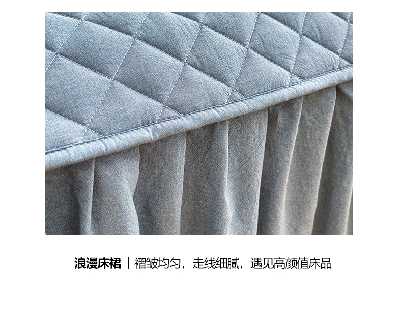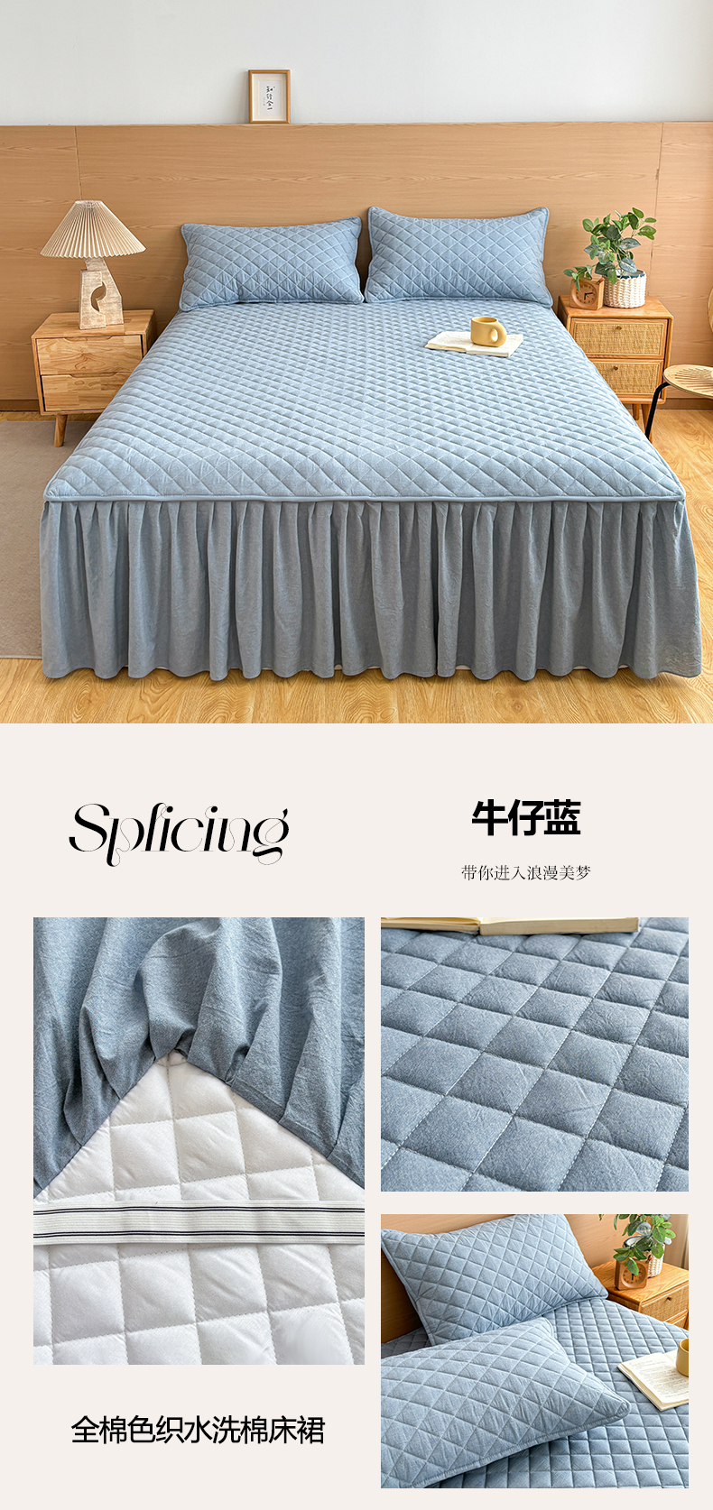 商品名称:糯米猪家纺 2024新款全棉色织水洗棉夹棉床裙 牛仔蓝