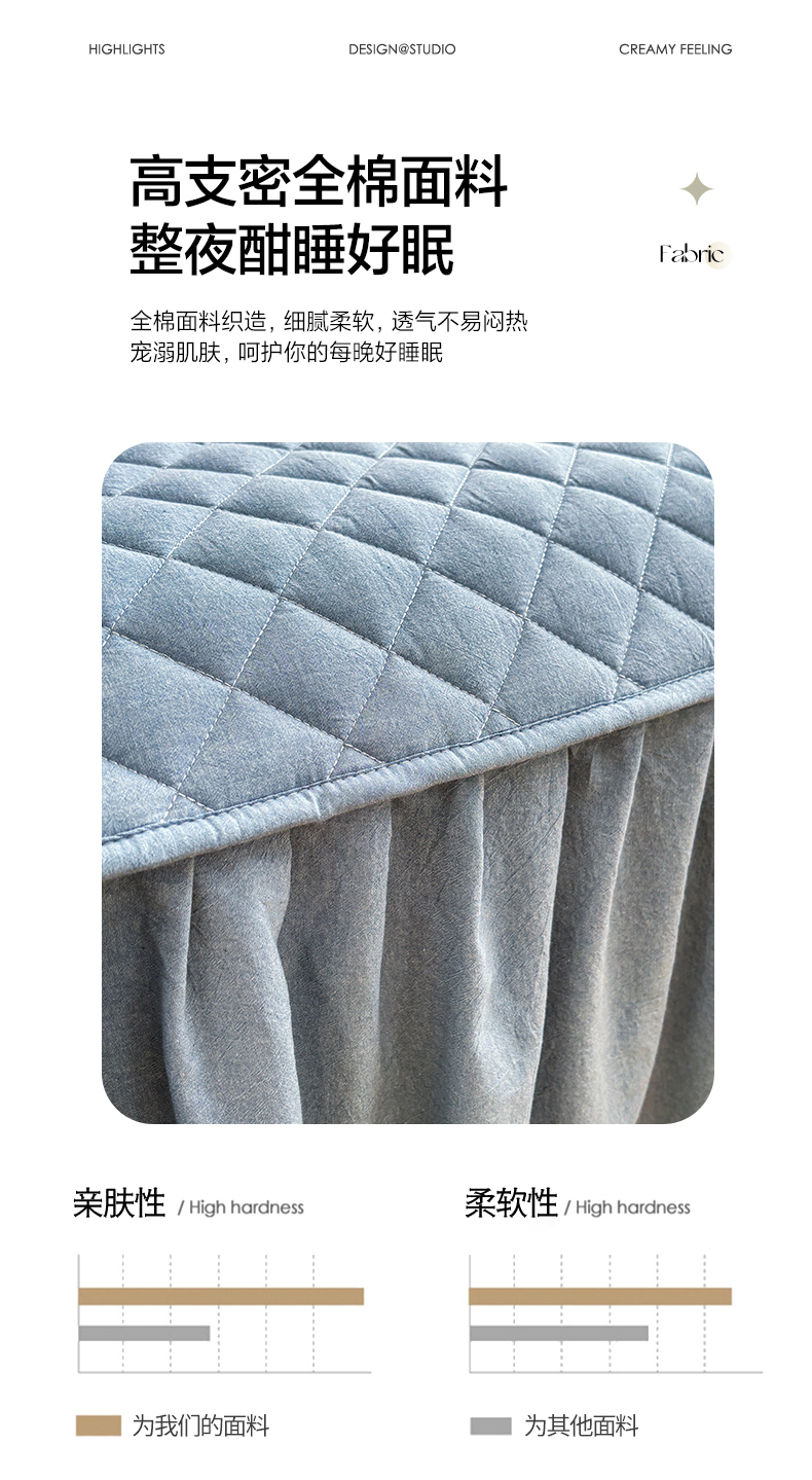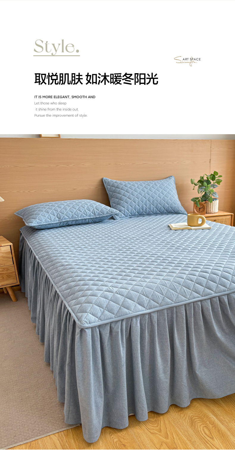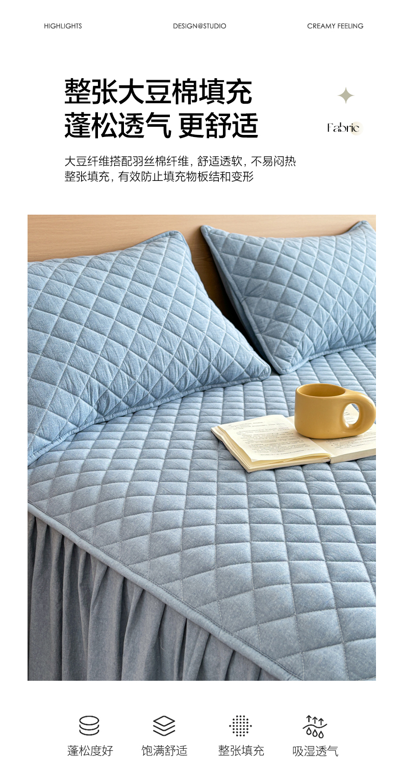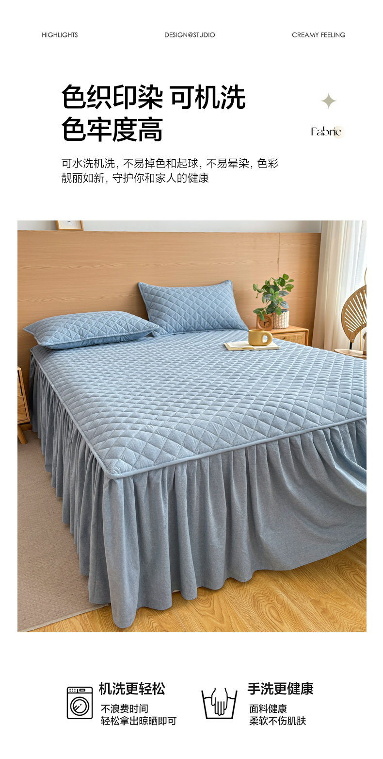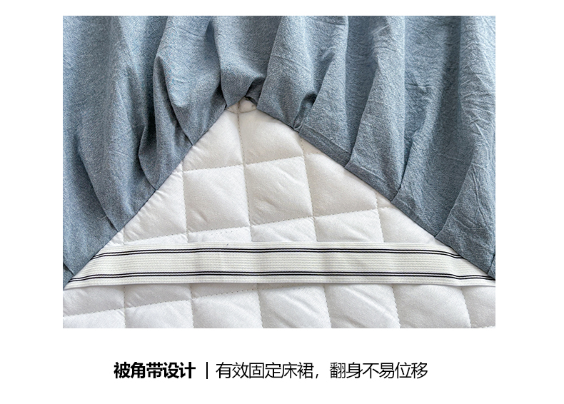 商品名称:糯米猪家纺 2024新款全棉色织水洗棉夹棉床裙 牛仔蓝