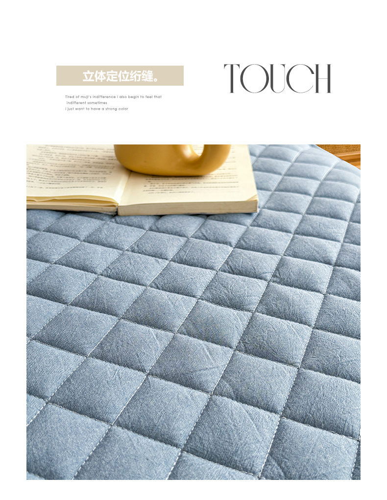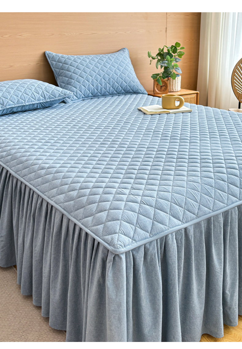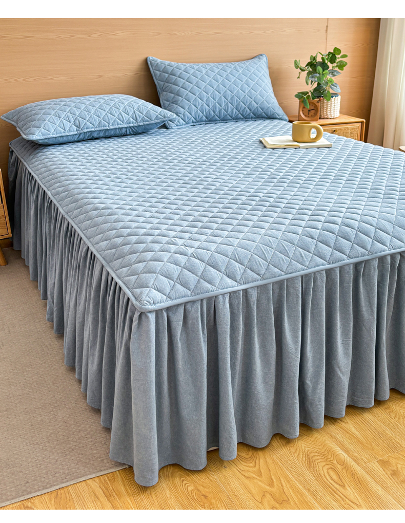 糯米猪家纺 2024新款全棉色织水洗棉夹棉床裙 牛仔蓝