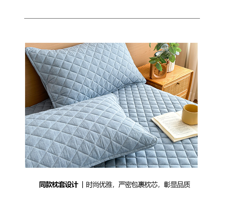(总)糯米猪家纺 2023新款亲肤棉六面全包夹棉床笠--时尚格,水蓝,深蓝,灰色,白色,米色,粉玉
