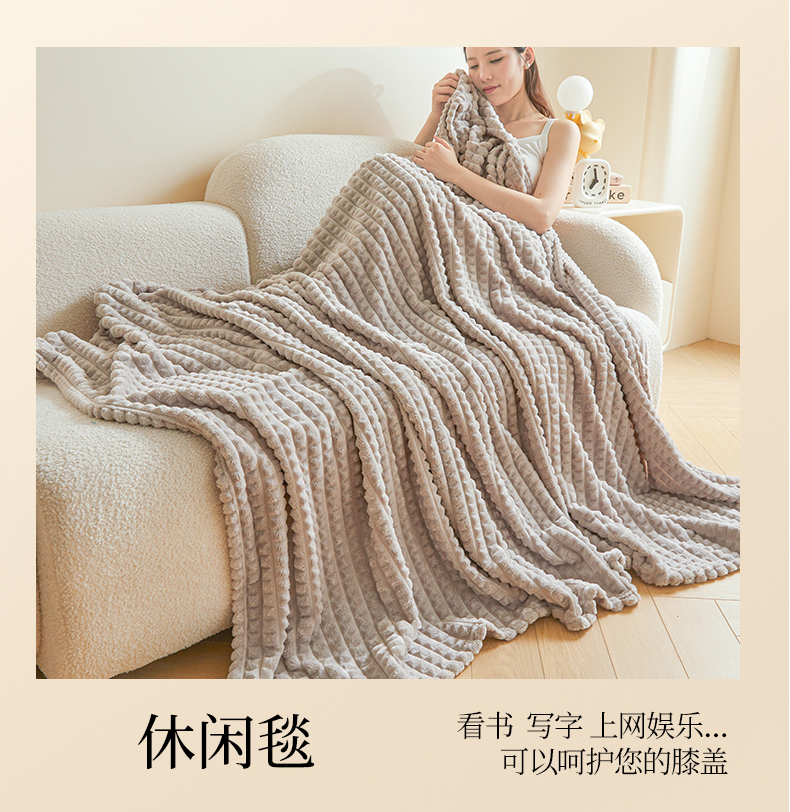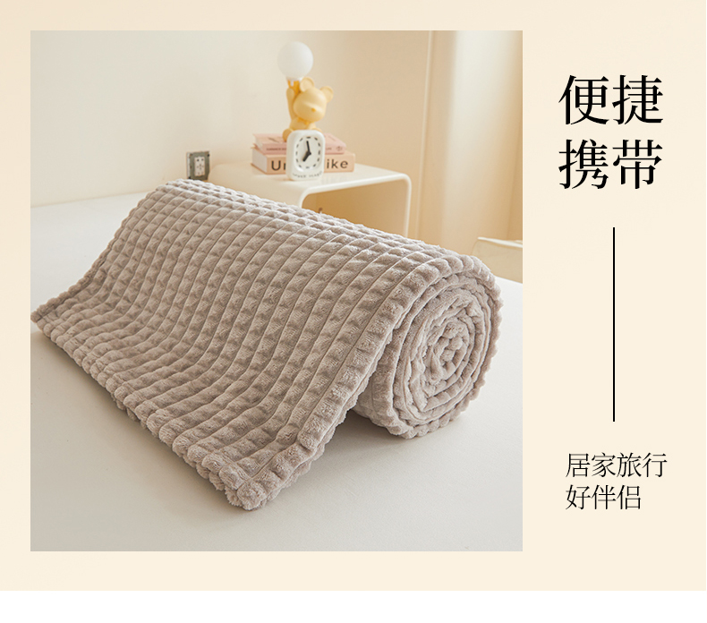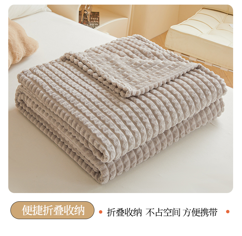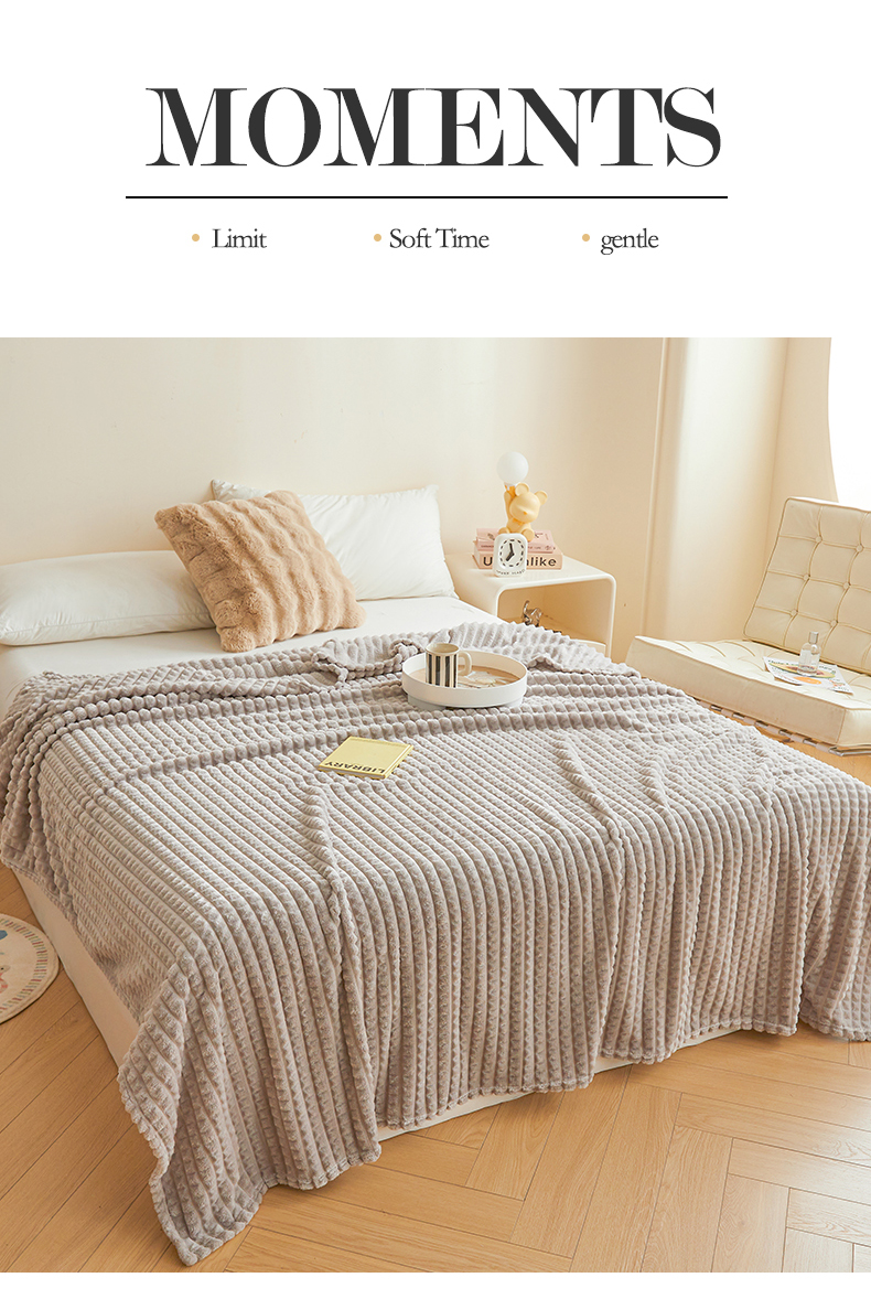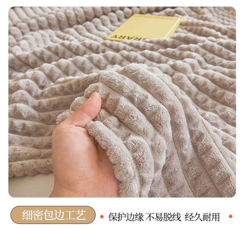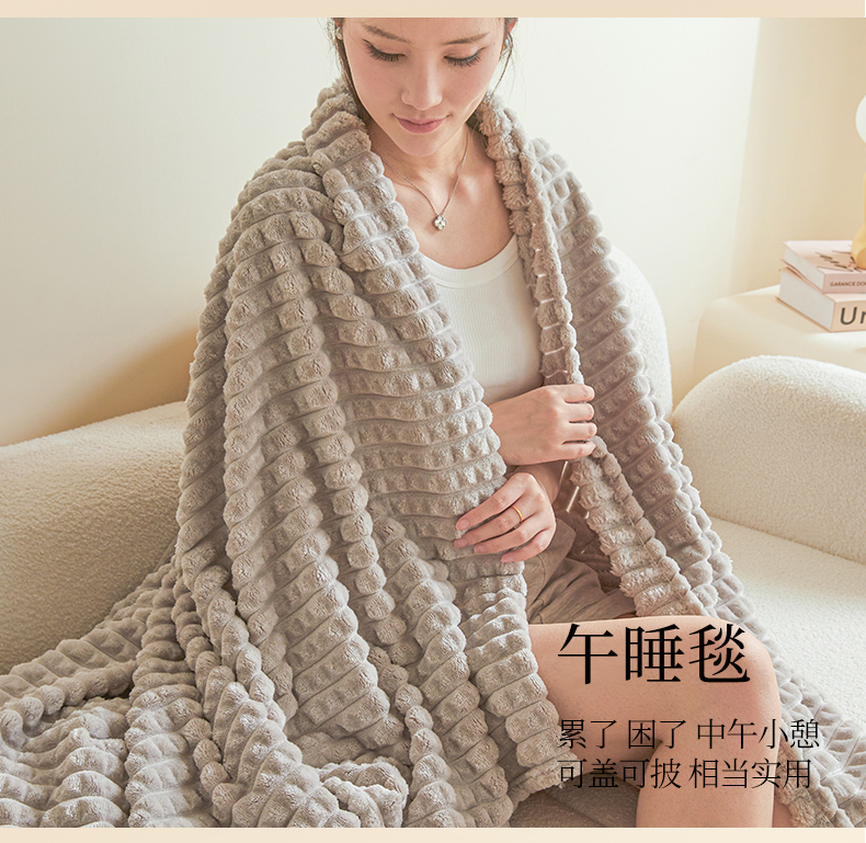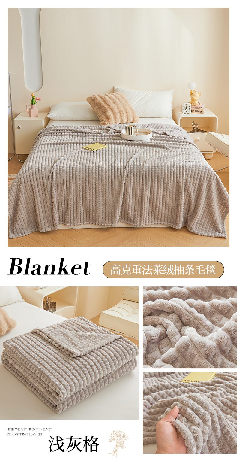 商品名称:予梦家纺 2024新款加厚纯色宽抽条剪花仿兔毛绒牛奶绒法兰绒盖毯(可供跨境) 浅灰格