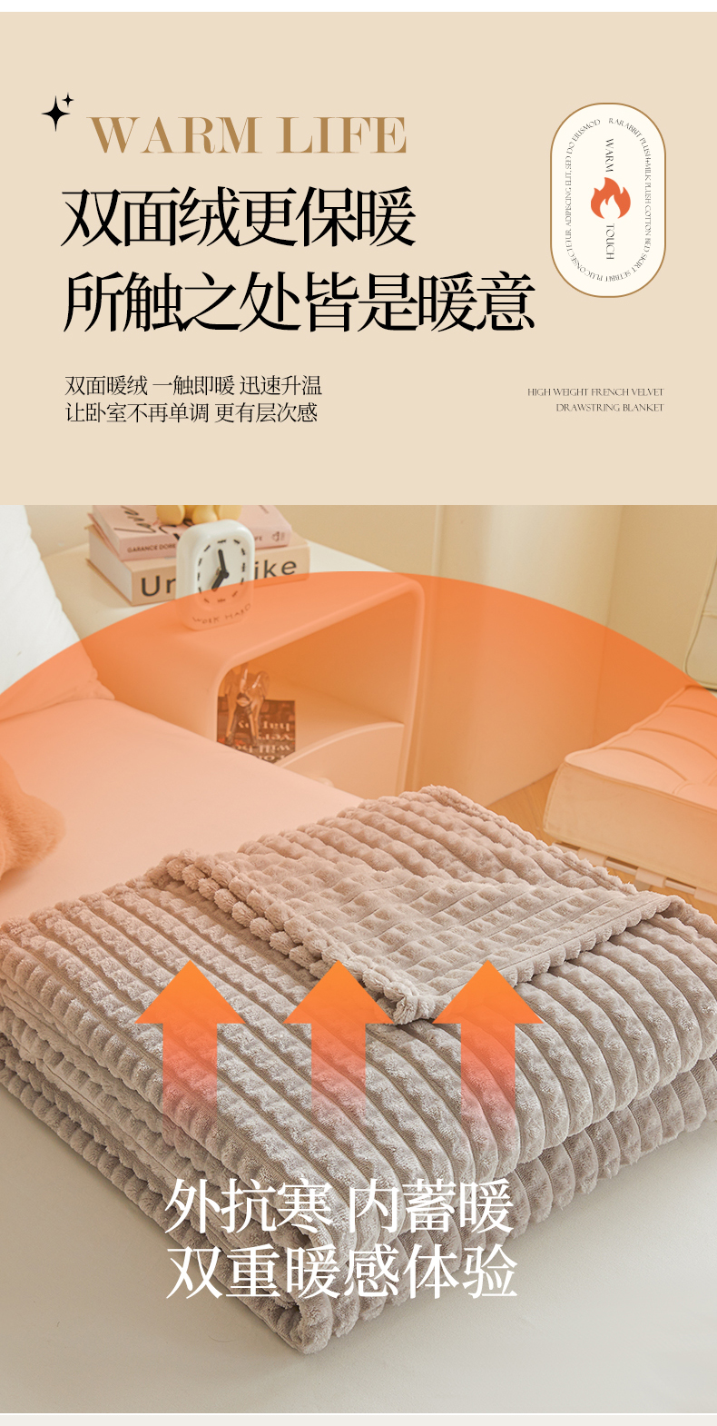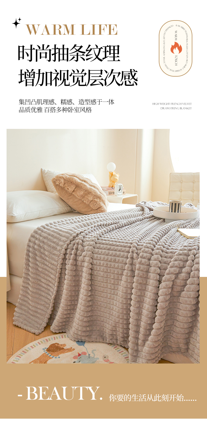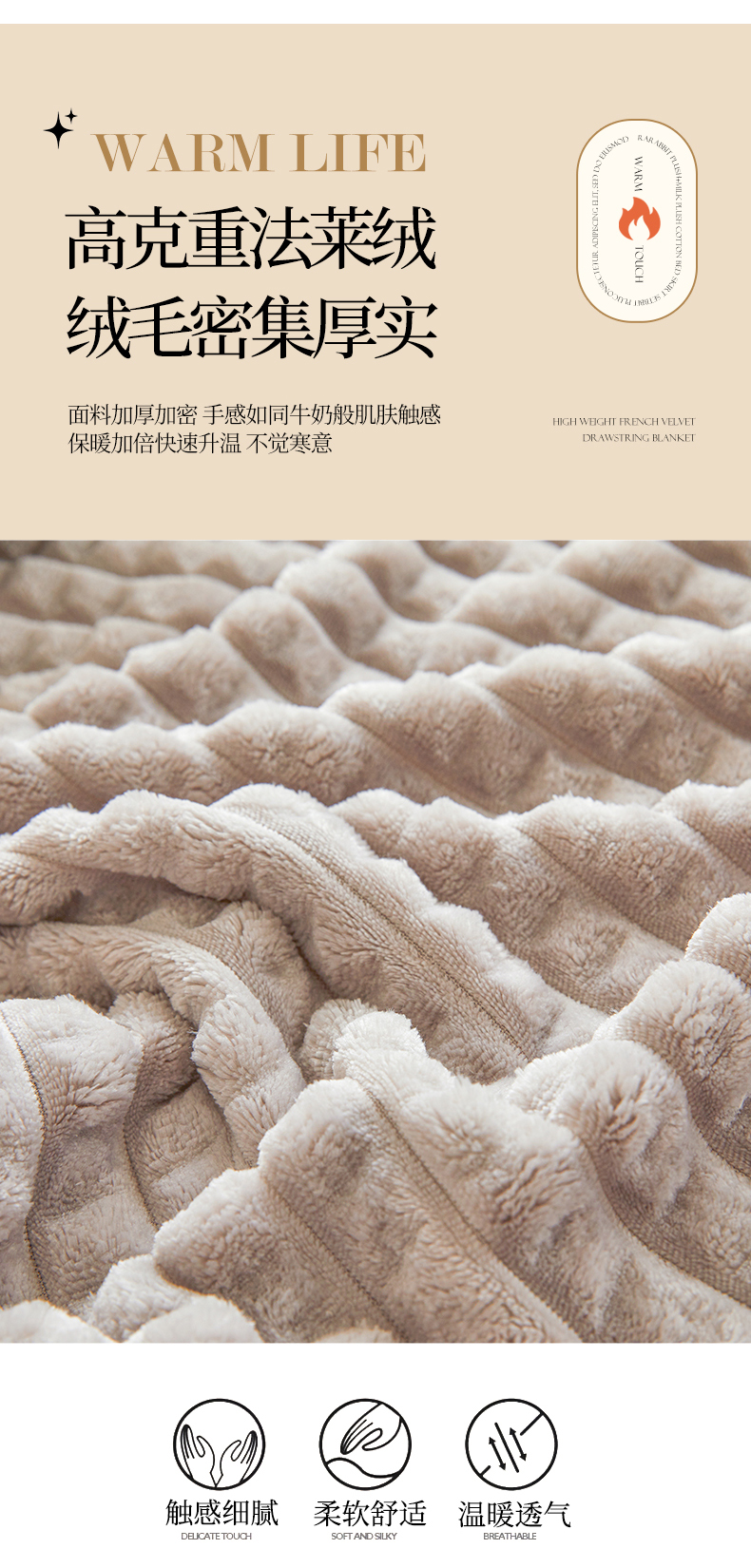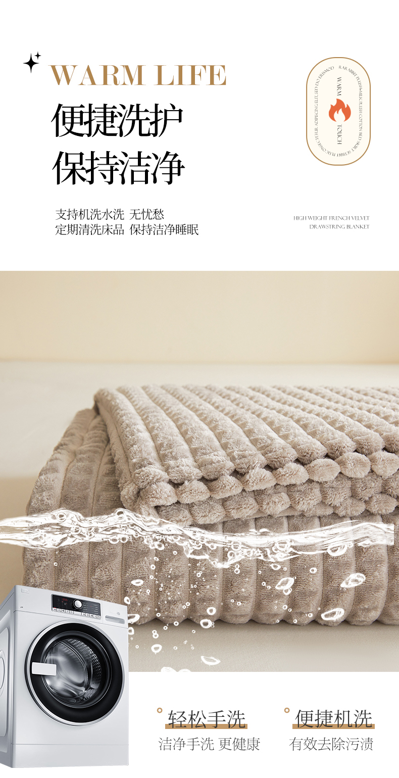 商品名称:予梦家纺 2024新款加厚纯色宽抽条剪花仿兔毛绒牛奶绒法兰绒盖毯(可供跨境) 浅灰格