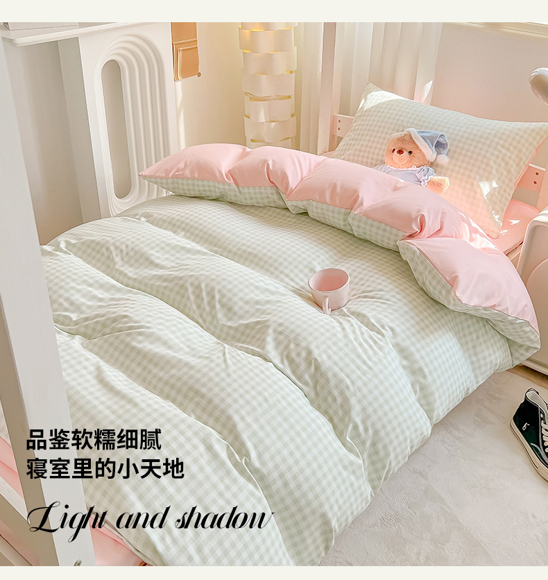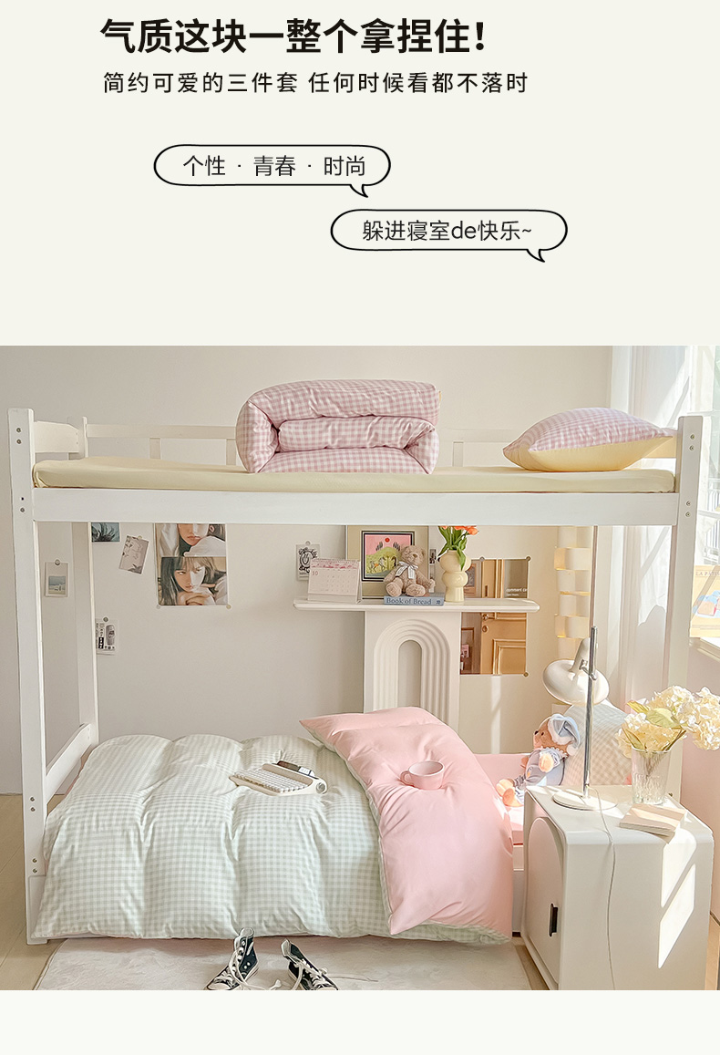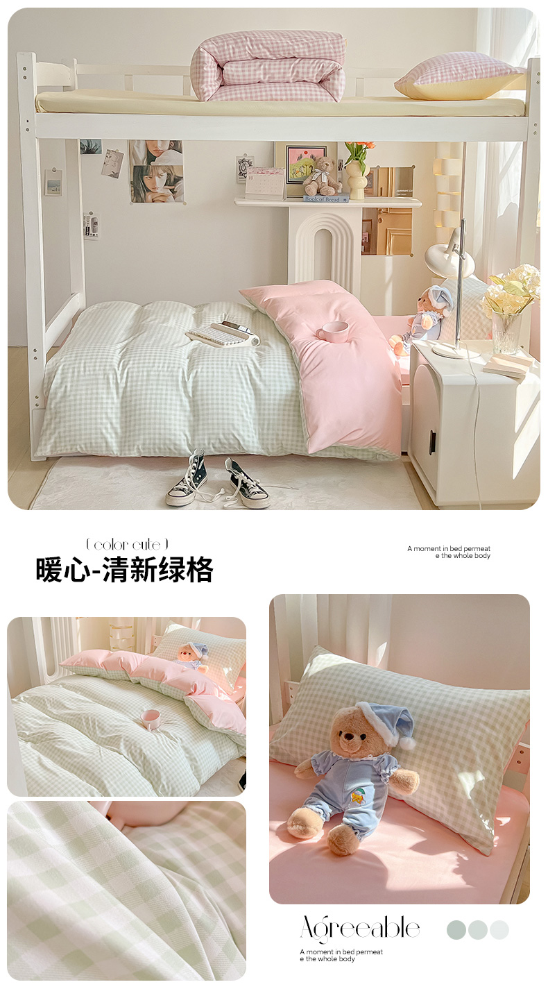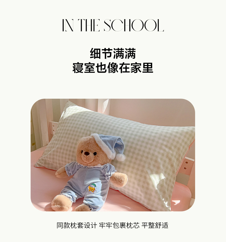 当前位置: 91家纺网 > 商品网购 > 床品套件 > 四件套 > 其它四件套 > 眠帛家居 2024新款A类学生三件套奶油风小清新毛巾绣暖心系列水洗棉床上用品四件套 暖心-清新绿格