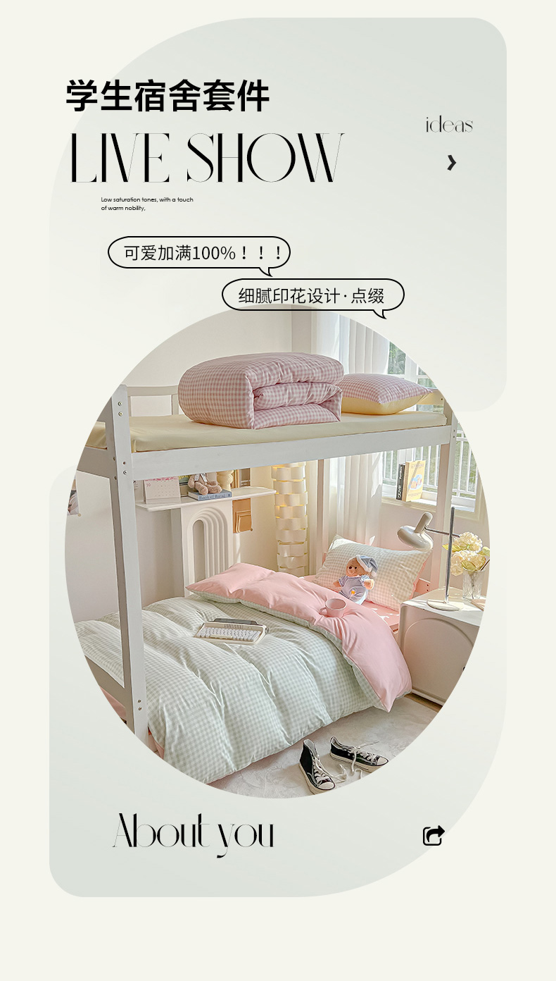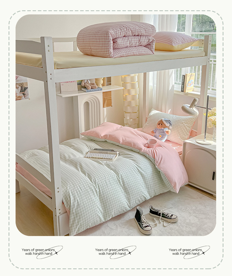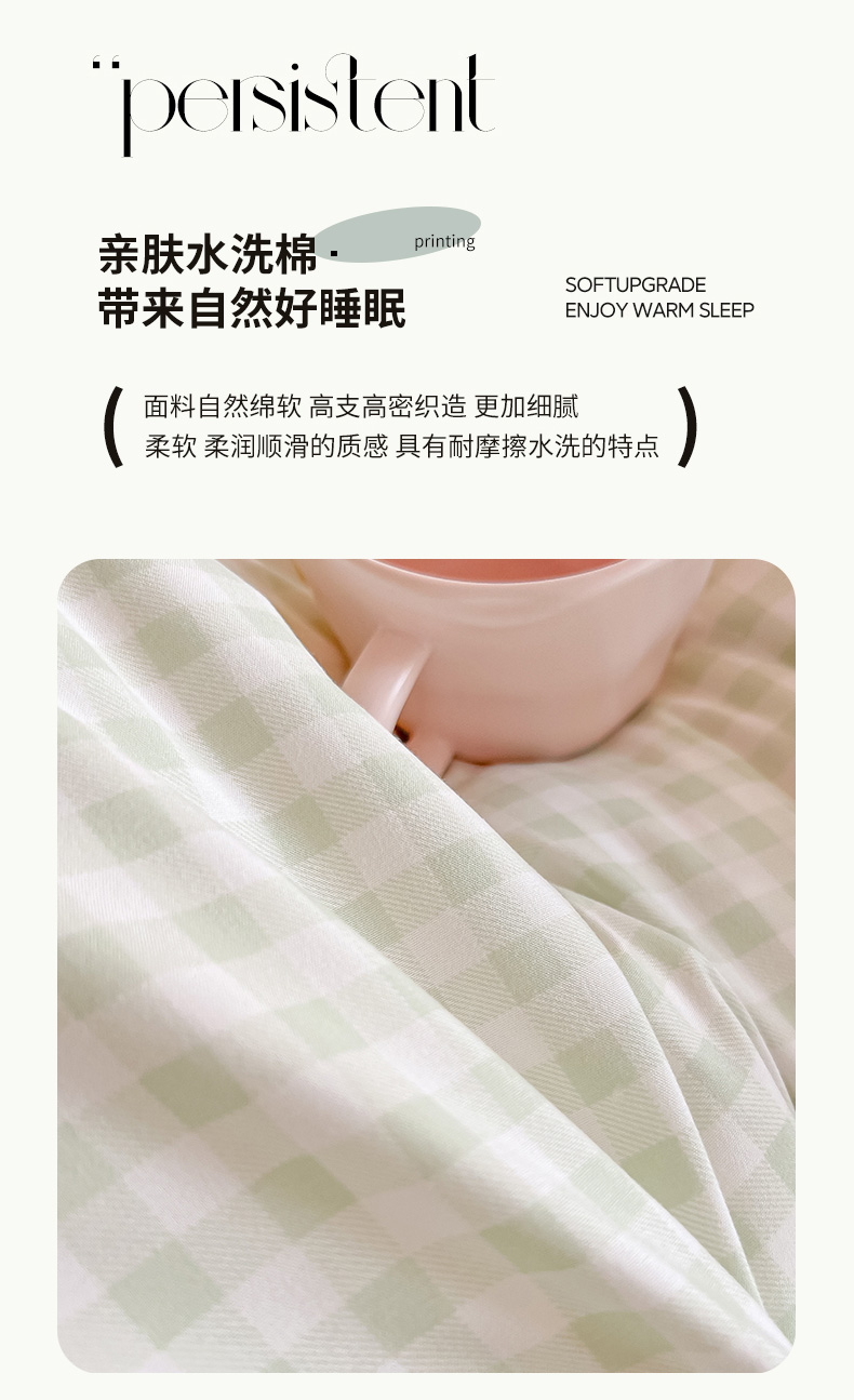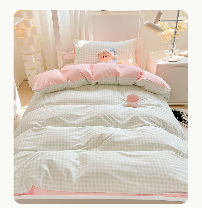 当前位置: 91家纺网 > 商品网购 > 床品套件 > 四件套 > 其它四件套 > 眠帛家居 2024新款A类学生三件套奶油风小清新毛巾绣暖心系列水洗棉床上用品四件套 暖心-清新绿格