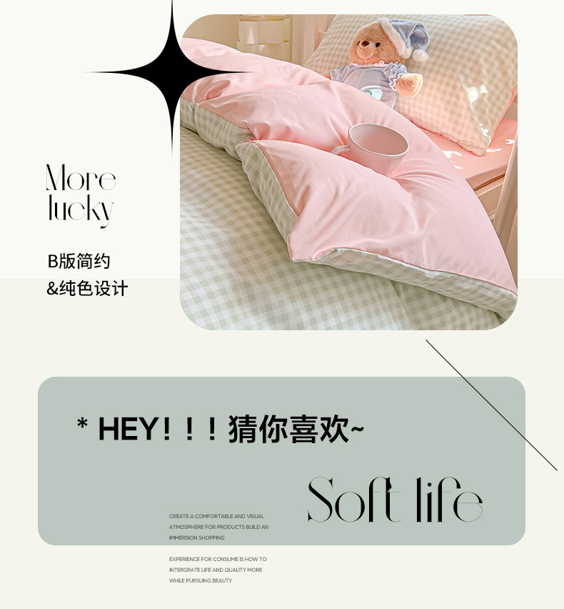 被套200*230 床笠180*200 枕套48*74*2四件套 | ¥55.00 |