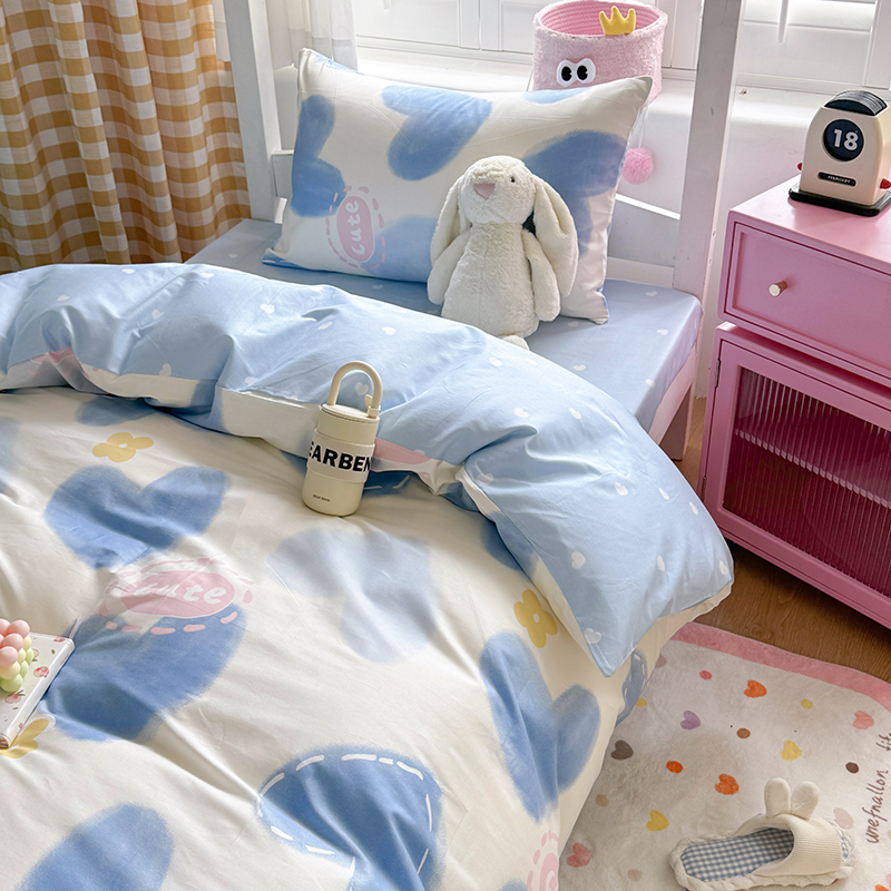 当前位置: 91家纺网 > 商品网购 > 床品套件 > 三件套 > 富瑞阁2024新款13070学生宿舍全棉三件套 爱心蓝