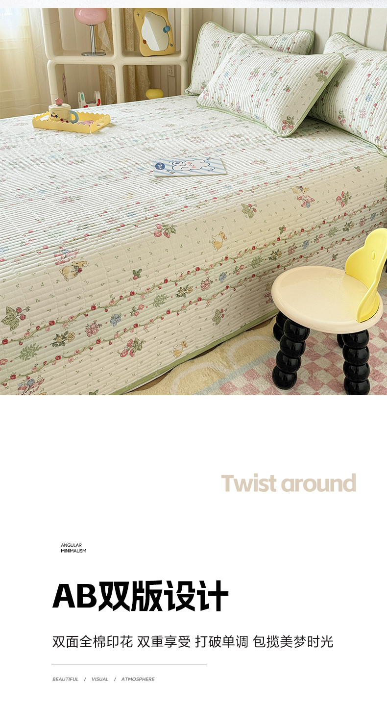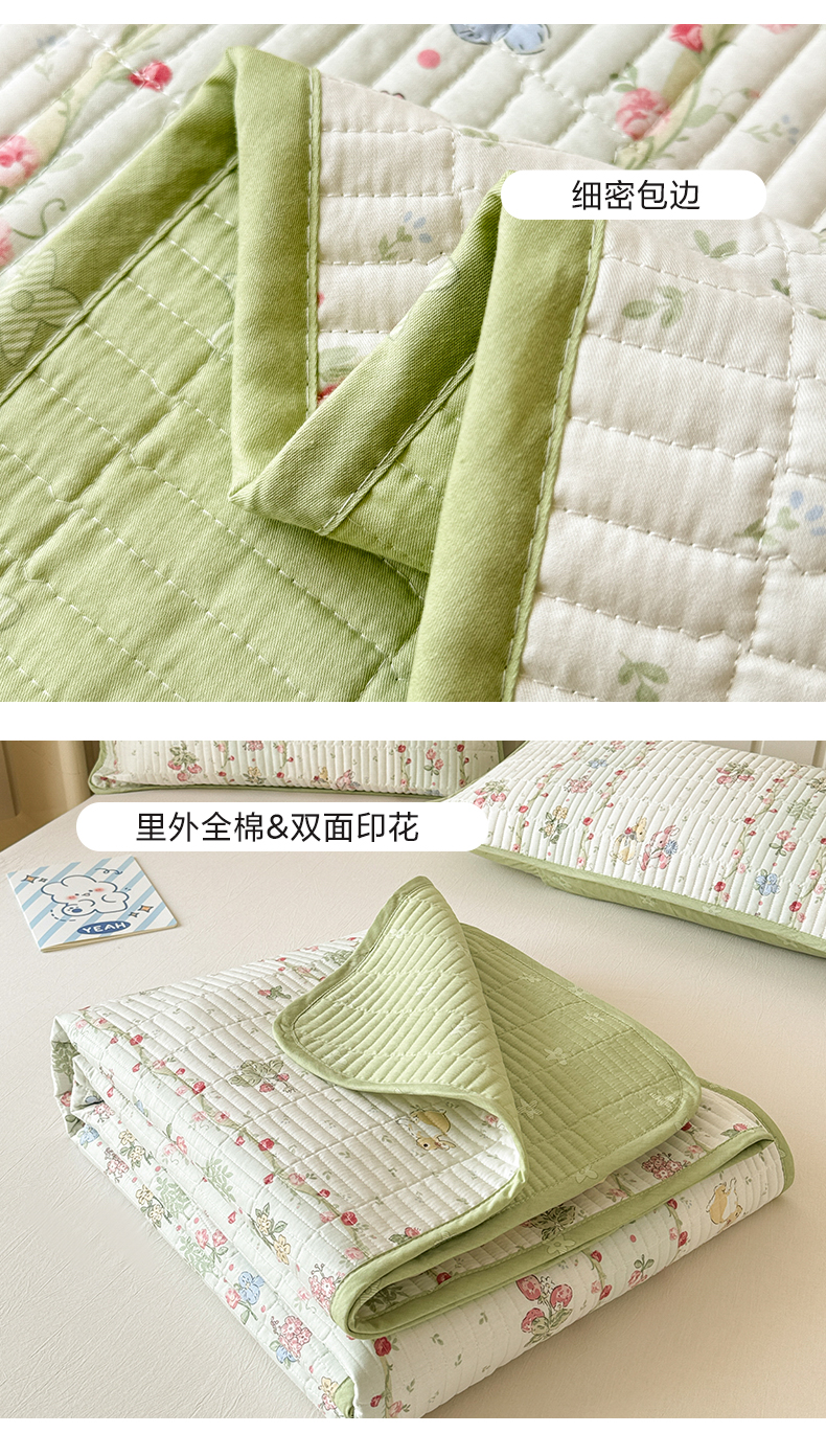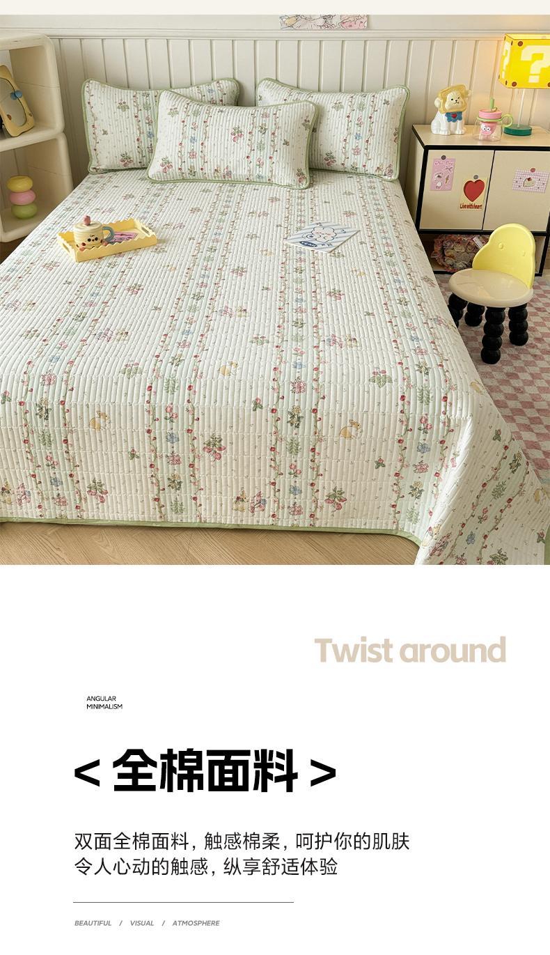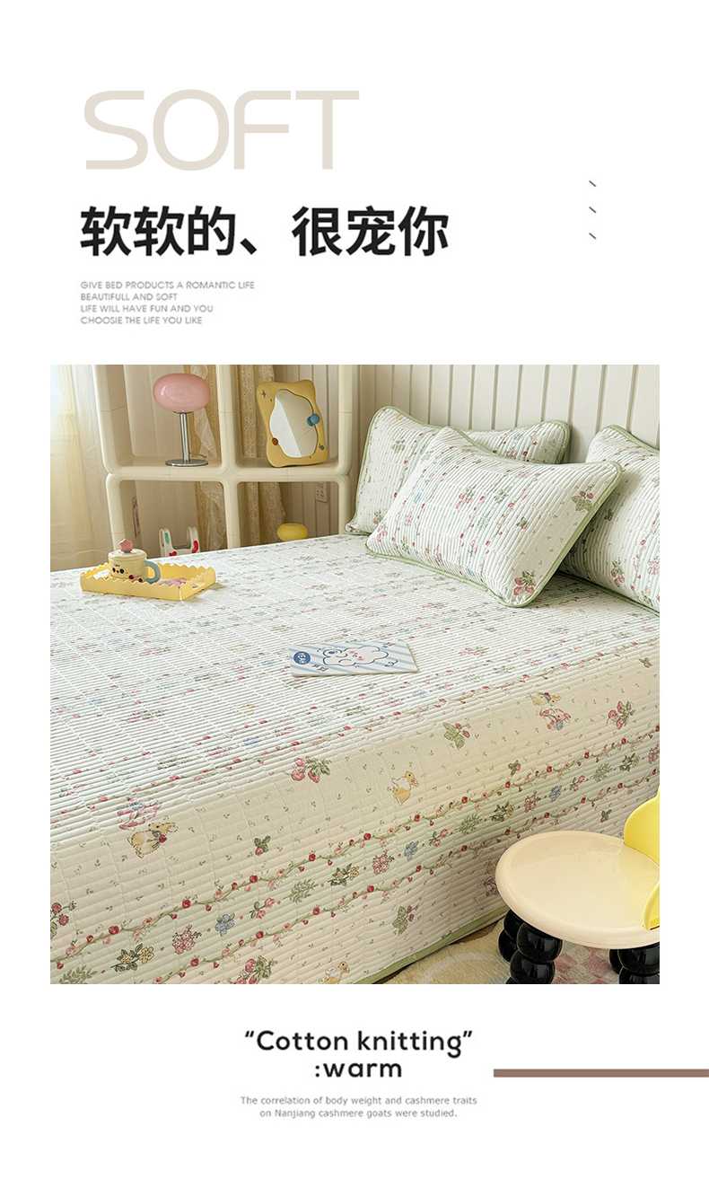 • 91家纺网 家纺一手货源 找家纺 沐辰 2024新款13372正反全棉印花床盖 草莓小兔