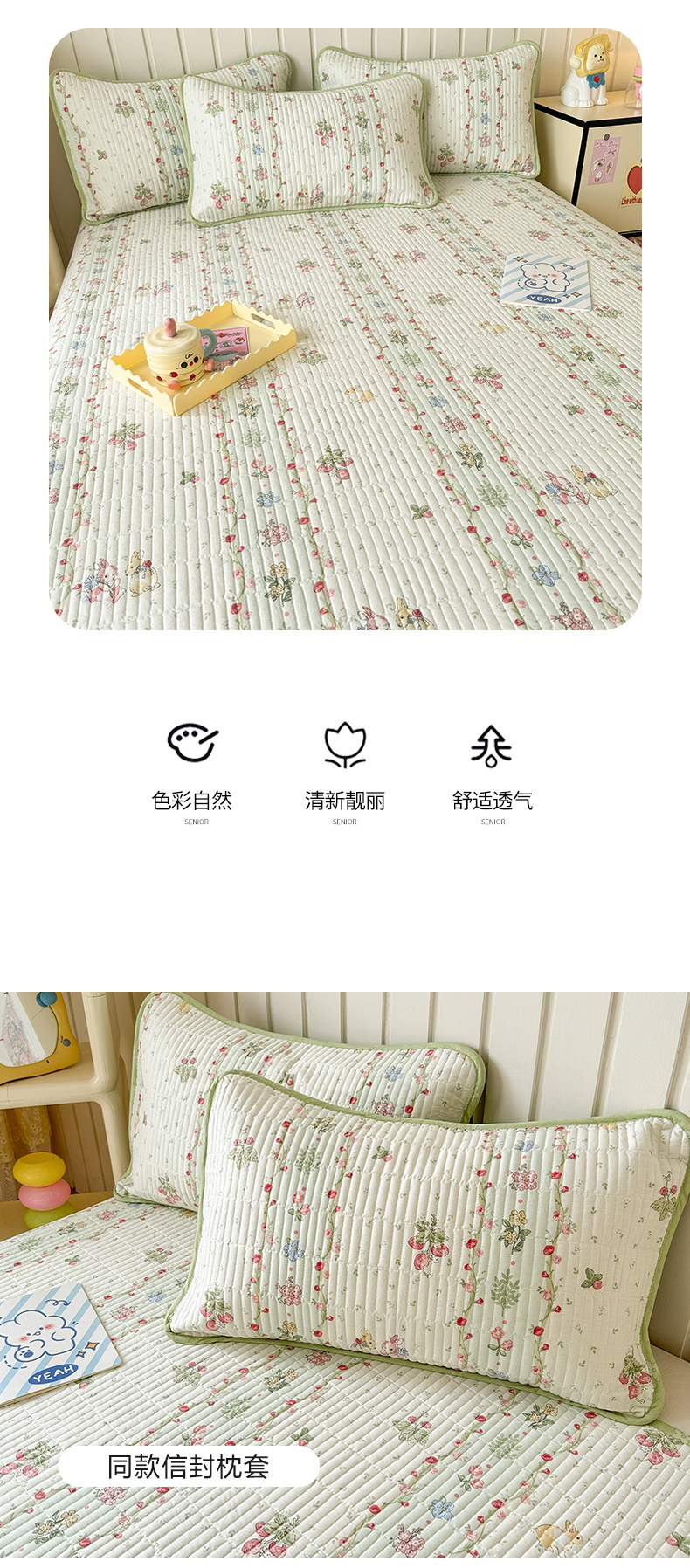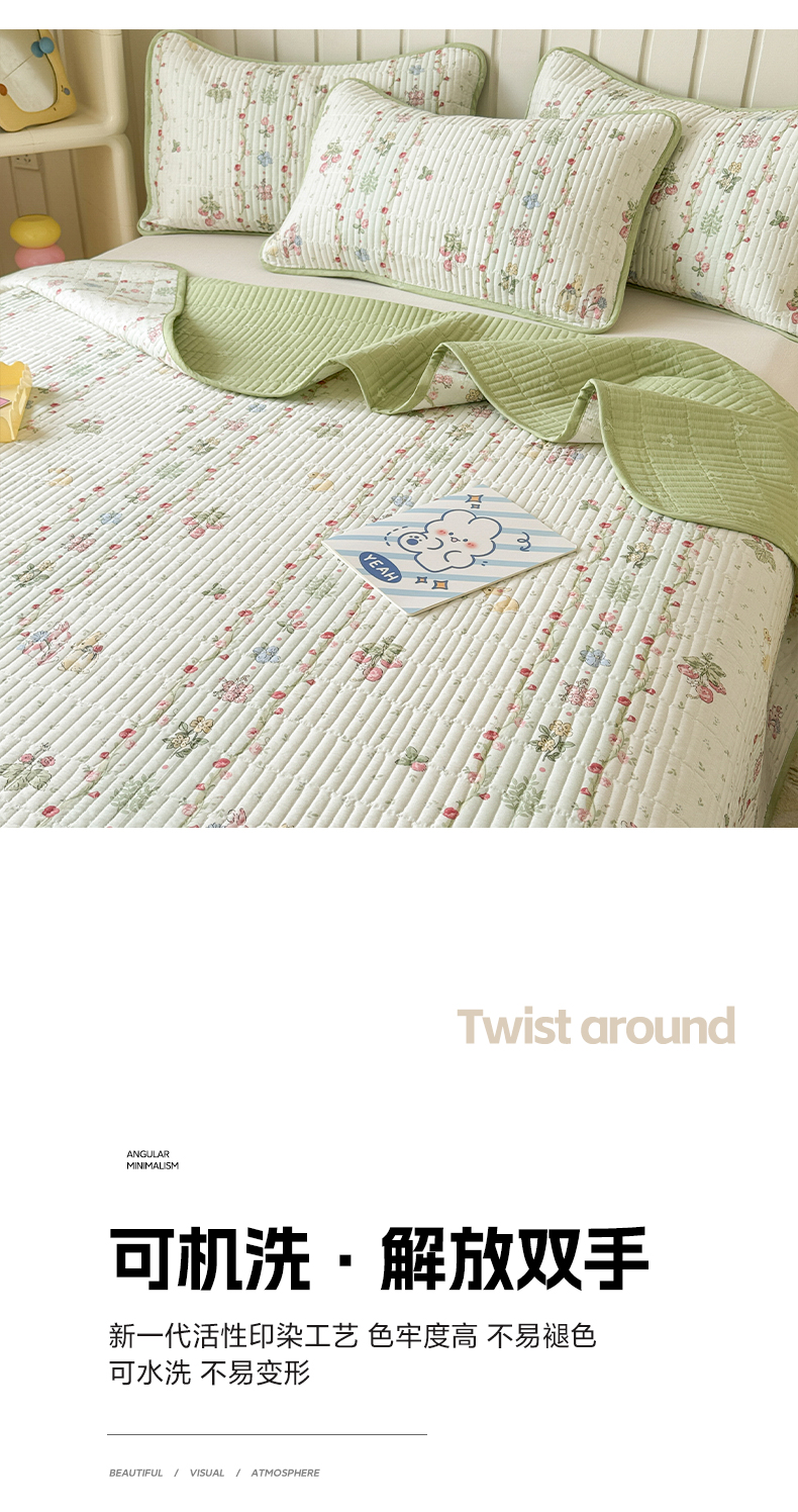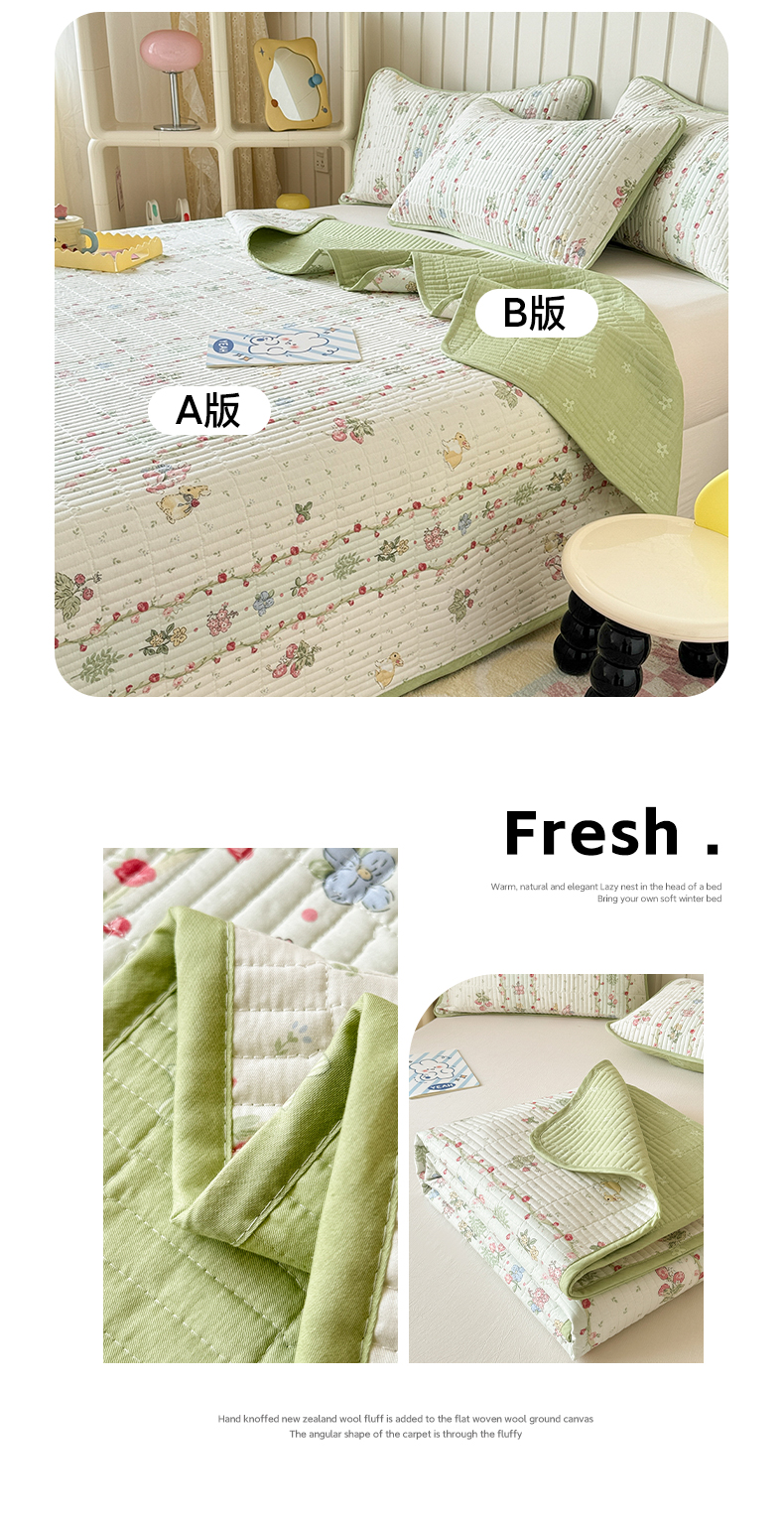 • 91家纺网 家纺一手货源 找家纺 沐辰 2024新款13372正反全棉印花床盖 草莓小兔