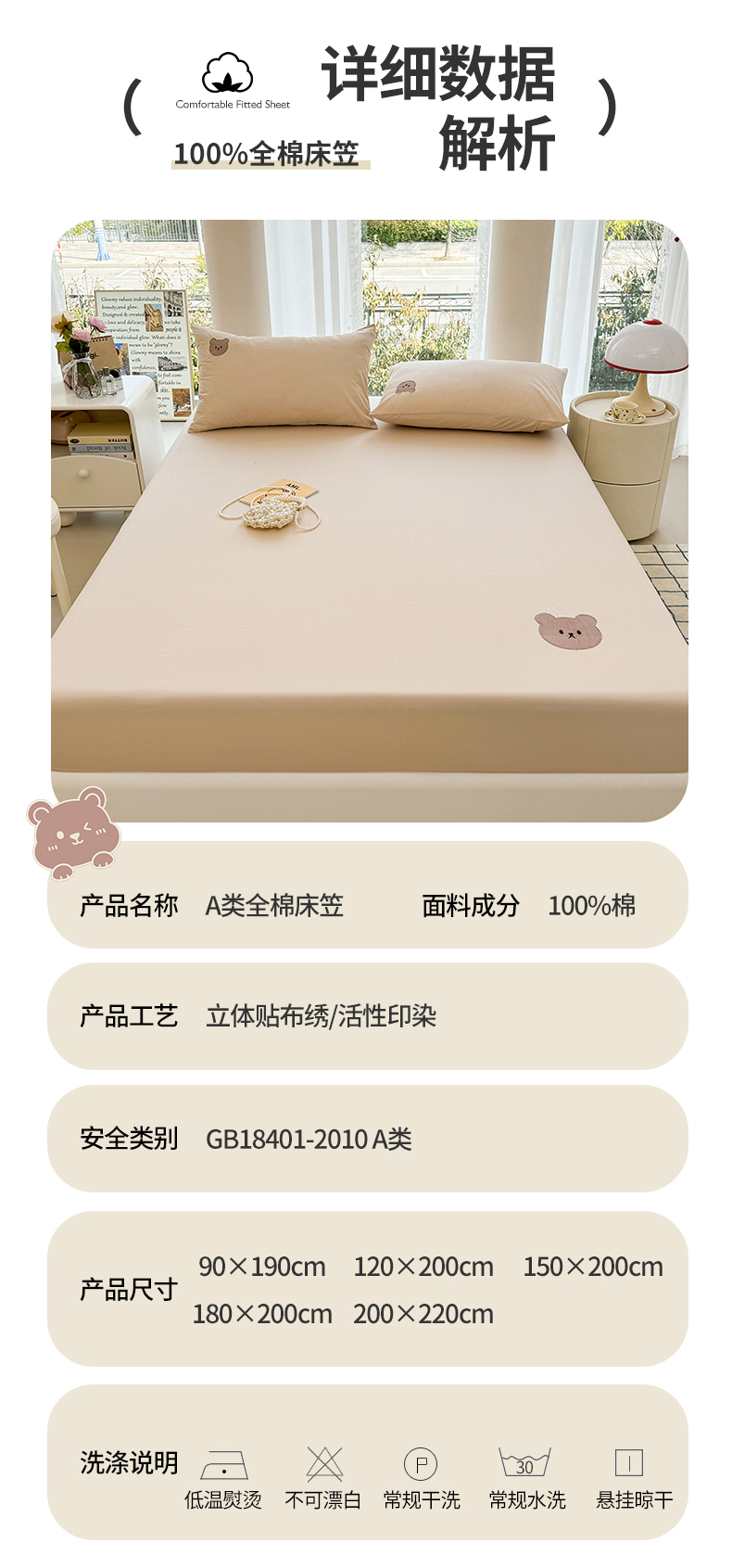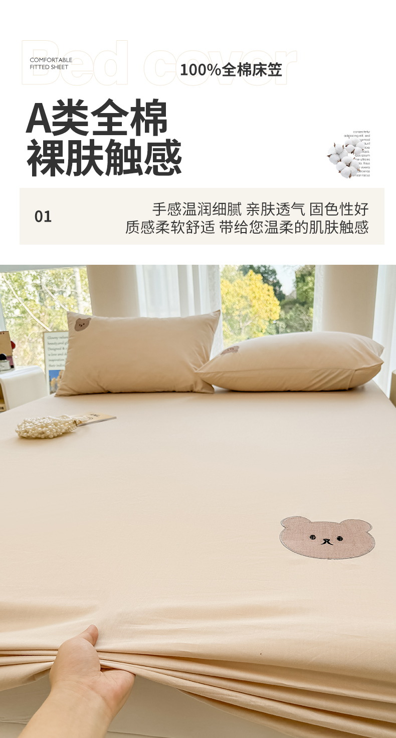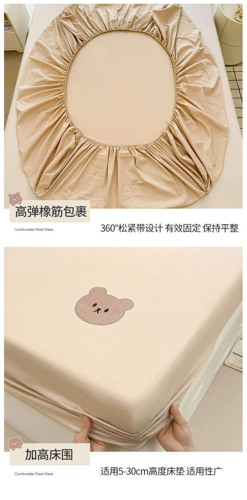 商品名称:居眠 2024新款A类全棉米乐熊单层床笠 米乐熊 卡其