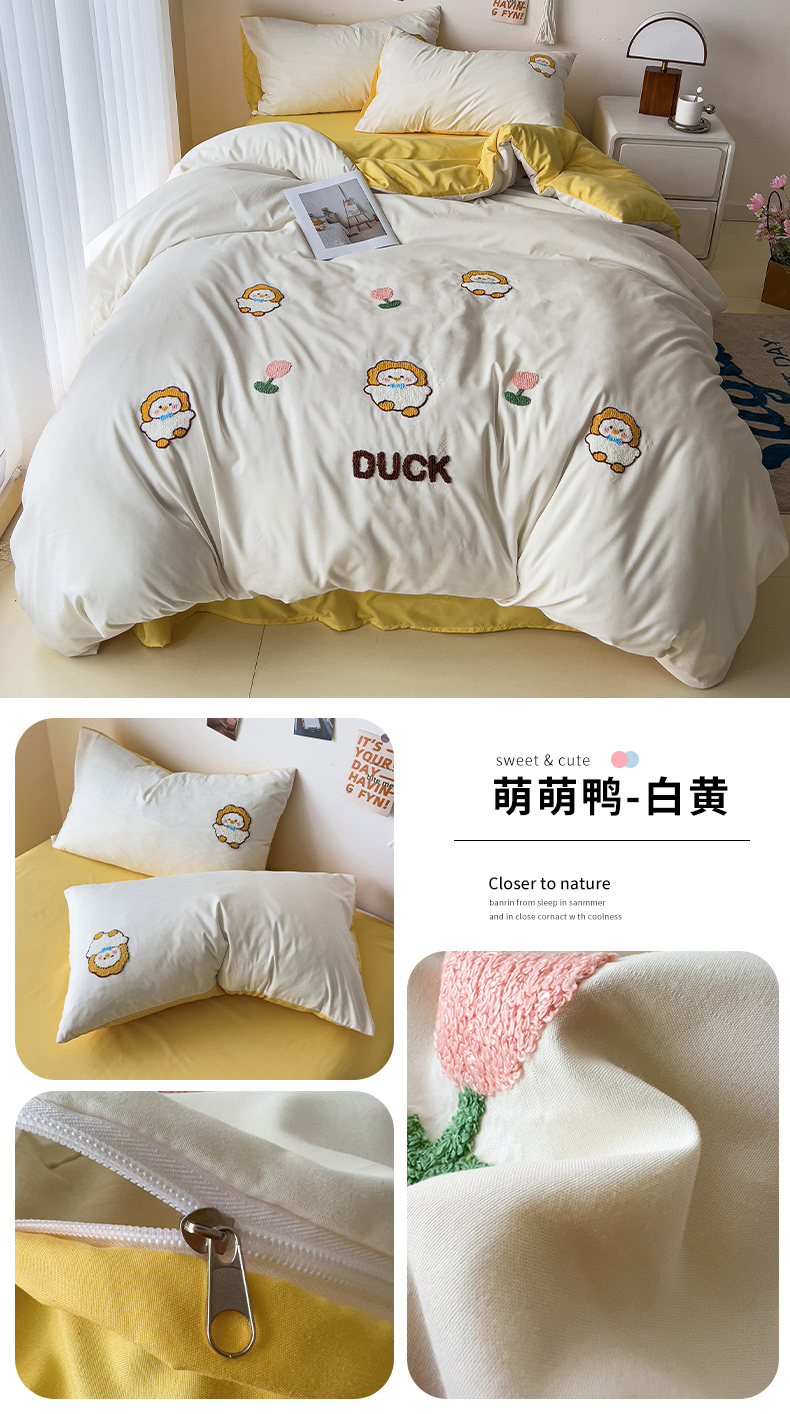 当前位置: 91家纺网 > 商品网购 > 床品套件 > 四件套 > 水洗棉四件套 > 梦之岛 2024新款学生季ins水洗云朵棉可爱毛巾绣四件套 萌萌鸭-白黄