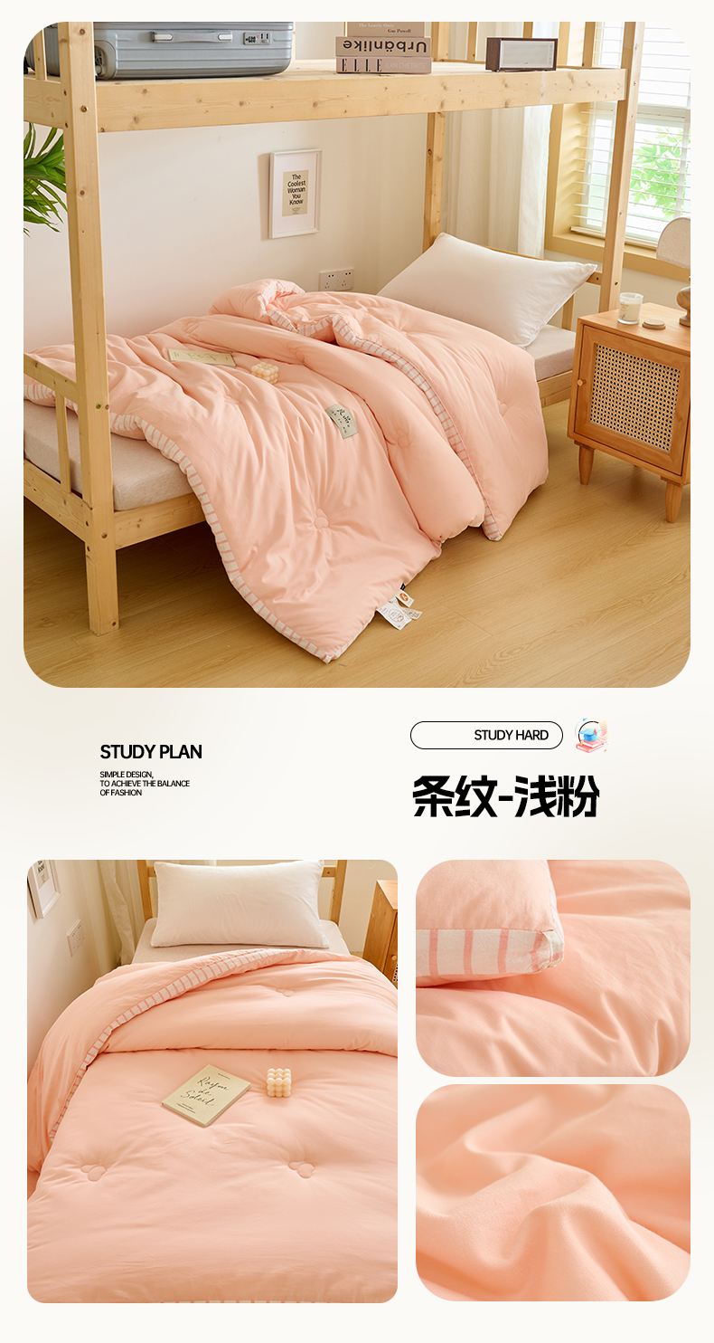 • 91家纺网 家纺一手货源 找家纺 子由家居 2024新款b类简约立体条纹学生季大豆被 条纹-浅粉