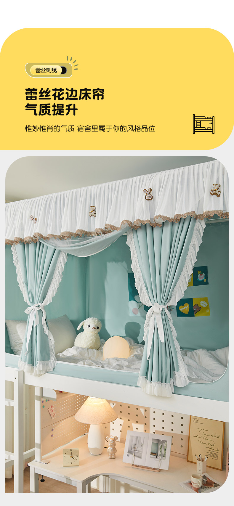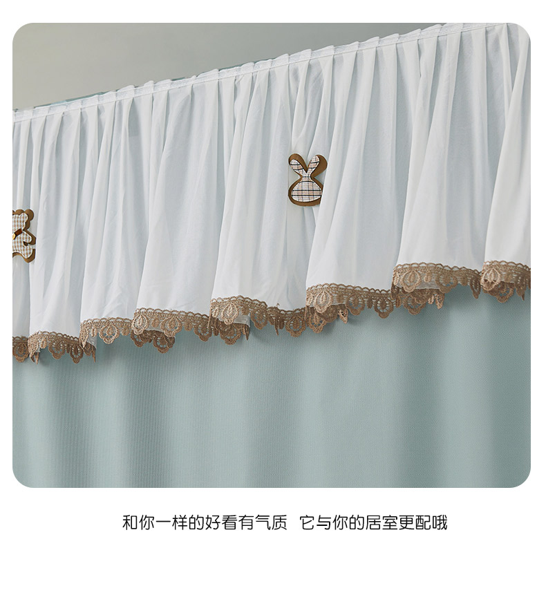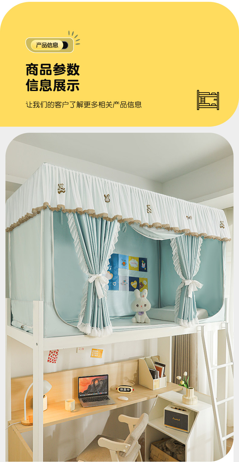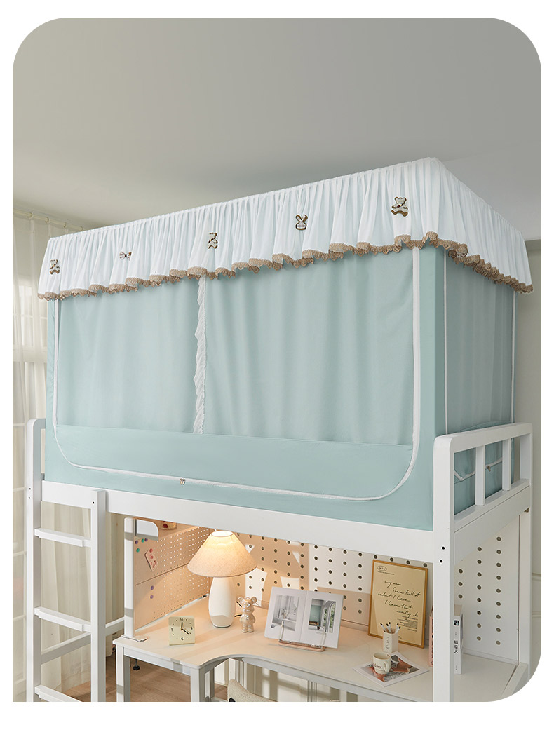 • 91家纺网 家纺一手货源 找家纺 富莱星蚊帐 2024新款新科技植绒翻毛皮水溶花边学生蚊帐强遮光上下铺 水溶边-浅兰