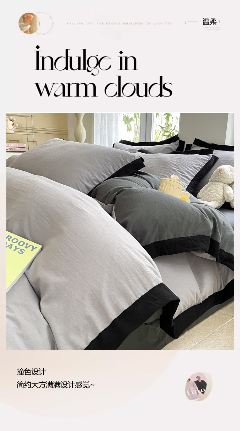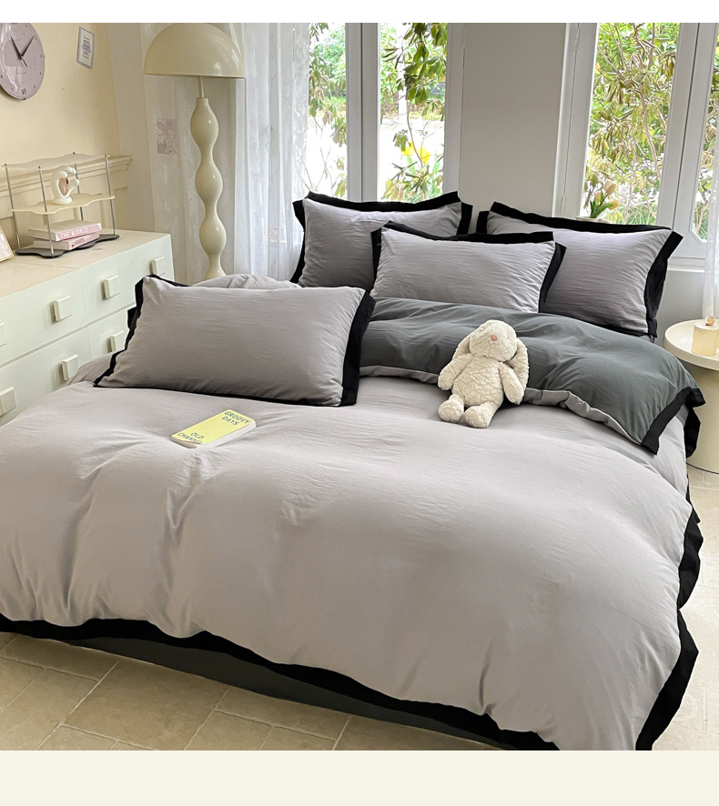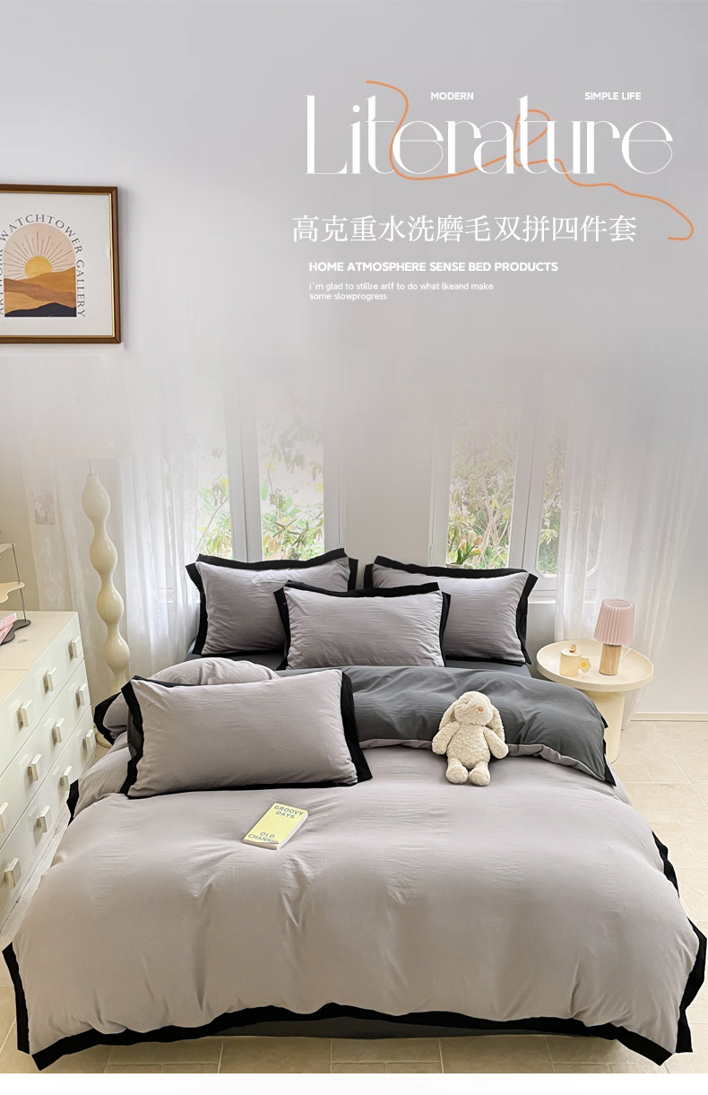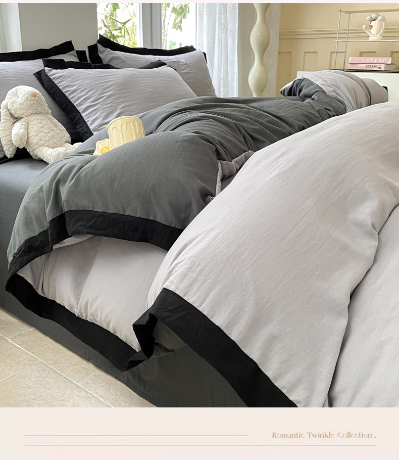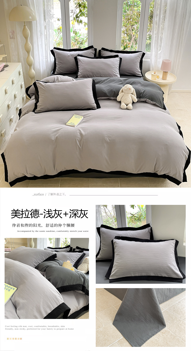 商品名称:慕澄家纺 2024新款美拉德风双拼四件套 美拉德-浅灰+深灰
