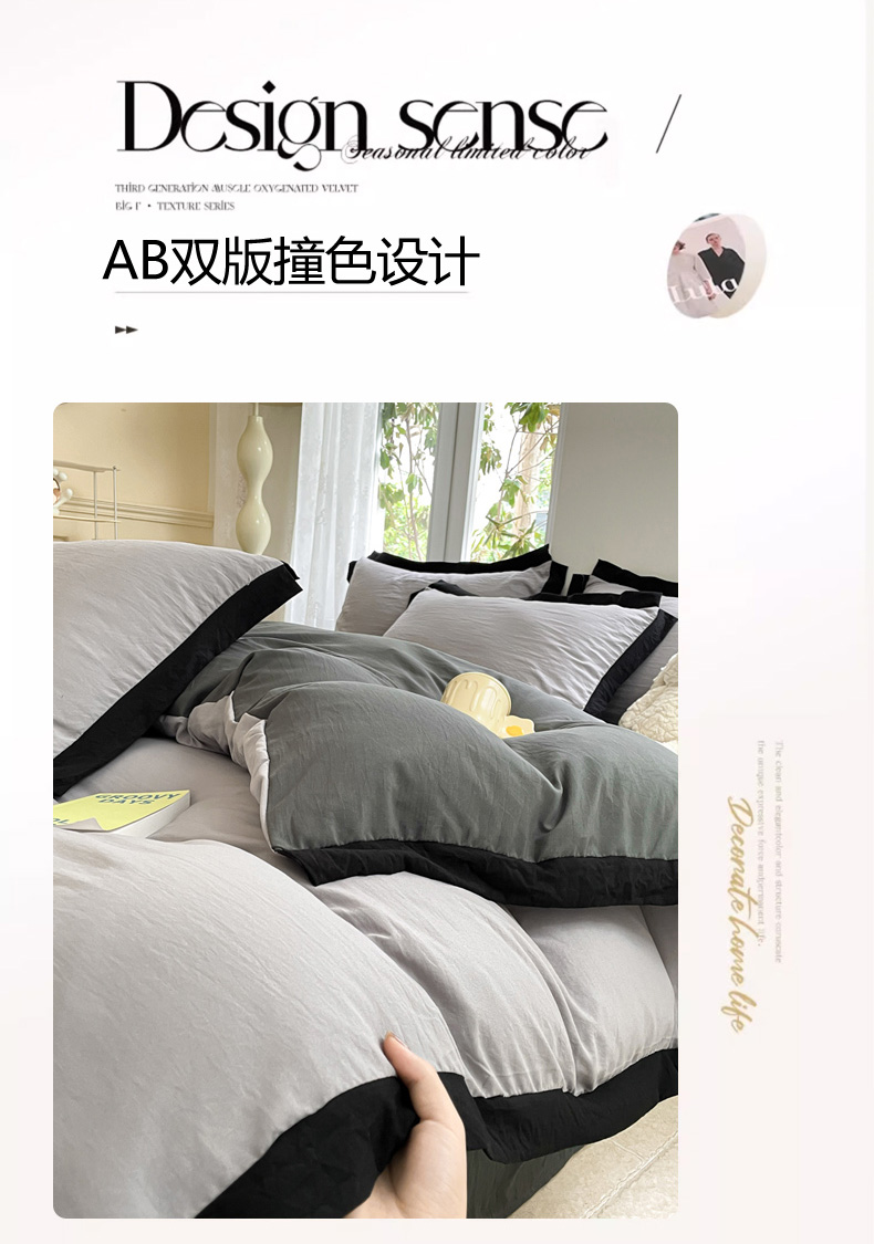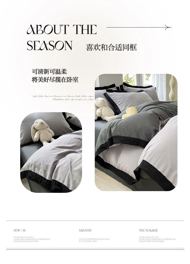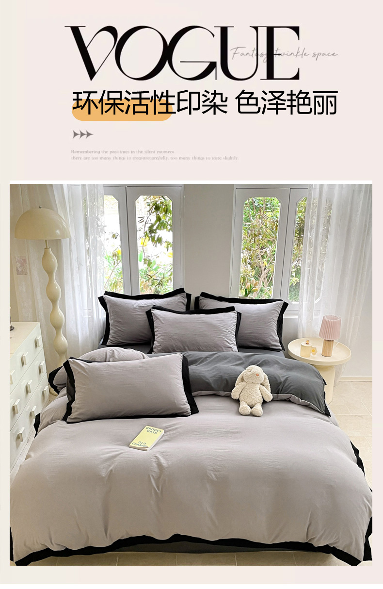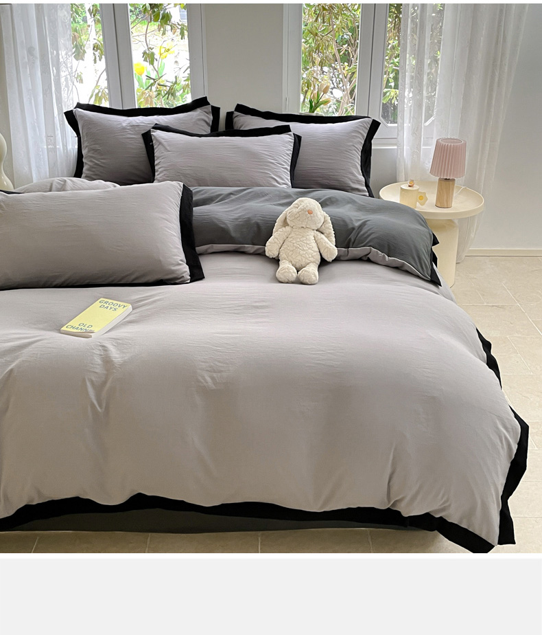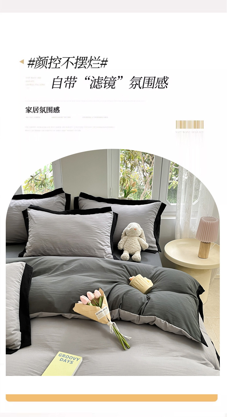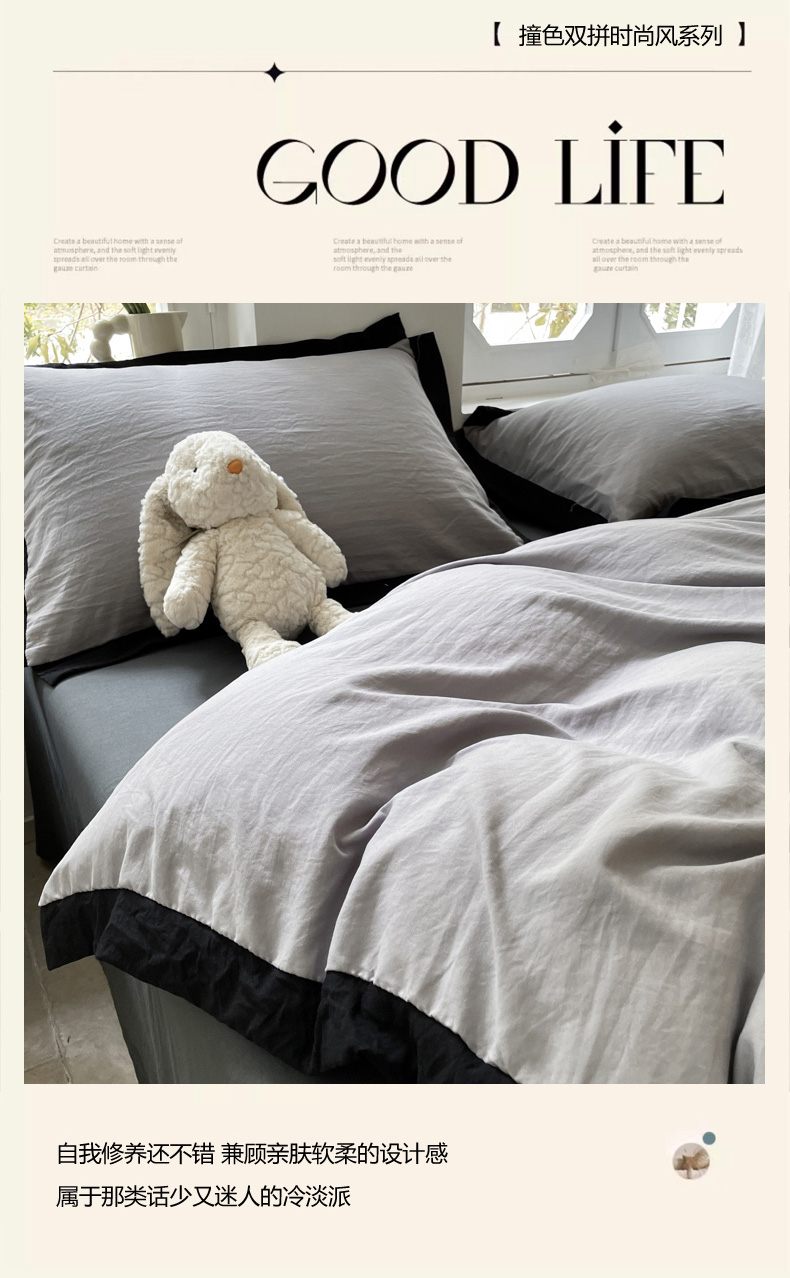 商品名称:慕澄家纺 2024新款美拉德风双拼四件套 美拉德-浅灰+深灰