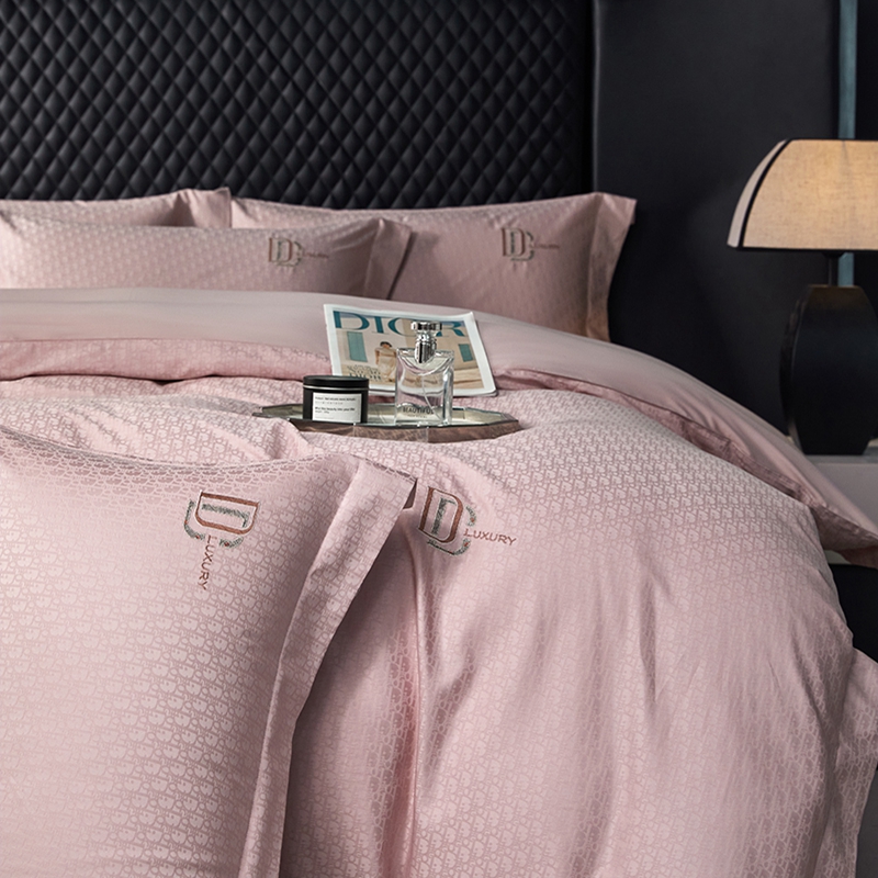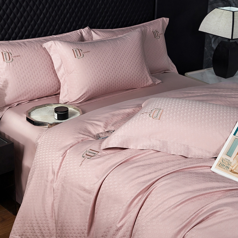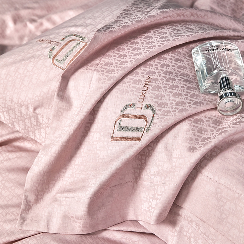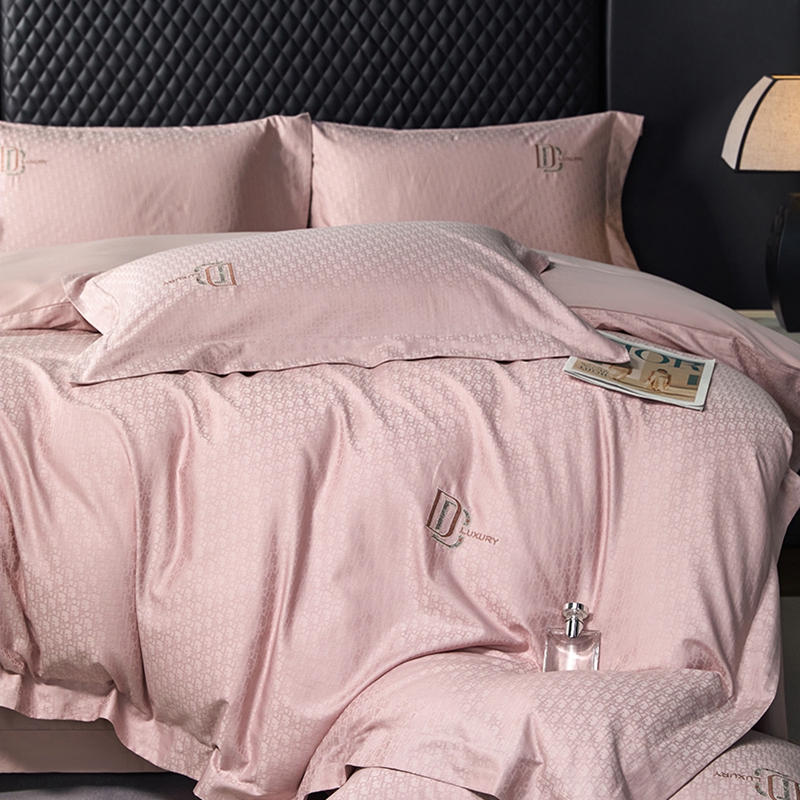 淳绵家居 2024新款50*50S双股长绒棉提花刺绣四件套 巴洛克-豆沙粉