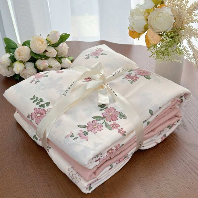 商品名称:(总)2025新款全棉A类小清新双层纱四件套-系列四