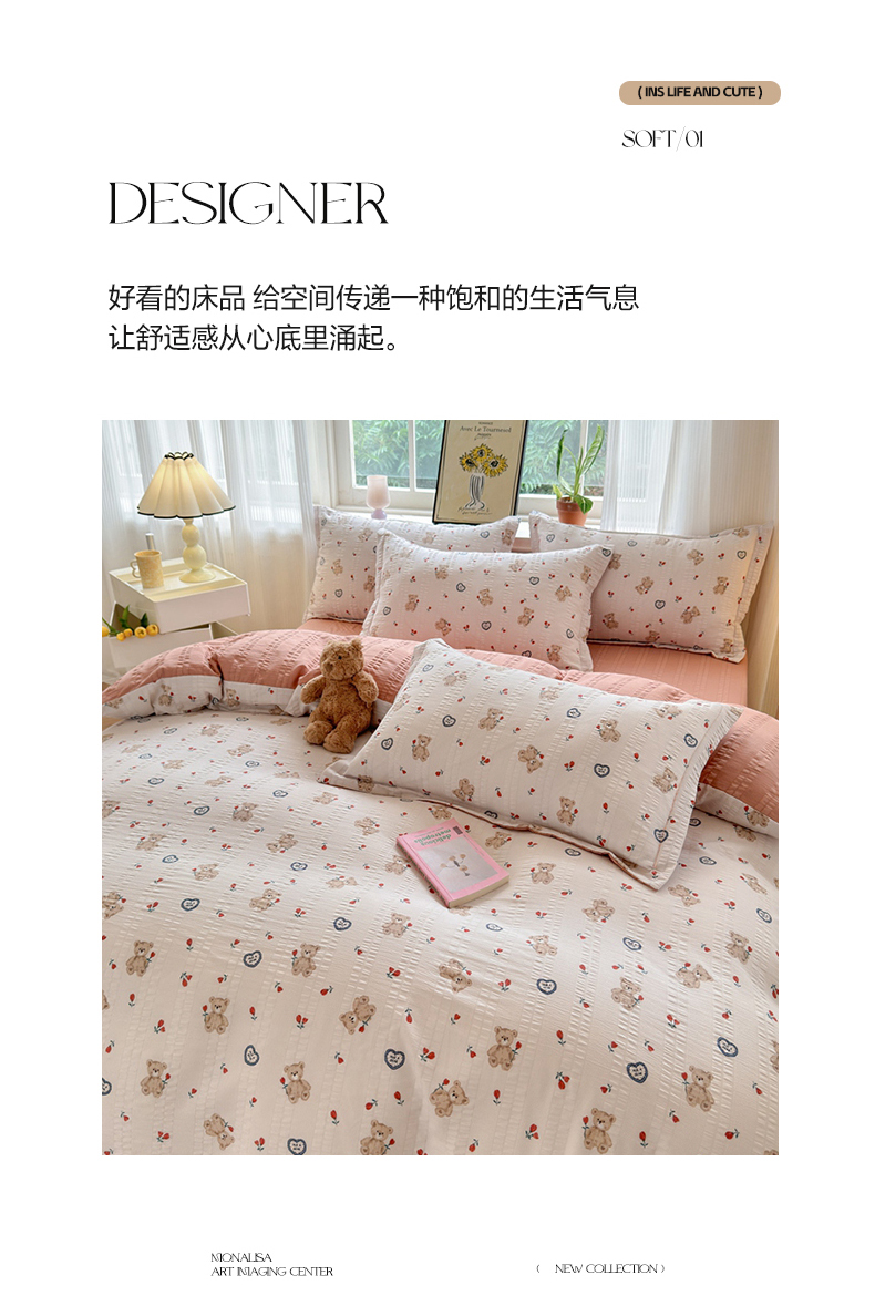 (总)席佬大 2025新款韩版白色花边系列牛奶绒四件套,爱心小熊-粉,法风小香,盛夏从林,晕染花曳-粉,艾莎粉,安妮粉,蝶恋花粉,时尚巴黎,邂逅,郁金香蓝