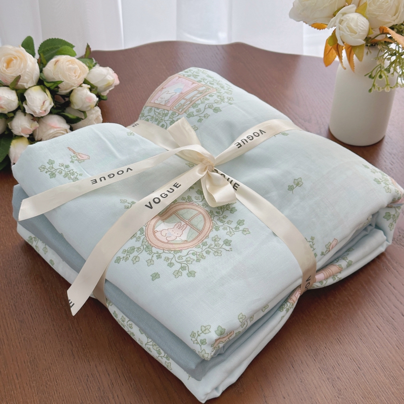 (总)黛馨 2025春夏新款全棉纯棉A类双层纱工艺款夏被夏凉被空调被四件套皱皱边款,白茶,薄荷初夏,春日女孩,花语,蓝风铃,猫的下午茶,梦花谷,奶油樱桃,晴天,晚香玉,熊孩子,紫萱