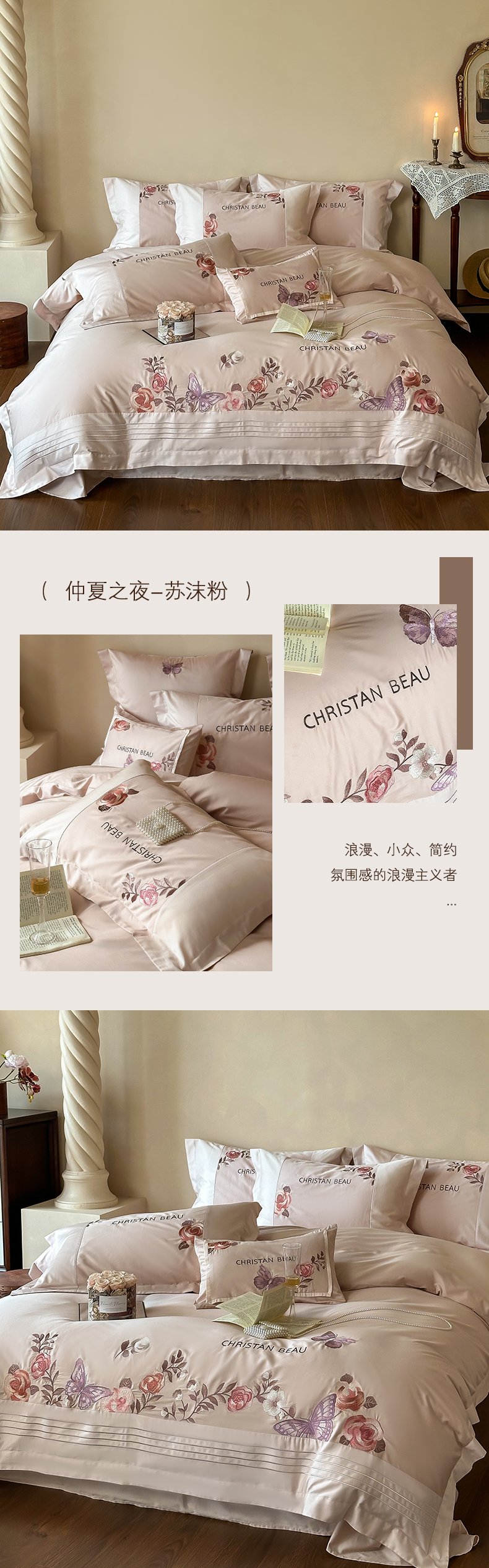 云栖家居 2024全棉刺绣四件套-仲夏之夜 仲夏之夜-苏沫粉