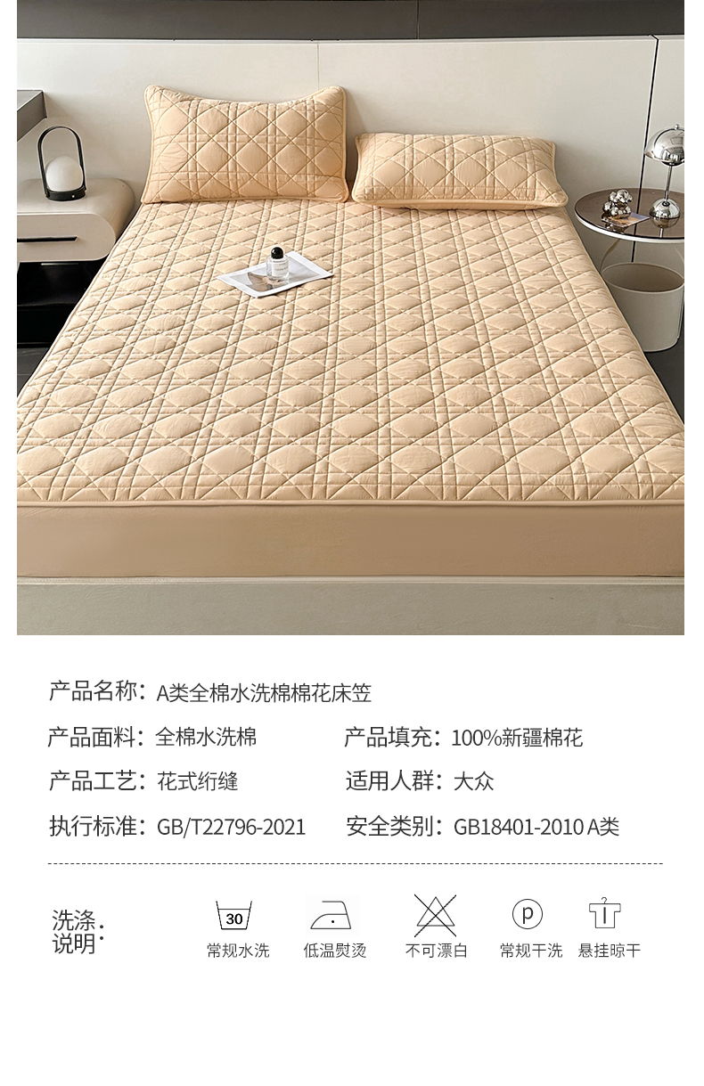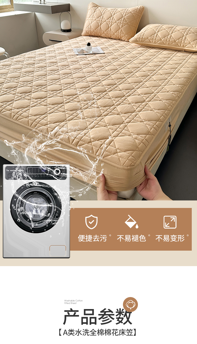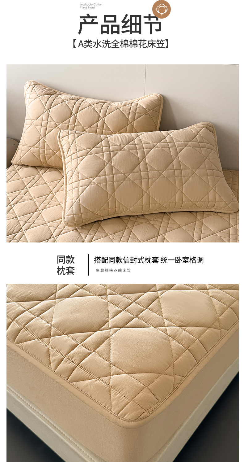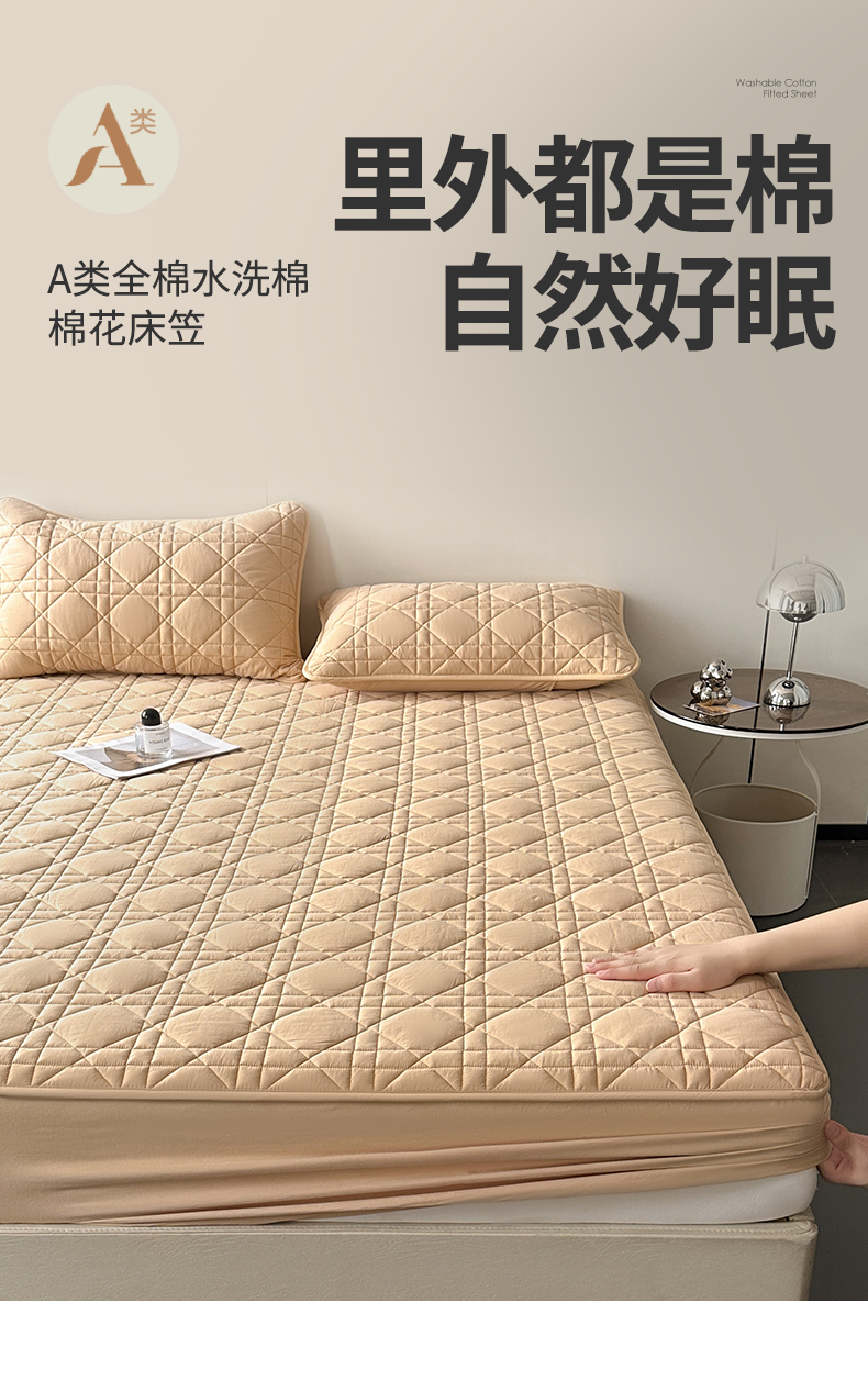 3C 2024新款A类全棉水洗棉棉花床笠 米驼色-