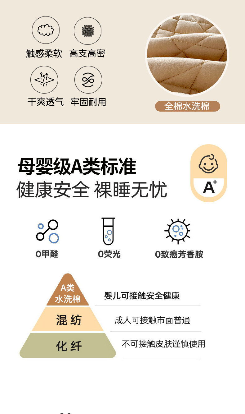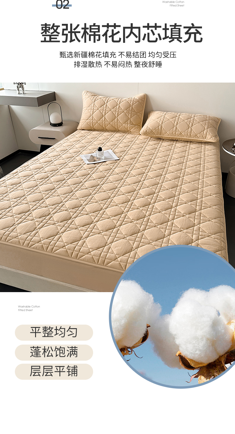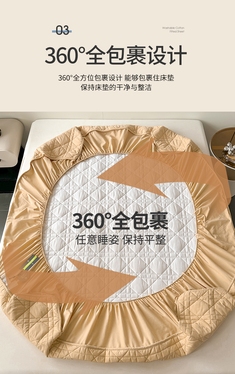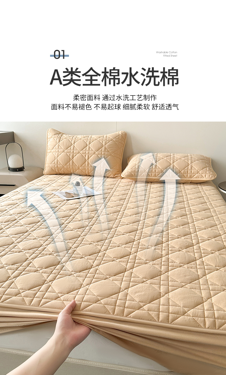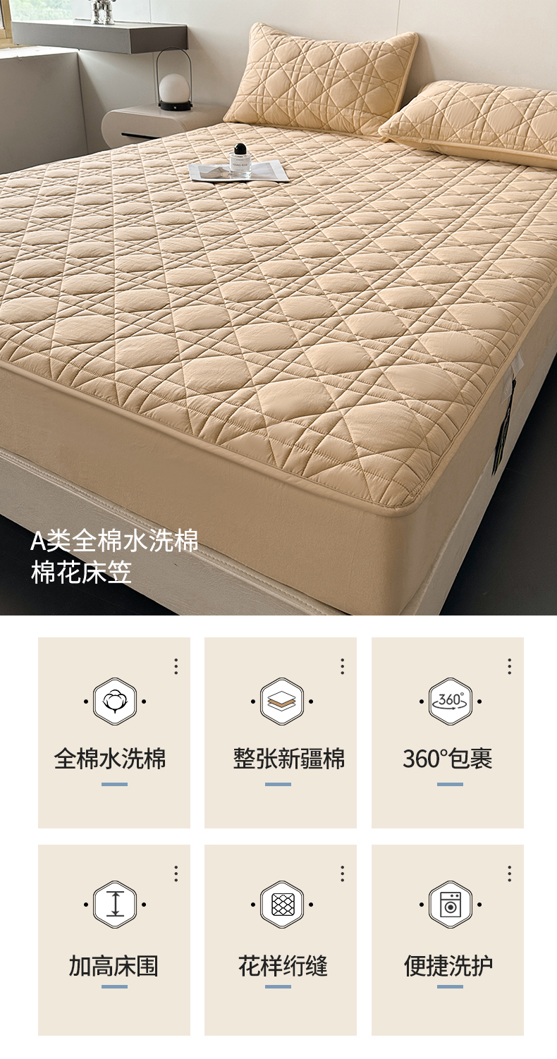 3C 2024新款A类全棉水洗棉棉花床笠 米驼色-