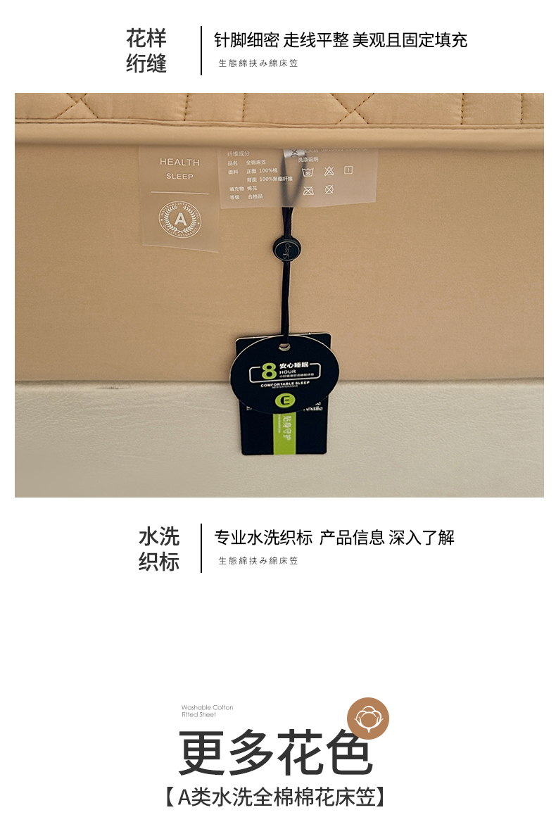 • 91家纺网 家纺一手货源 找家纺 3C 2024新款A类全棉水洗棉棉花床笠 米驼色-
