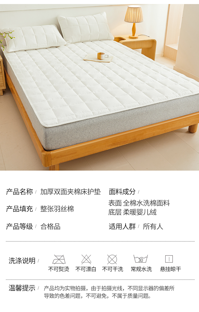 当前位置: 91家纺网 > 商品网购 > 床品定制 > 床垫定制定做 > 3C 2024新款亲肤全棉加厚双面床护垫 雅白