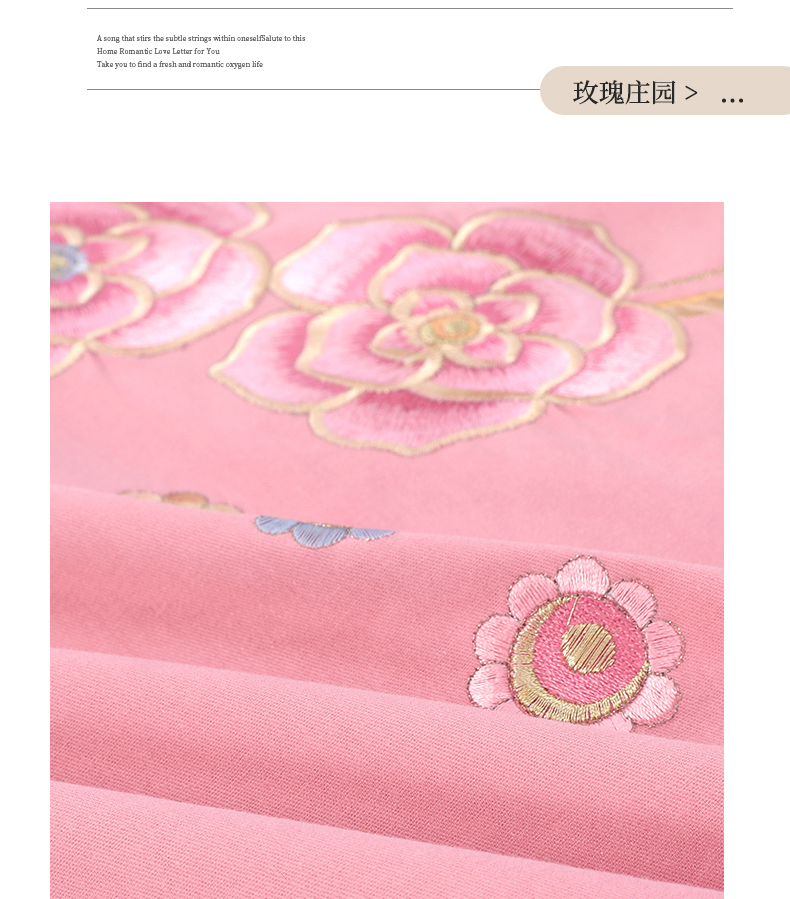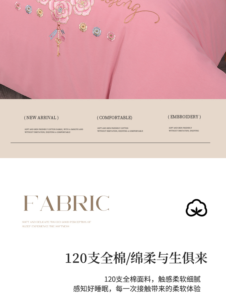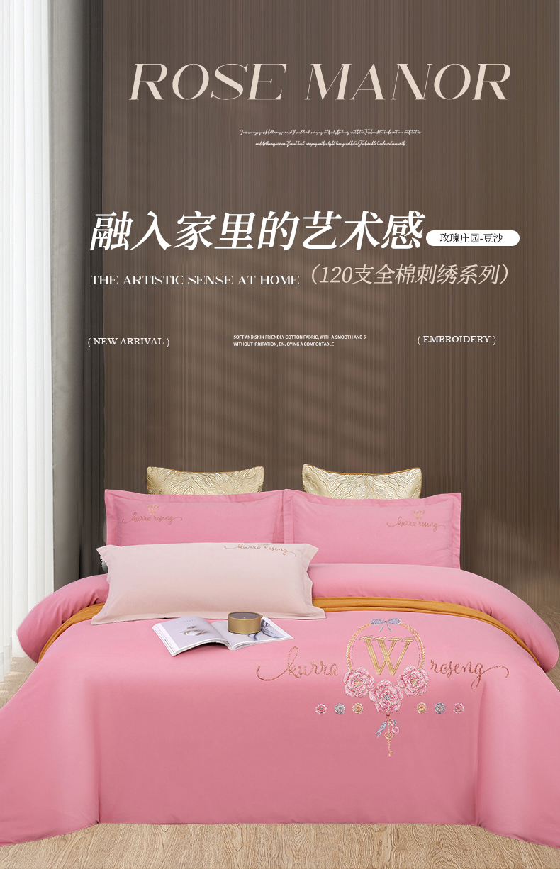 2026秋冬新品全棉磨毛刺绣120支四件套系列-玫瑰庄园 玫瑰庄园-豆沙