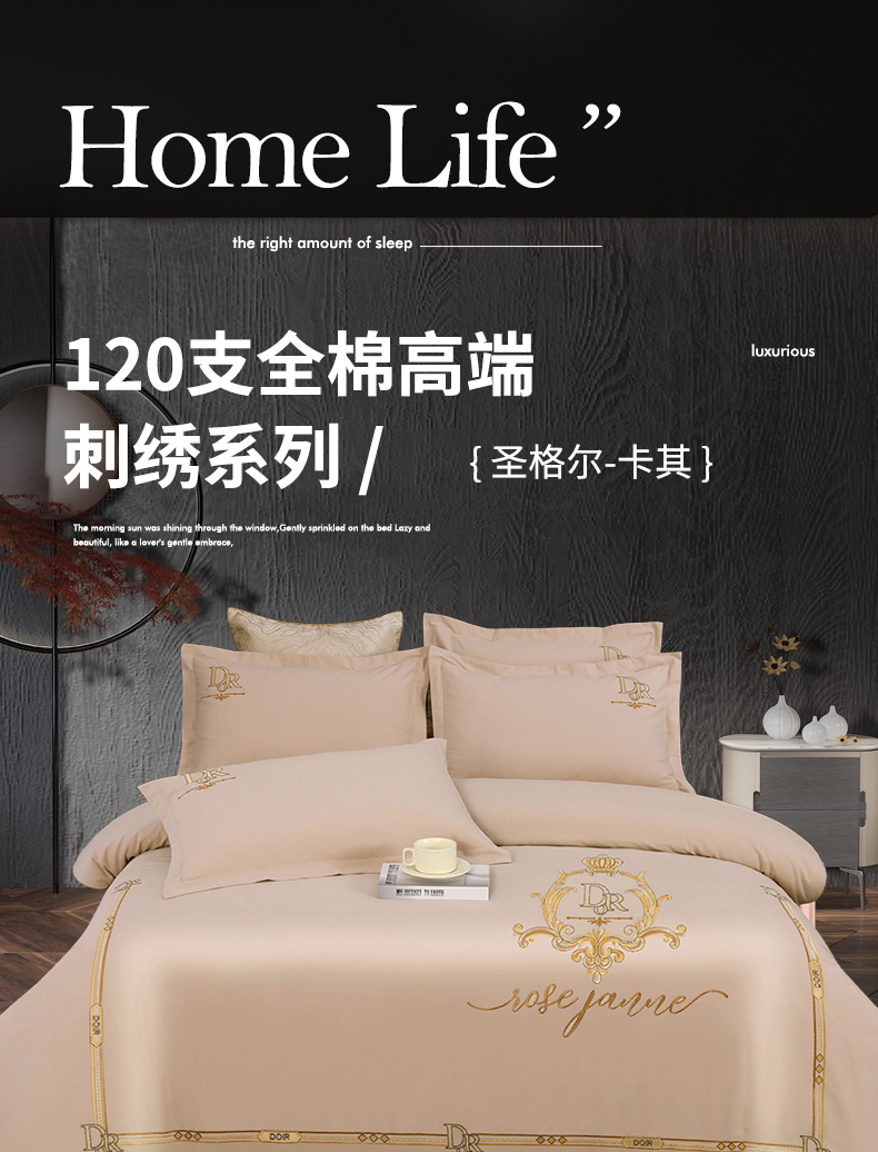 商品名称:2026秋冬新品全棉磨毛刺绣120支四件套系列-圣格尔 圣格尔-卡其