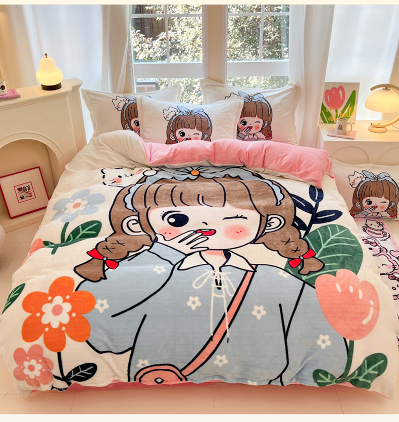 当前位置: 91家纺网 > 商品网购 > 床品套件 > 四件套 > 牛奶绒四件套 > 喜梦缘-2025新款大版卡通牛奶绒四件套 元气满满