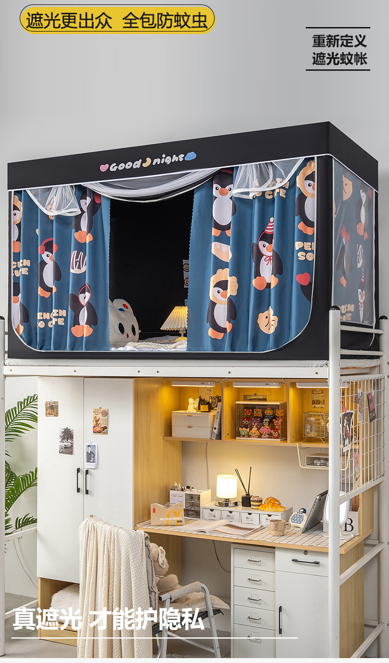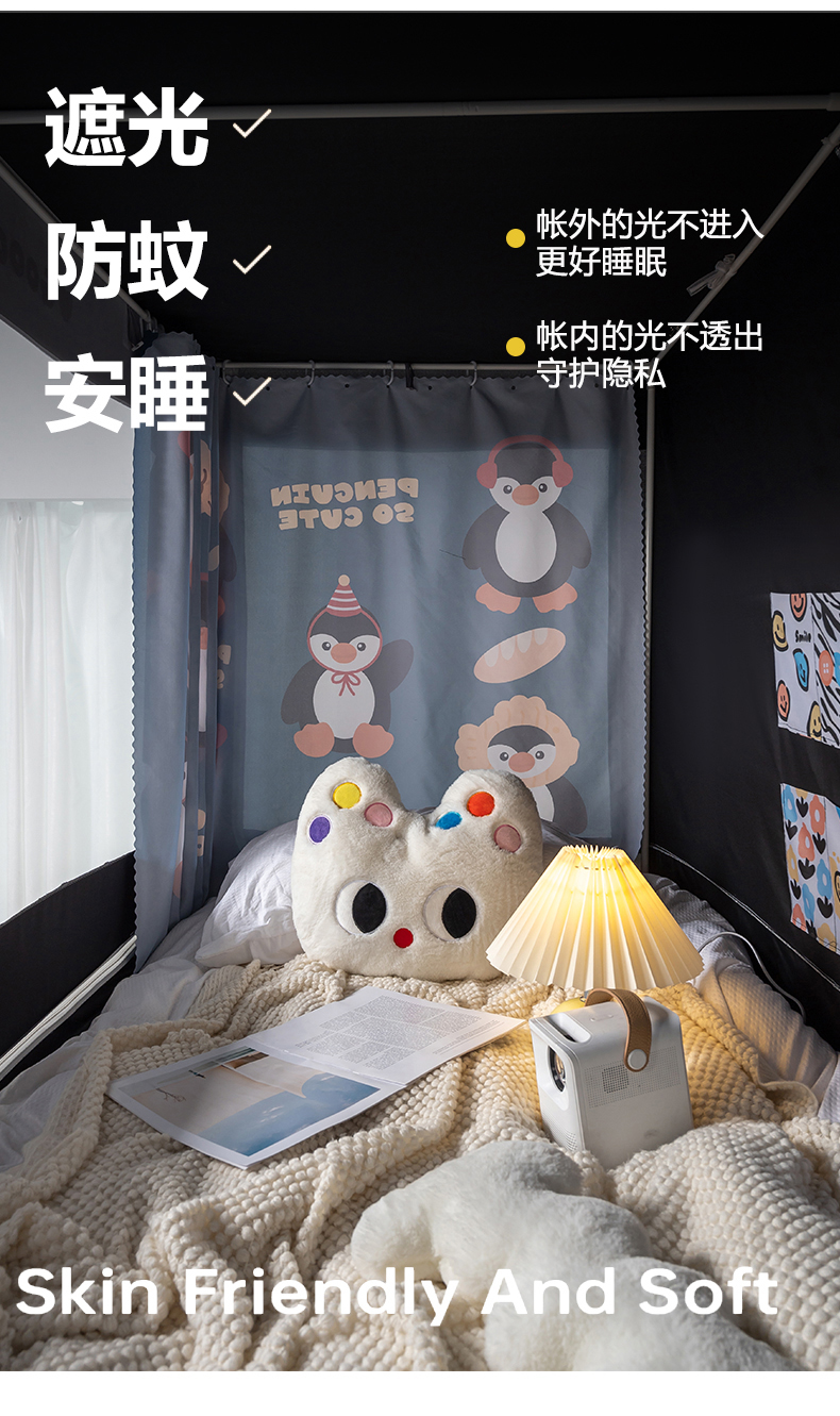 新太阳蚊帐 2025新款卡通学生遮光床帘 奇趣企鹅