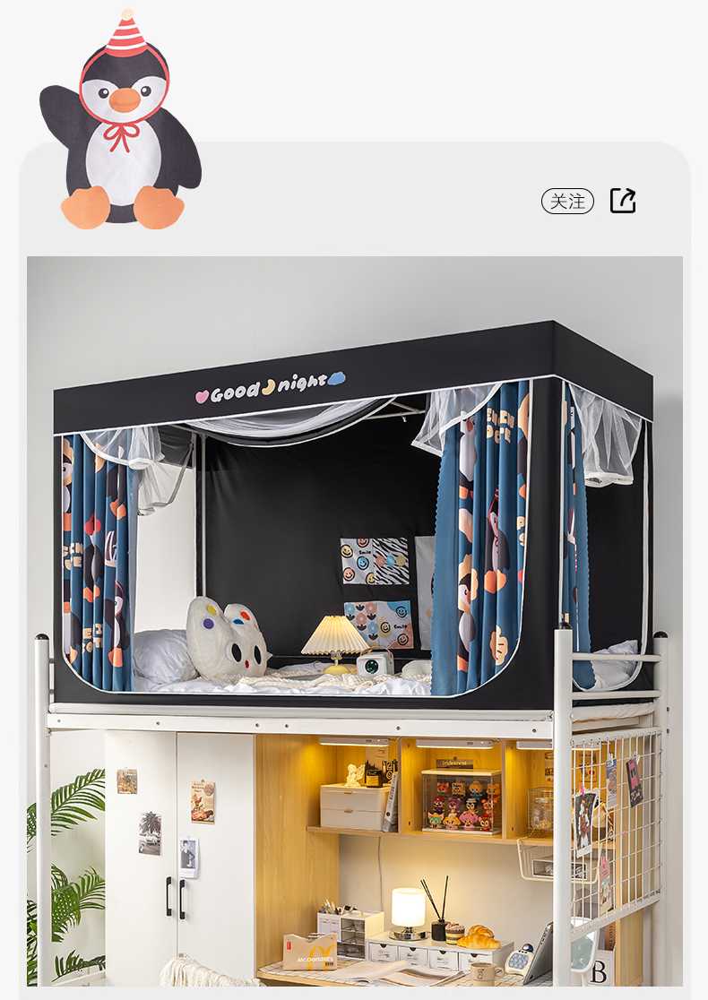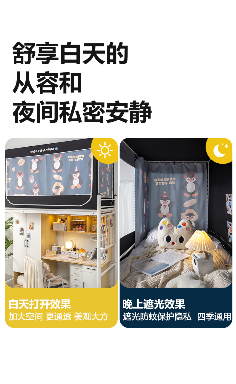 商品名称:新太阳蚊帐 2025新款卡通学生遮光床帘 奇趣企鹅