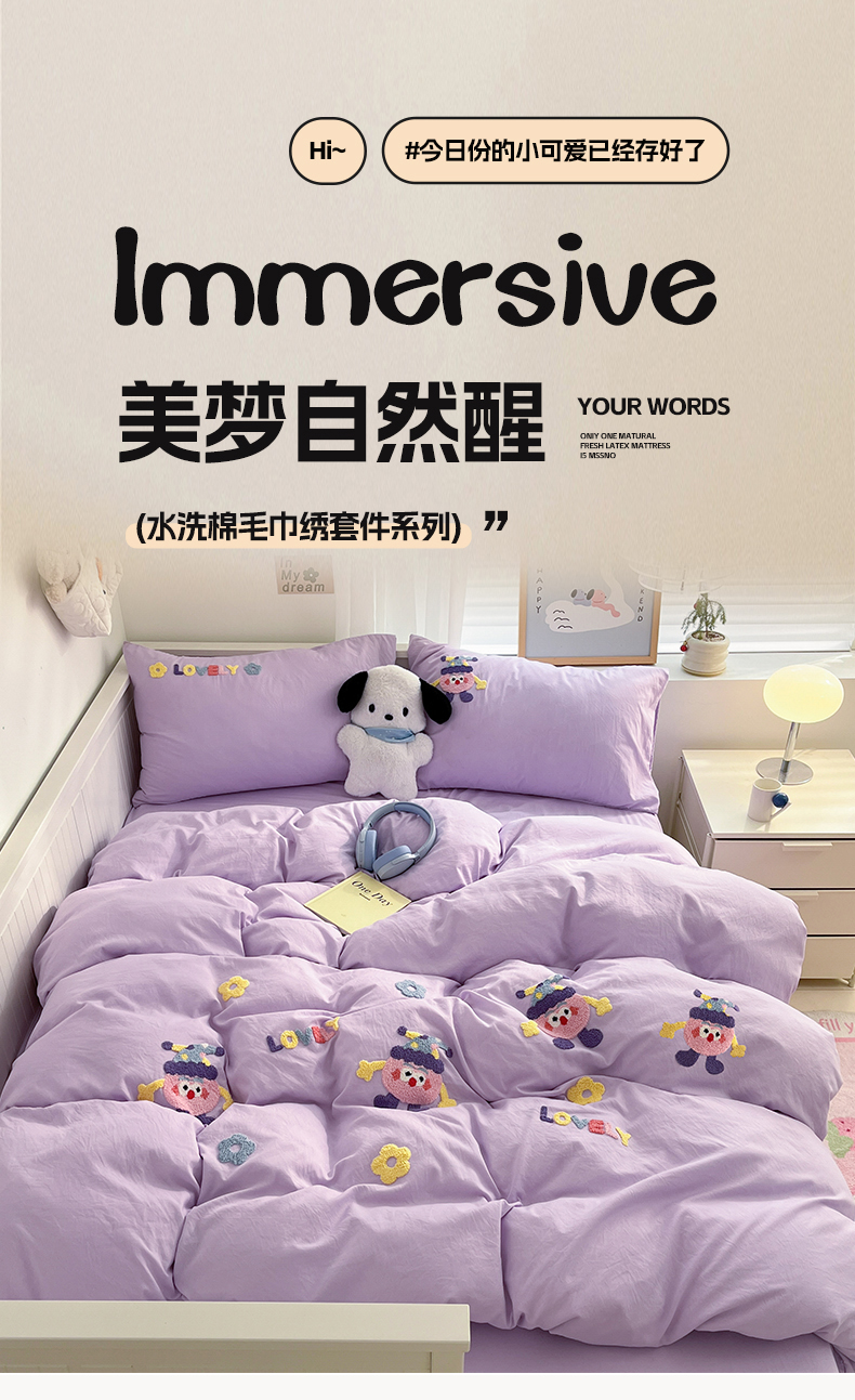 商品名称:海岛哥哥 2024新款云柔棉毛巾绣 四件套 毛巾绣-马戏团